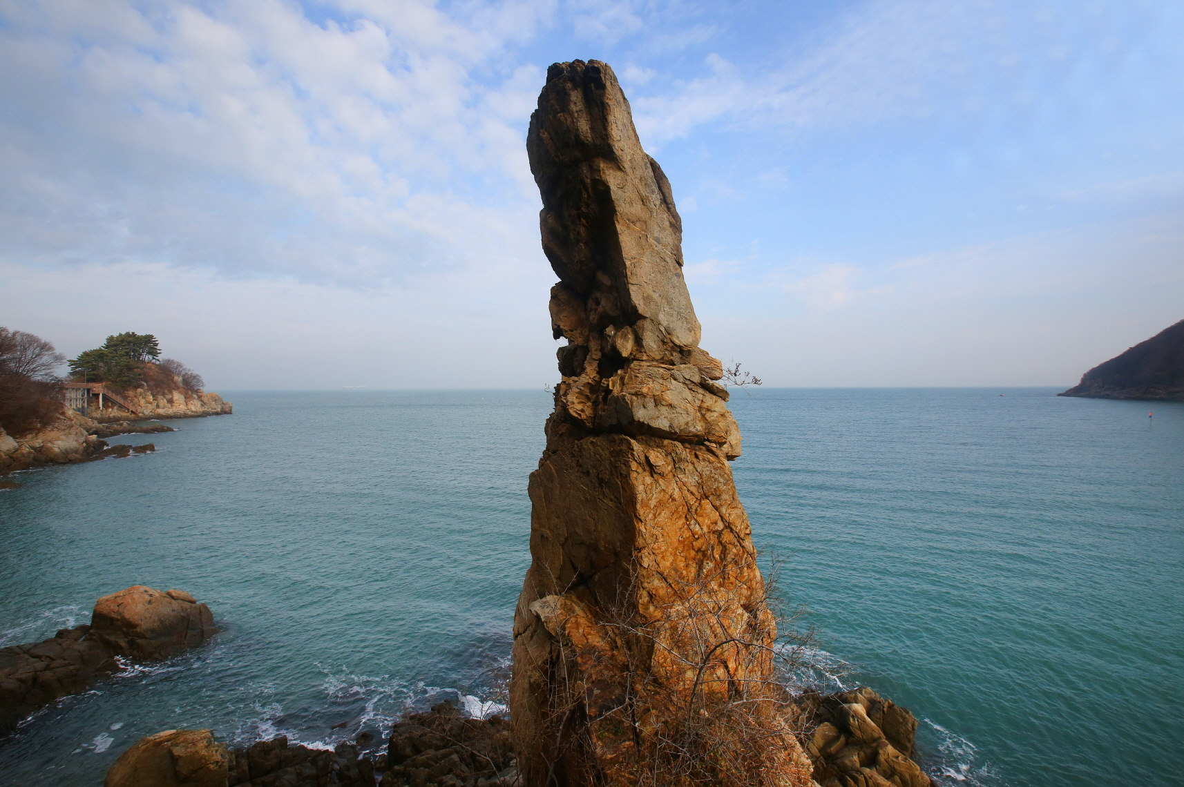 안목에서 목섬으로 이어진 구름다리를 건너면 큰목섬과 작은목섬이 나타난다. 다리 초입에 외롭게 서 있는 외돌개 바위는 목섬을 지키는 수호신 같은 풍경을 선사한다.