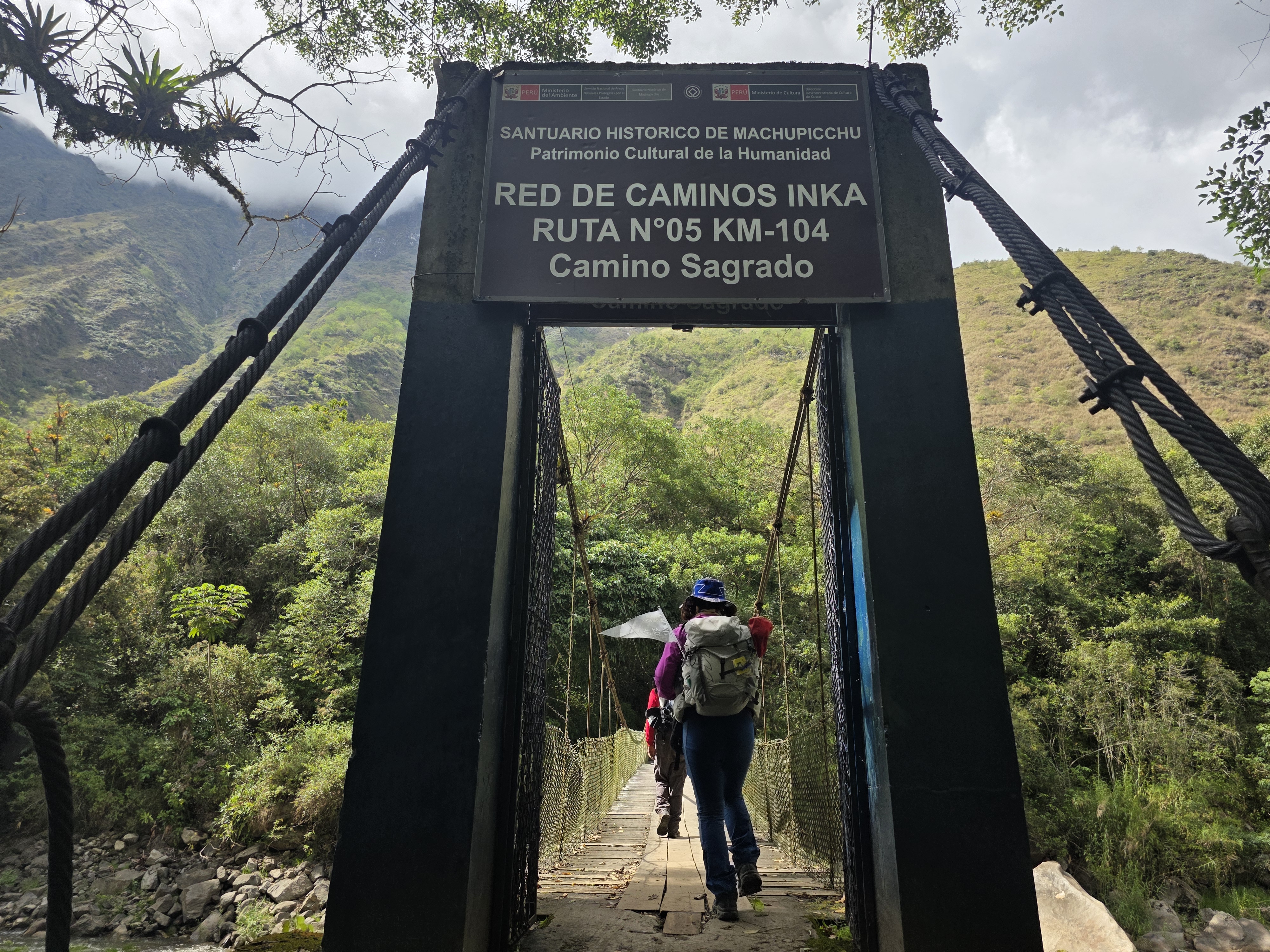 입구 검문소에서 여권과 허가증을 확인한 뒤, ‘Camino Inca – 잉카의 길’이라는 표식을 지나 다리를 건너는 순간 —