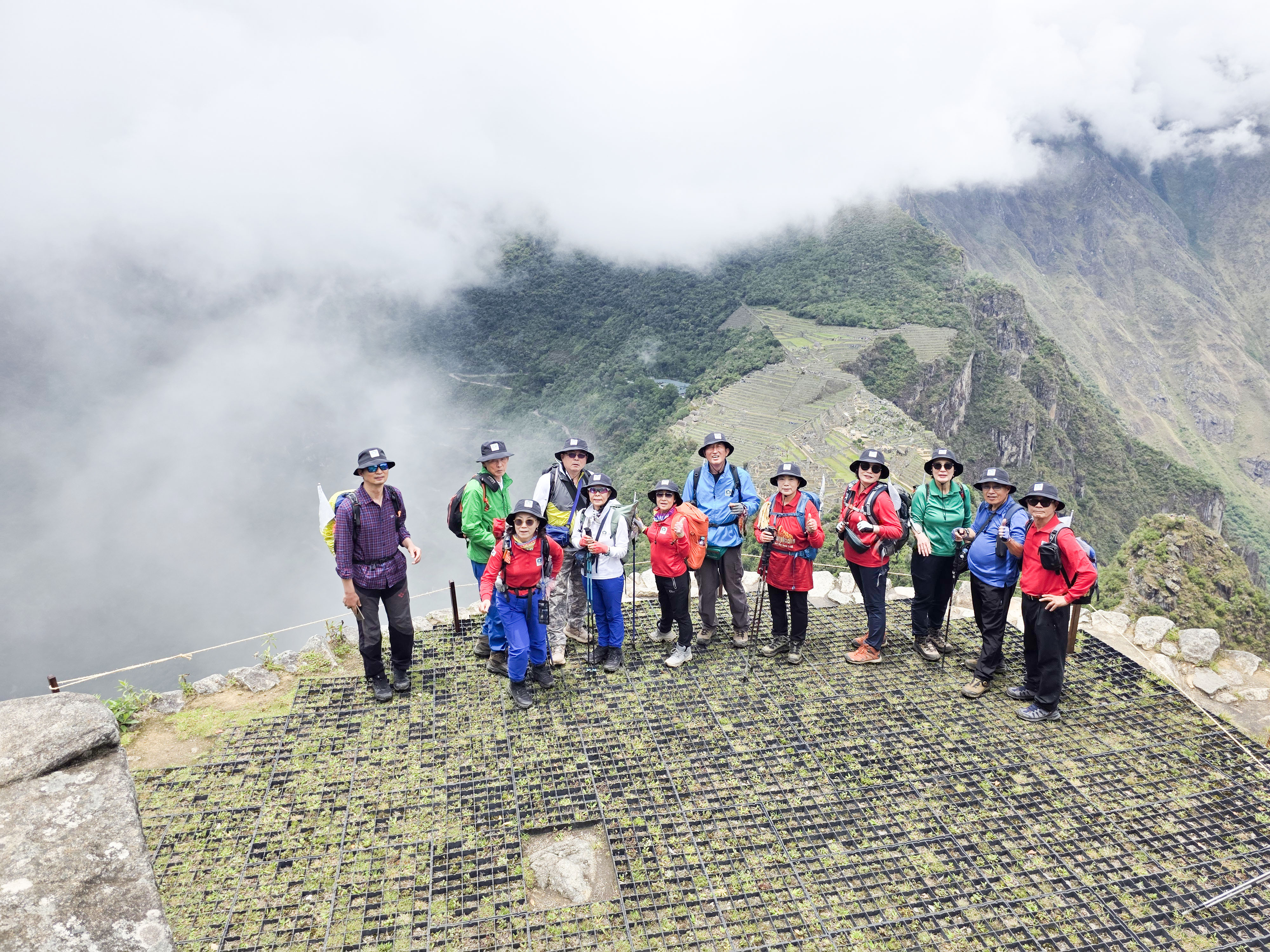 숨을 고르며 한 걸음, 또 한 걸음. 약 90분의 오름 끝에 정상부의 거친 화강암이 손에 잡힌다. 사방이 탁 트였다. 마추픽추는 구름 사이에서 잠시씩 얼굴을 내밀고, 주변 산군과 봉우리들은 각각의 리듬으로 ‘구름 쇼’를 펼쳤다. 가이드가 말했다. “마추픽추는 이곳에서 봐야 제대로 봤다고 할 수 있습니다.” 대원들은 잠시 말을 잃었다. 협회 깃발을 펼치고, 작게 외쳤다. “¡Viva Machu Picchu!”