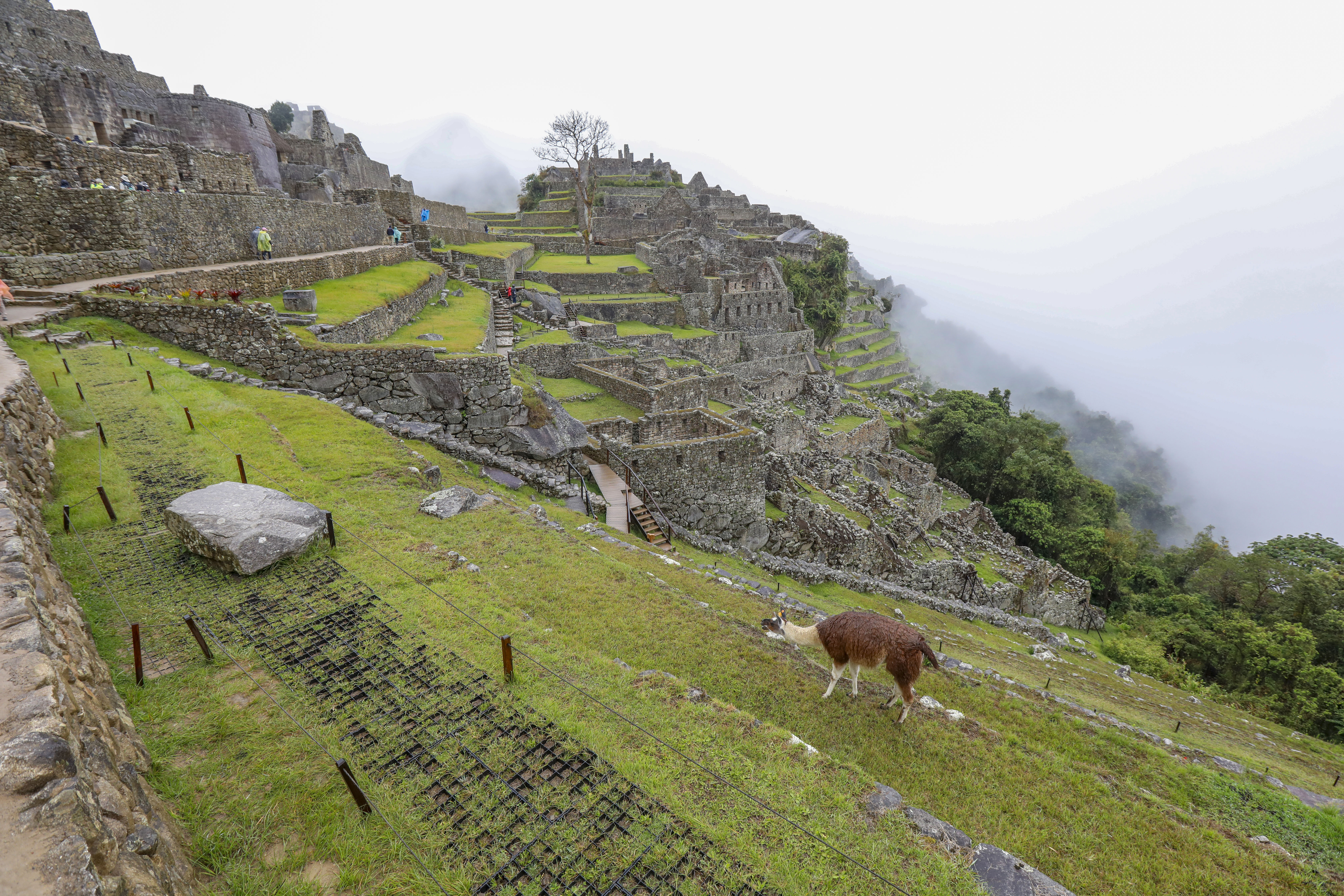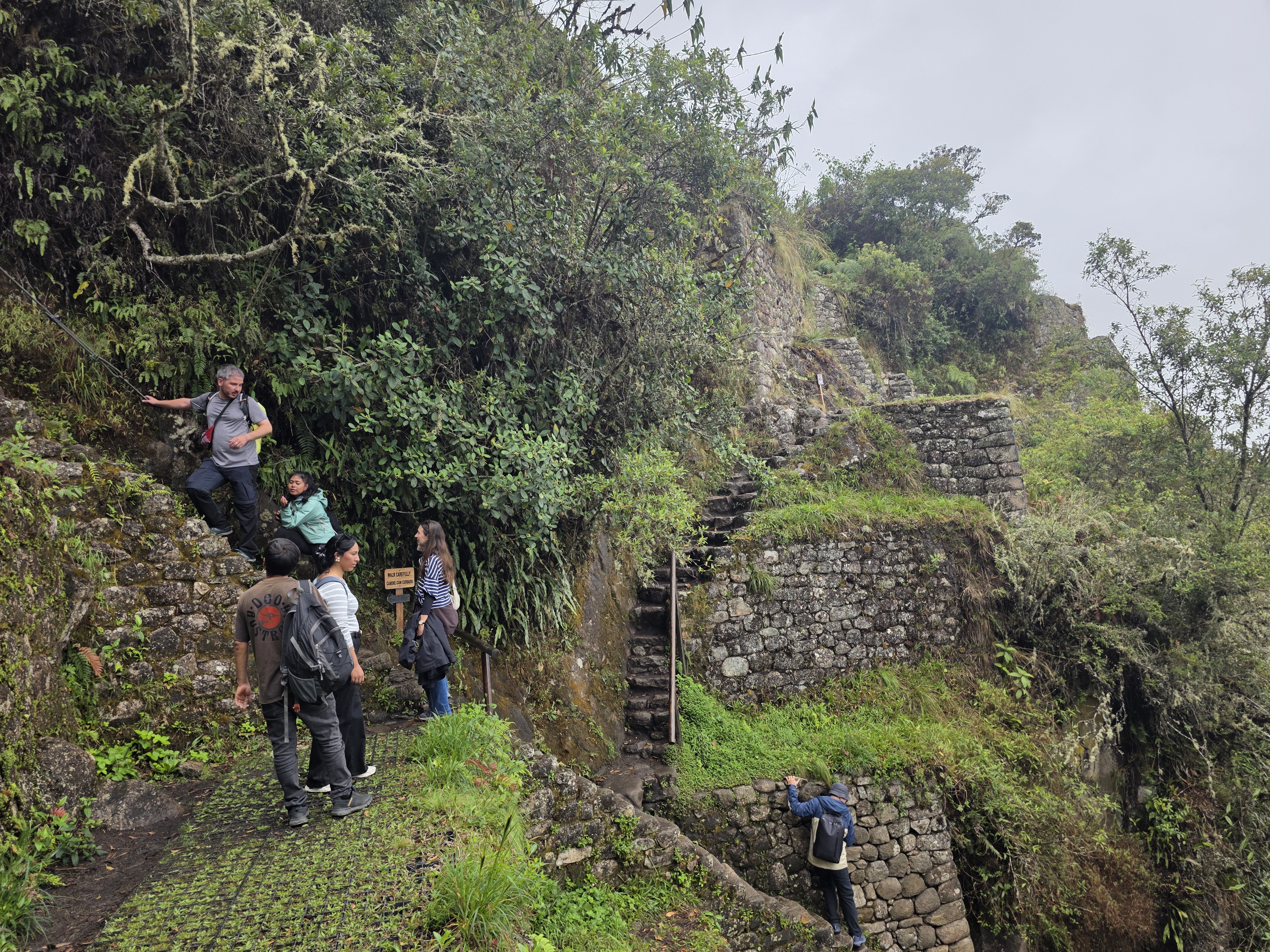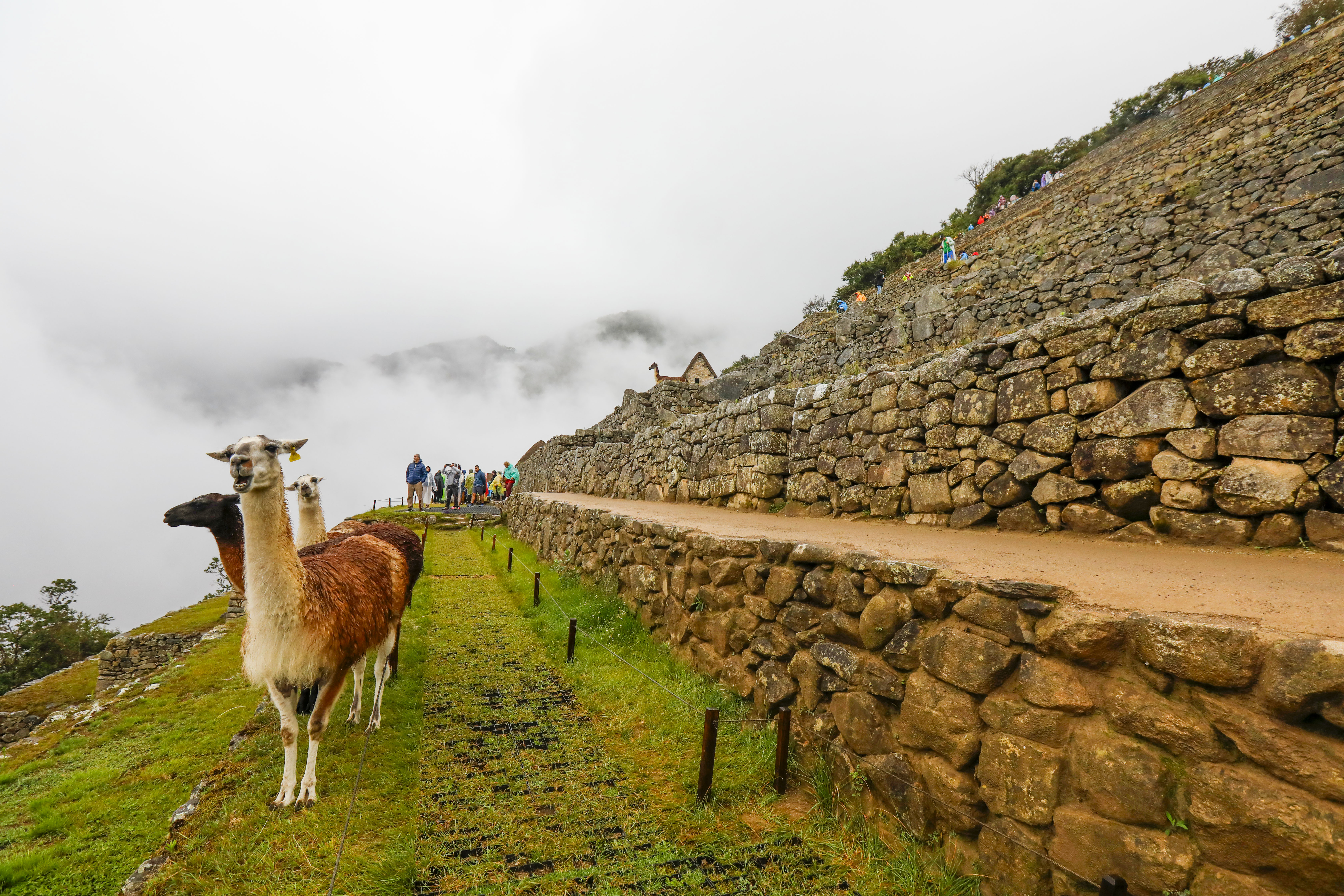 입구의 **‘Control Wayna Picchu’**에서 여권과 허가증을 확인하고 성역으로 들어서자, 안개 너머로 태양의 신전과 제사터가 윤곽을 드러냈다. 이날 동선은 성지의 3·4번 코스. 테라스가 포개진 돌벽 사이로 알파카가 느긋하게 풀을 뜯고, 골짜기마다 구름이 강물처럼 흘렀다. 가이드의 설명에 따라 두 시간 남짓 핵심 지점을 돌며 도시의 숨결을 더듬는다.