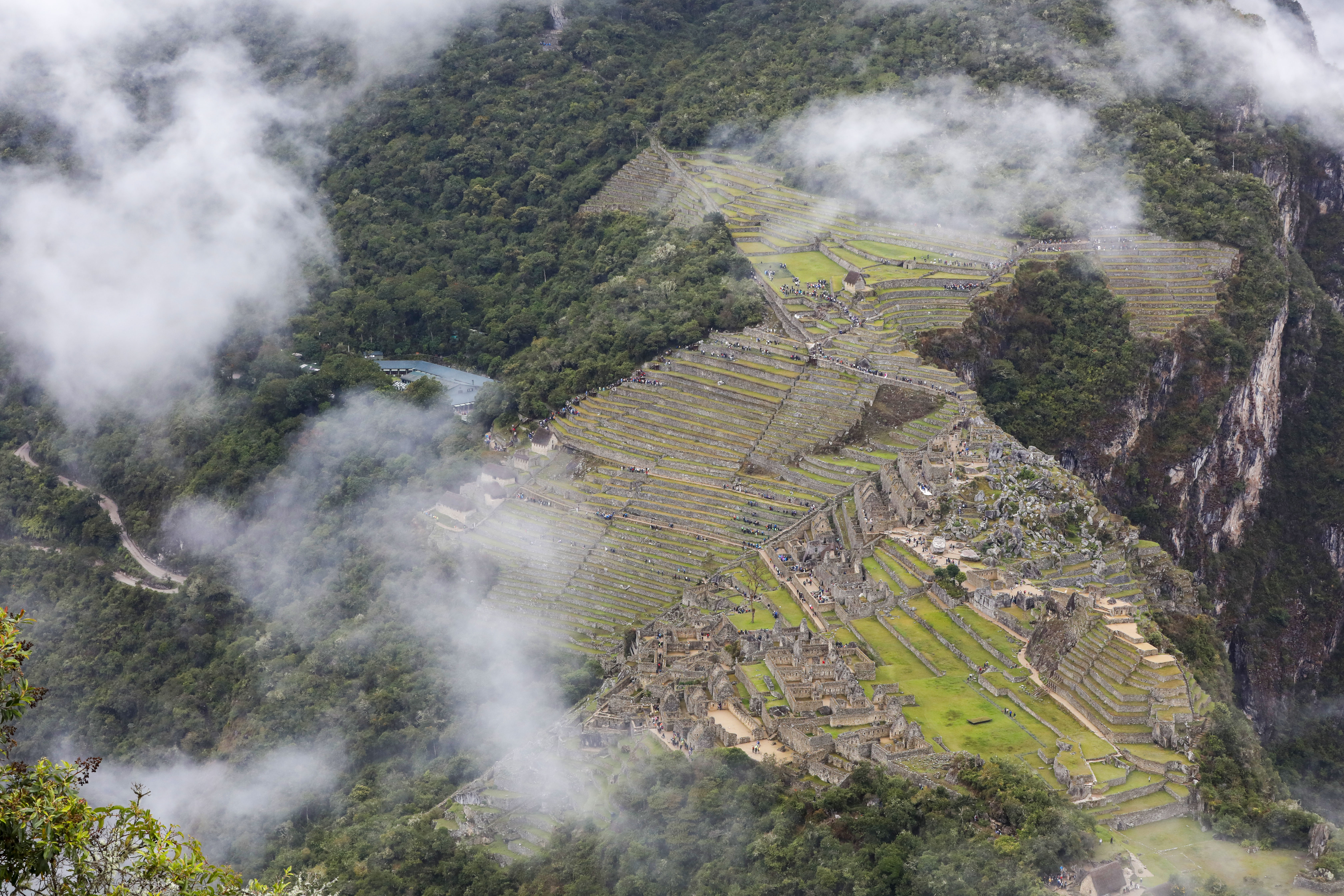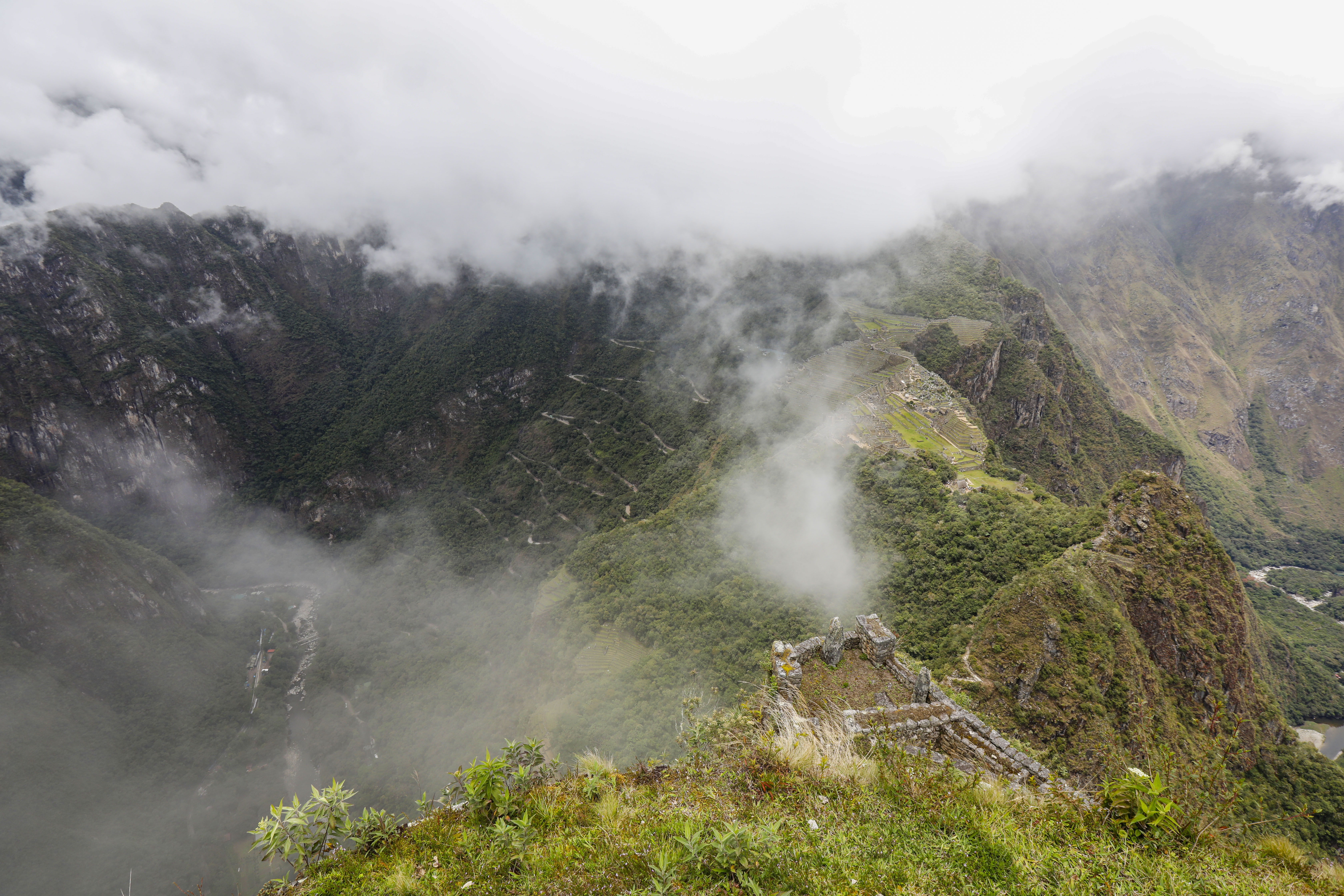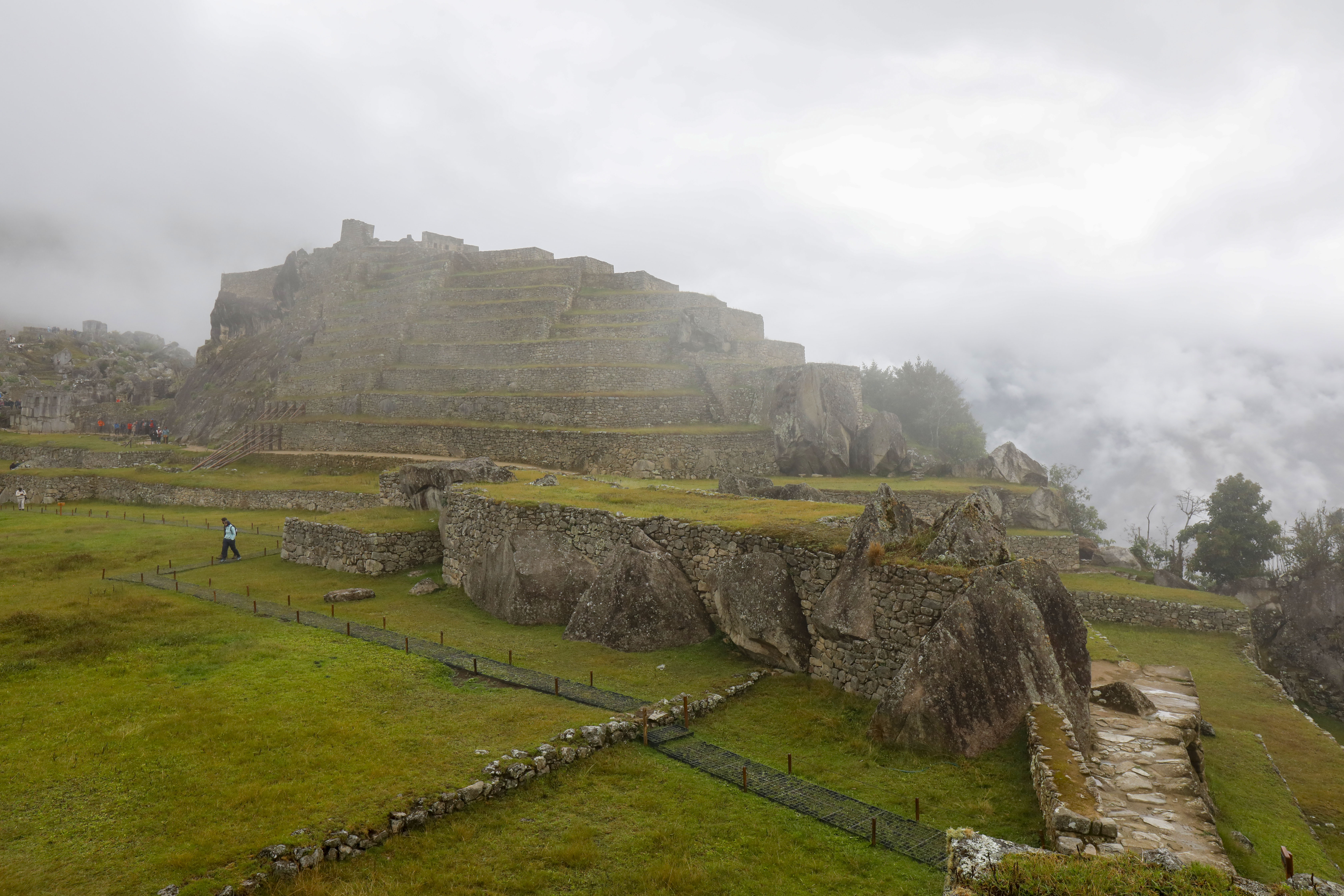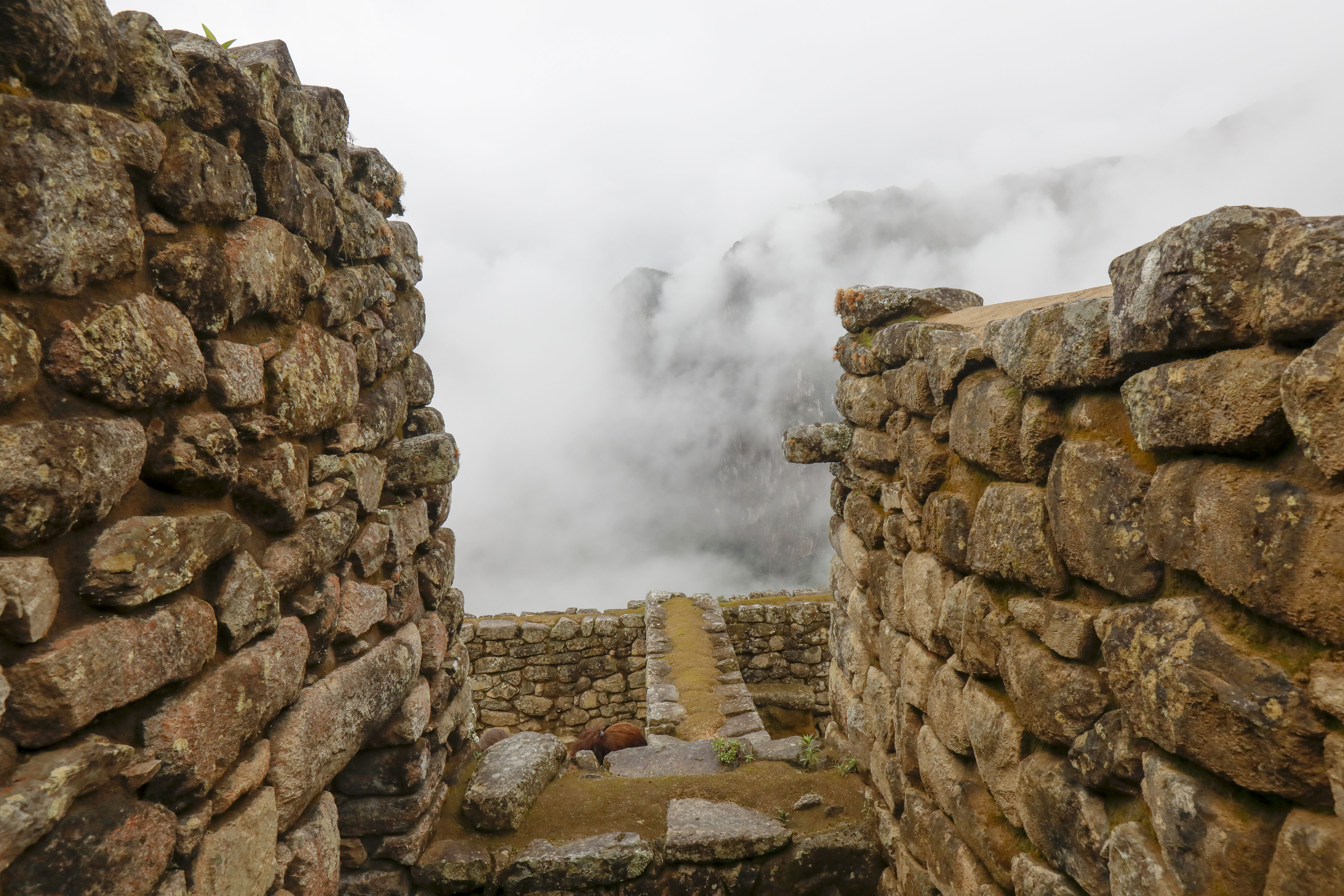 입구의 **‘Control Wayna Picchu’**에서 여권과 허가증을 확인하고 성역으로 들어서자, 안개 너머로 태양의 신전과 제사터가 윤곽을 드러냈다. 이날 동선은 성지의 3·4번 코스. 테라스가 포개진 돌벽 사이로 알파카가 느긋하게 풀을 뜯고, 골짜기마다 구름이 강물처럼 흘렀다. 가이드의 설명에 따라 두 시간 남짓 핵심 지점을 돌며 도시의 숨결을 더듬는다.