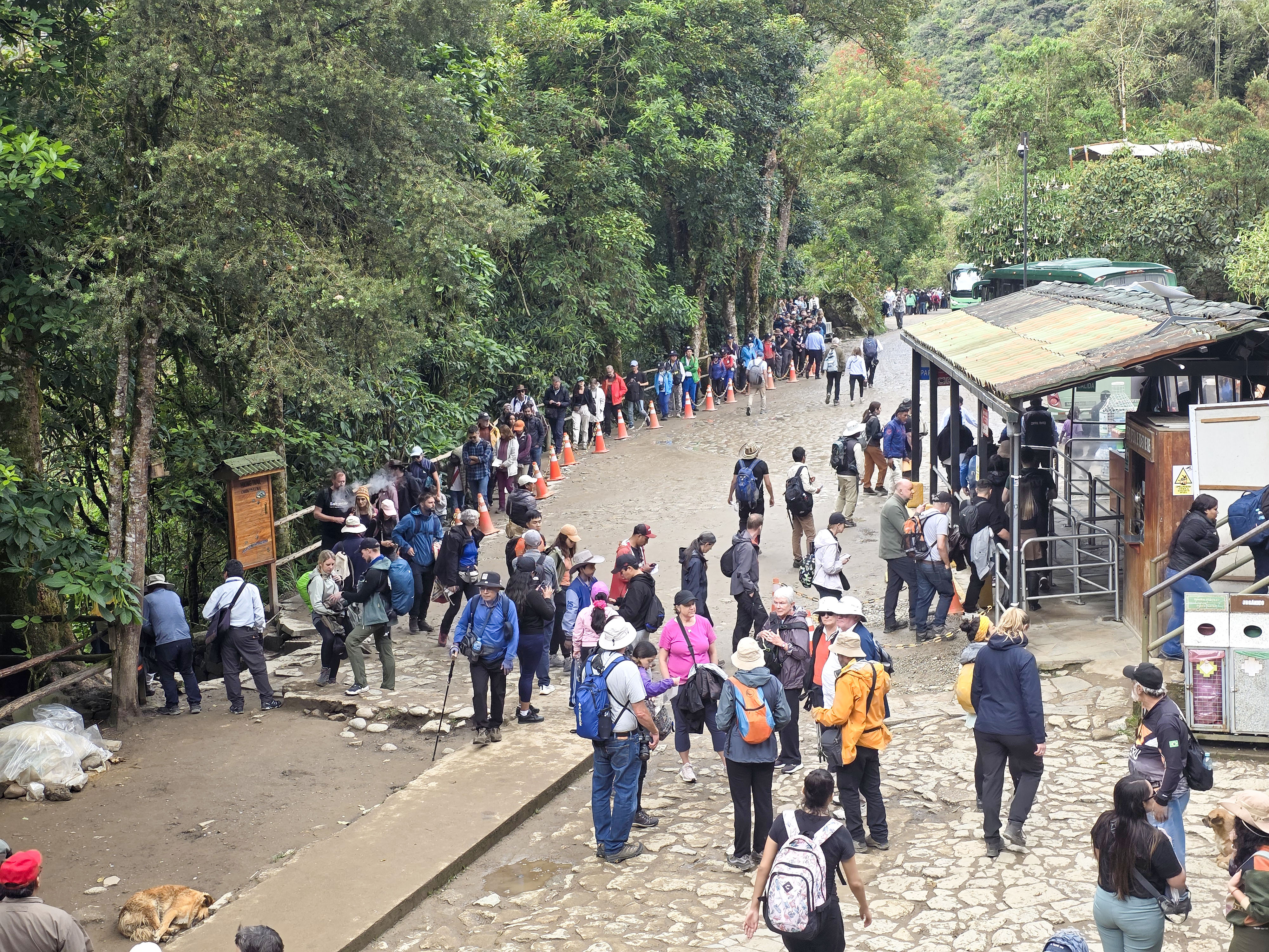 【한국아트뉴스=어랑】산들투어 잉카트레일 탐사대가 전날에 이어 마추픽추로 다시 올랐다. 목표는 마추픽추 성지의 수문장, 와이나픽추(Huayna Picchu·해발 2,720m) 정상. 아구아스 칼리엔테스(Aguas Calientes) 마을에서 오전 7시 셔틀버스를 타기 위해 이른 새벽 숙소를 나섰지만, 이미 버스 정류장에는 긴 대기 줄이 늘어서 있었다. 버스가 산허리의 S자 길을 타고 오를 즈음, 가는 비가 유리창을 두드렸다. 비의 결이 깔아놓은 미세한 물안개가 능선을 감싸며, 오래된 도시를 영화 속 한 장면처럼 불러냈다.