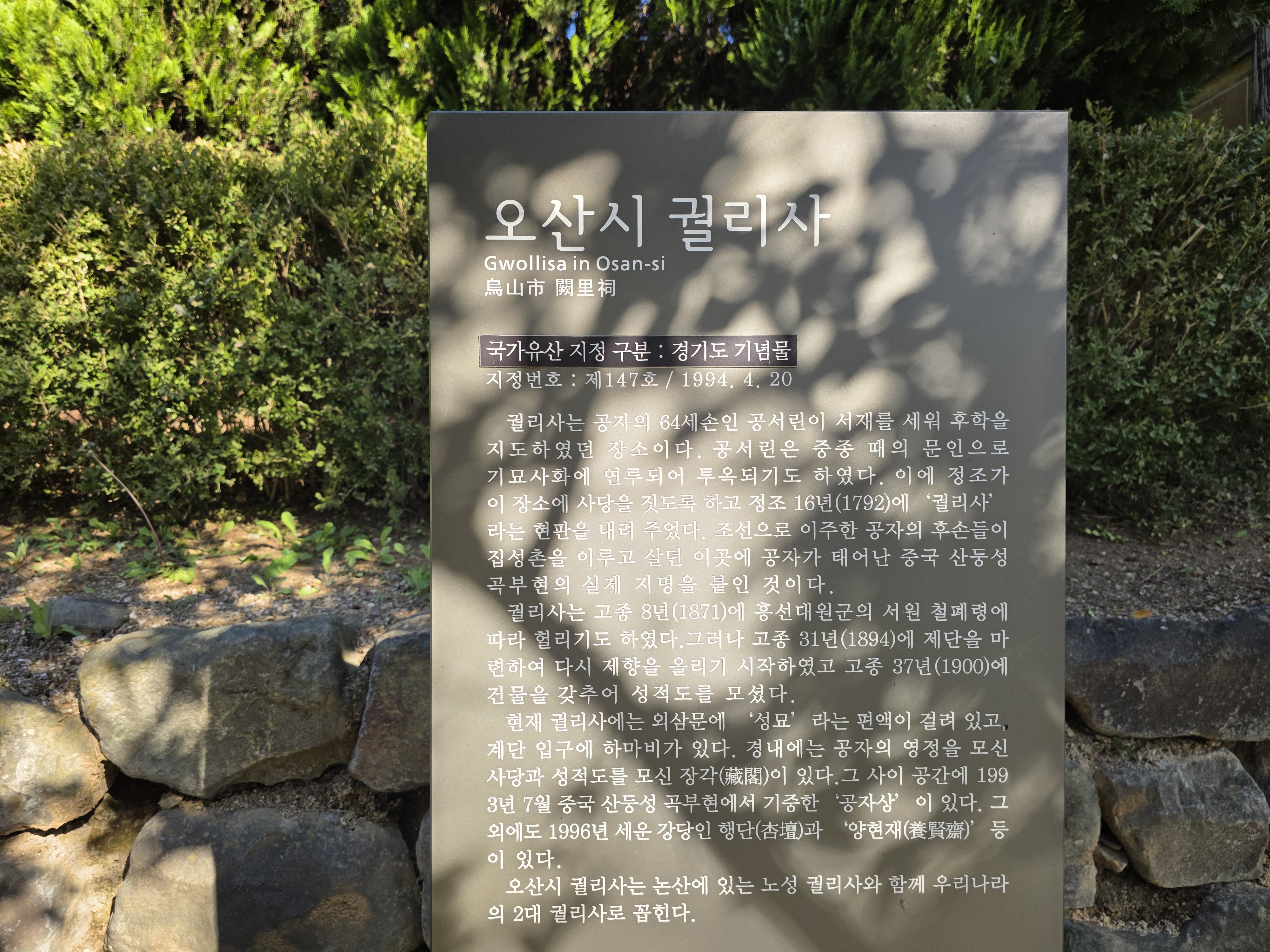 산책로를 따라 걷다 보면 약수터를 지나고, 어느덧 걸리사에 닿는다. 이 사찰은 공자를 모신 곳으로, 국내에서는 보기 드문 유일한 공자 사당이다. 걸리사의 고요한 분위기 속에서 잠시 마음을 내려놓고, 조선 유학자들의 사상에 잠겨보는 것도 이 길의 매력 중 하나다.
