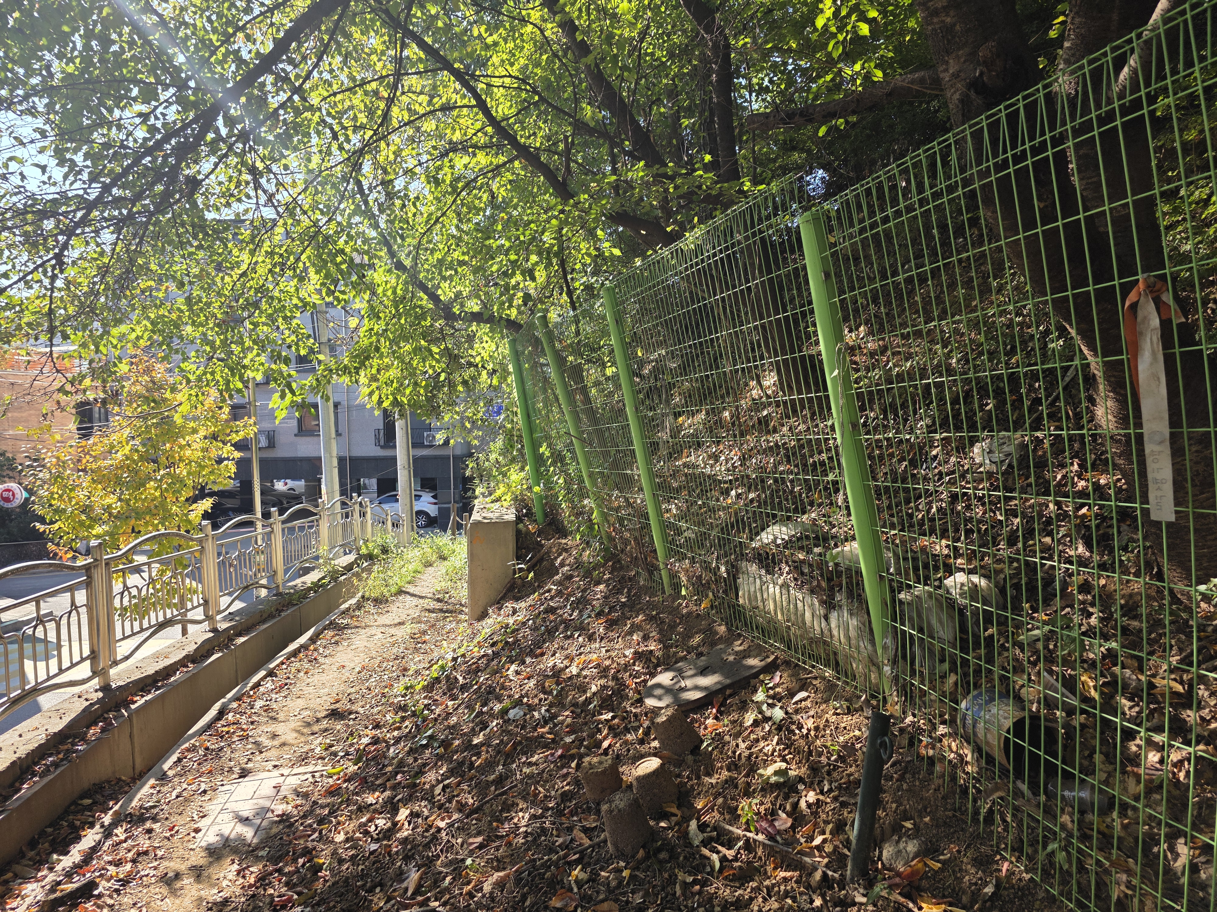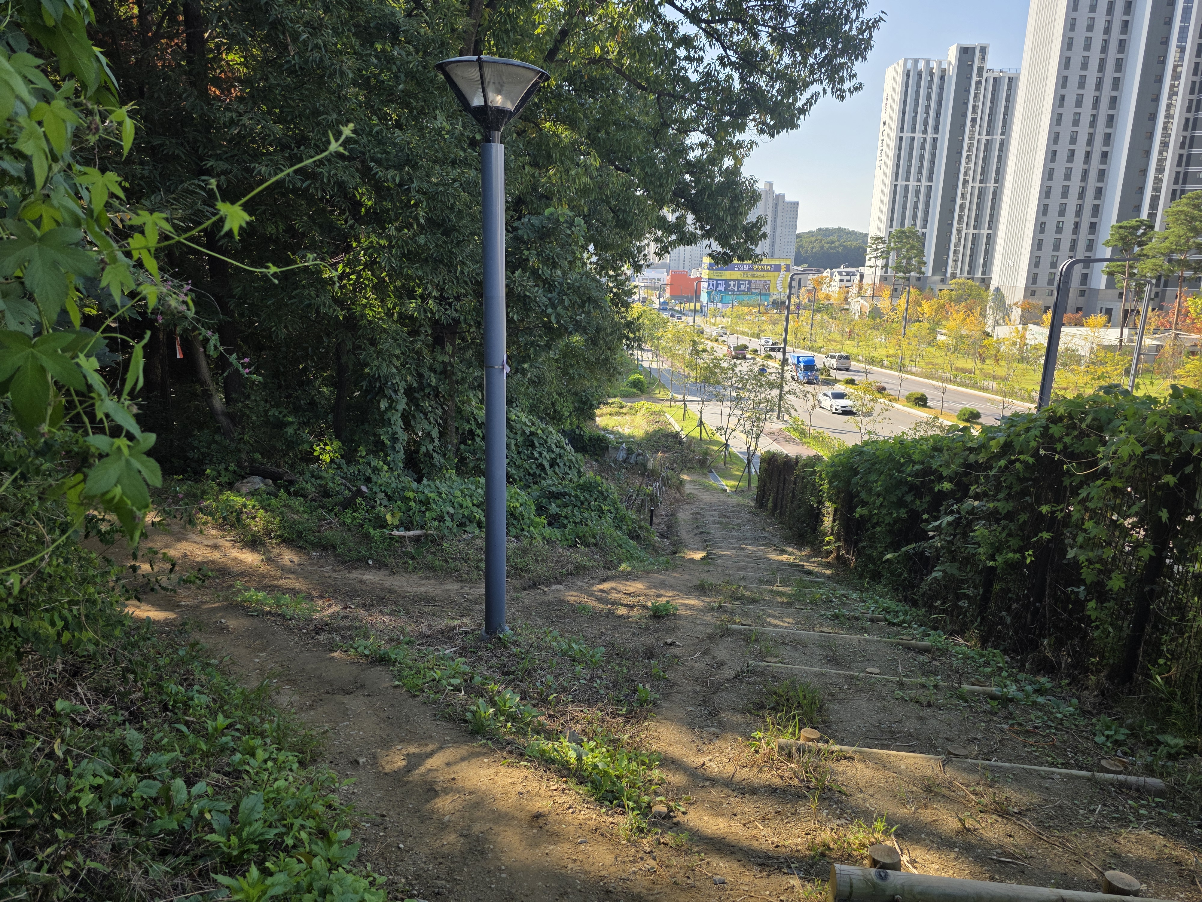 여정은 세교지구 휴먼시아 7단지 앞에서 시작된다. 처음에는 포장도로와 아파트가 함께 이어진 일상적인 풍경이지만, 곧잘 조용한 산길로 연결된다. 도심 한가운데에서 이런 길이 숨어있을까 싶을 만큼 조용하고 푸른 오솔길이다.