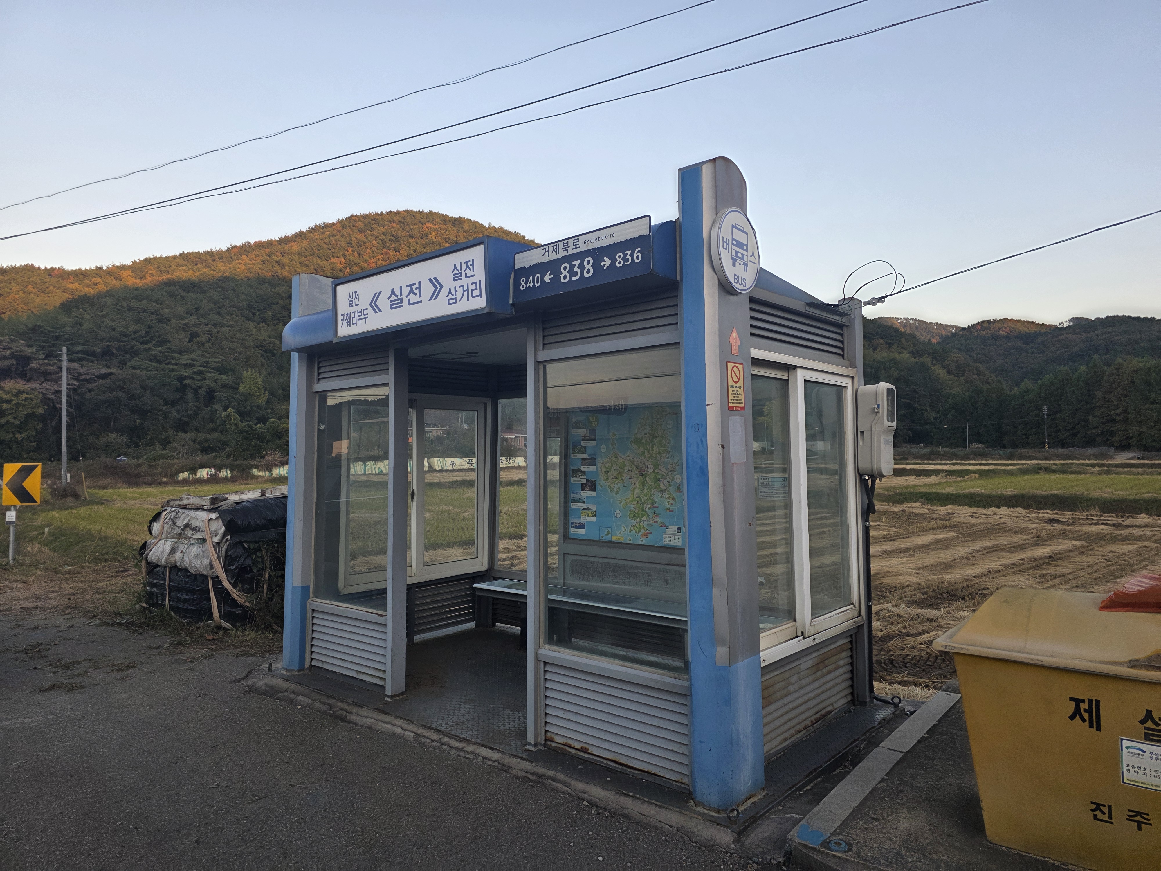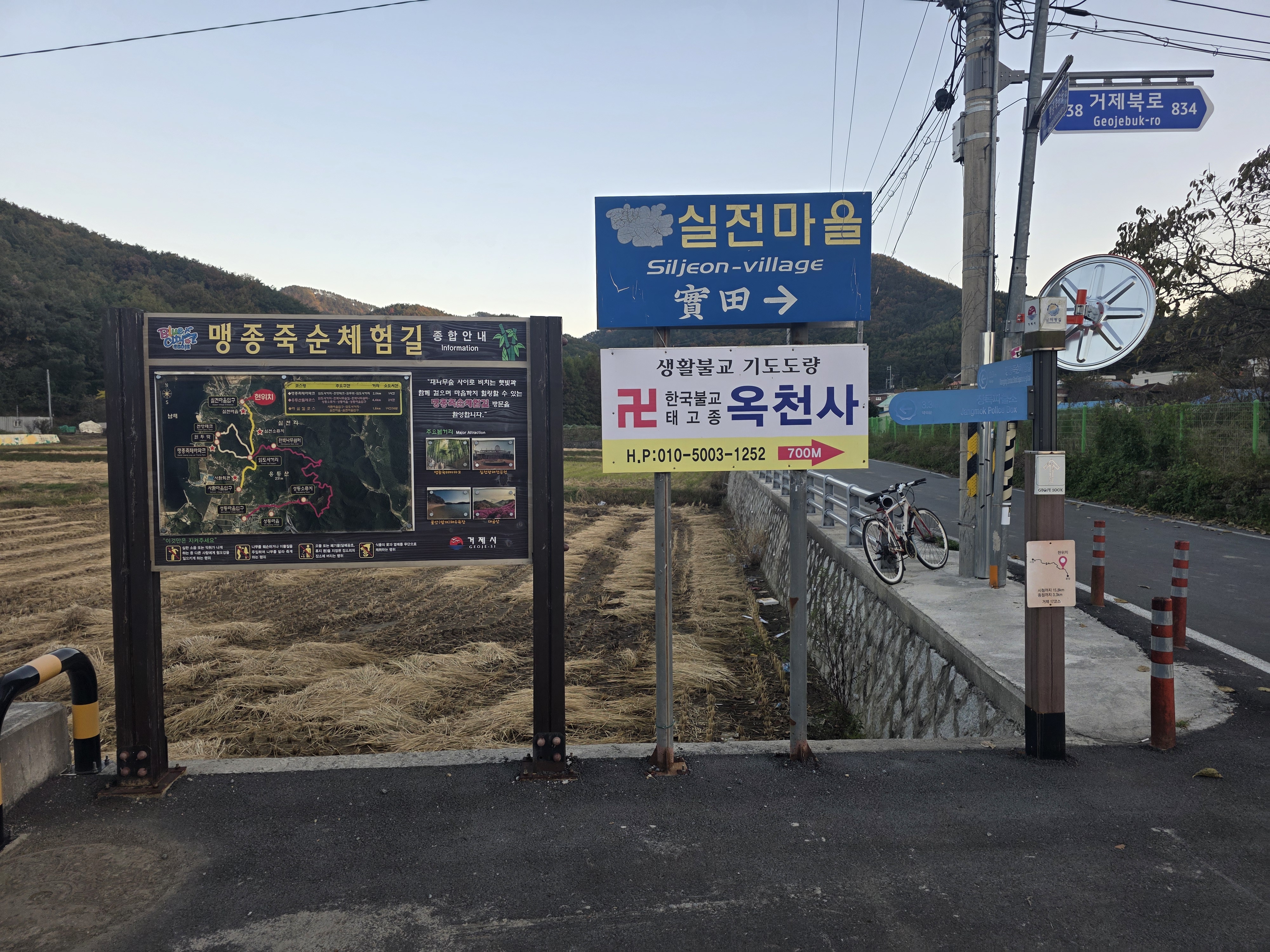 맹종죽테마파크 체험을 마친 후 차량으로 대성사 입구로 이동해 오늘의 종점인 장목 파출소에 도착했습니다.