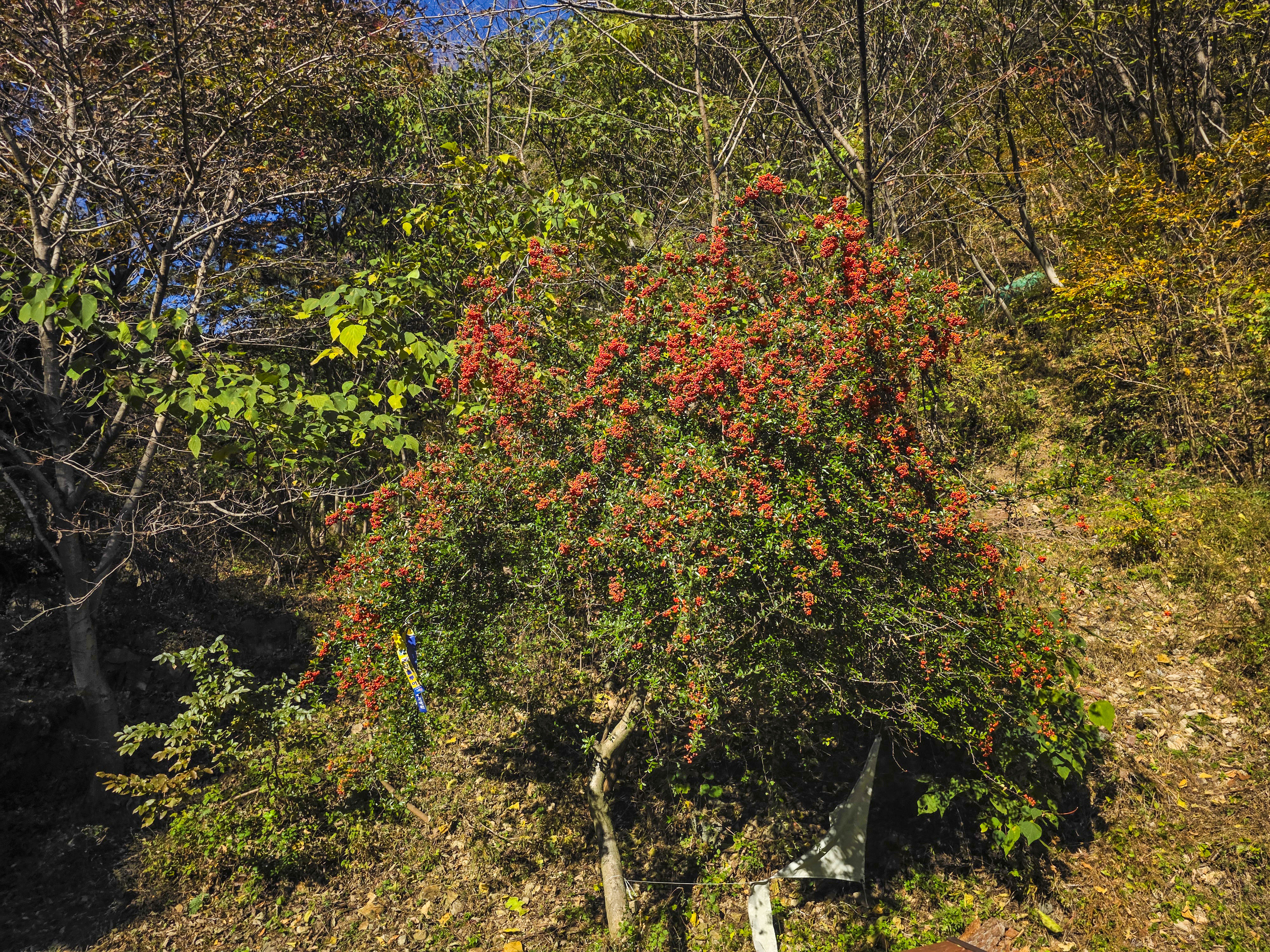 정상을 지나 유계마을 방면 임도길로 접어들면, 비교적 완만하고 잘 정비된 임도길로 이어집니다. 단풍이 절정을 이루며, 늦가을의 운치를 가득 품은 최고의 힐링 코스.