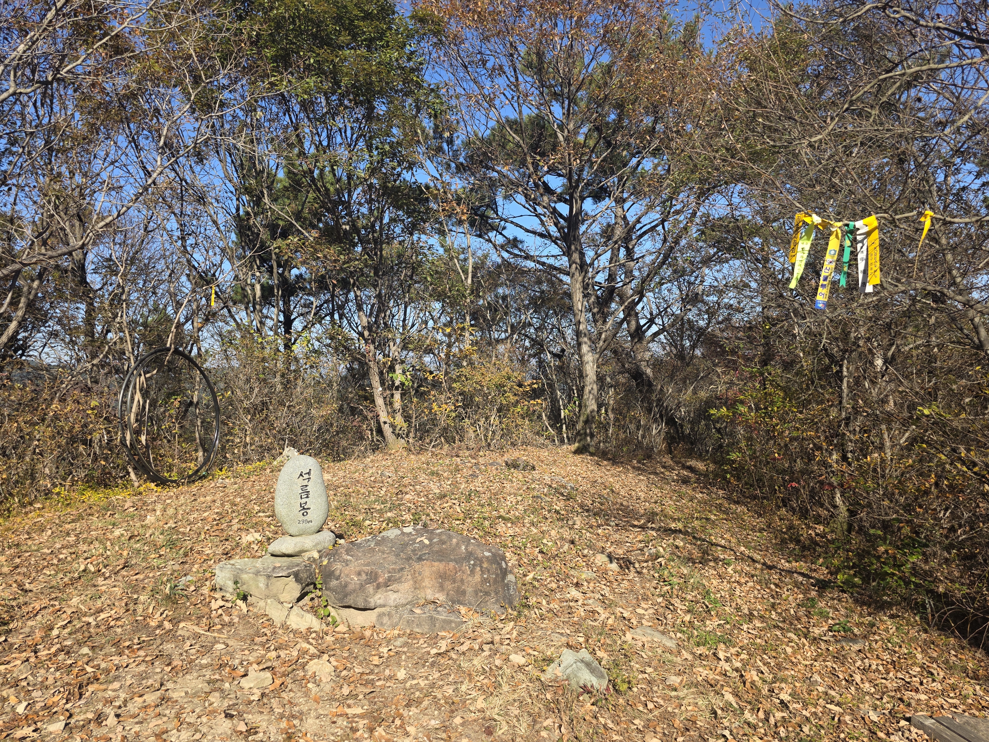 정상에는 아담한 석름봉 정상석과 정자가 세워져 있고, 이 일대는 ‘석이비(石伊比)’라는 마을 이름에서 유래한 것으로 전해지며, ‘돌(石)’과 ‘숲(林)’ 혹은 ‘릉(陵)’이 결합된 의미로 해석됩니다.