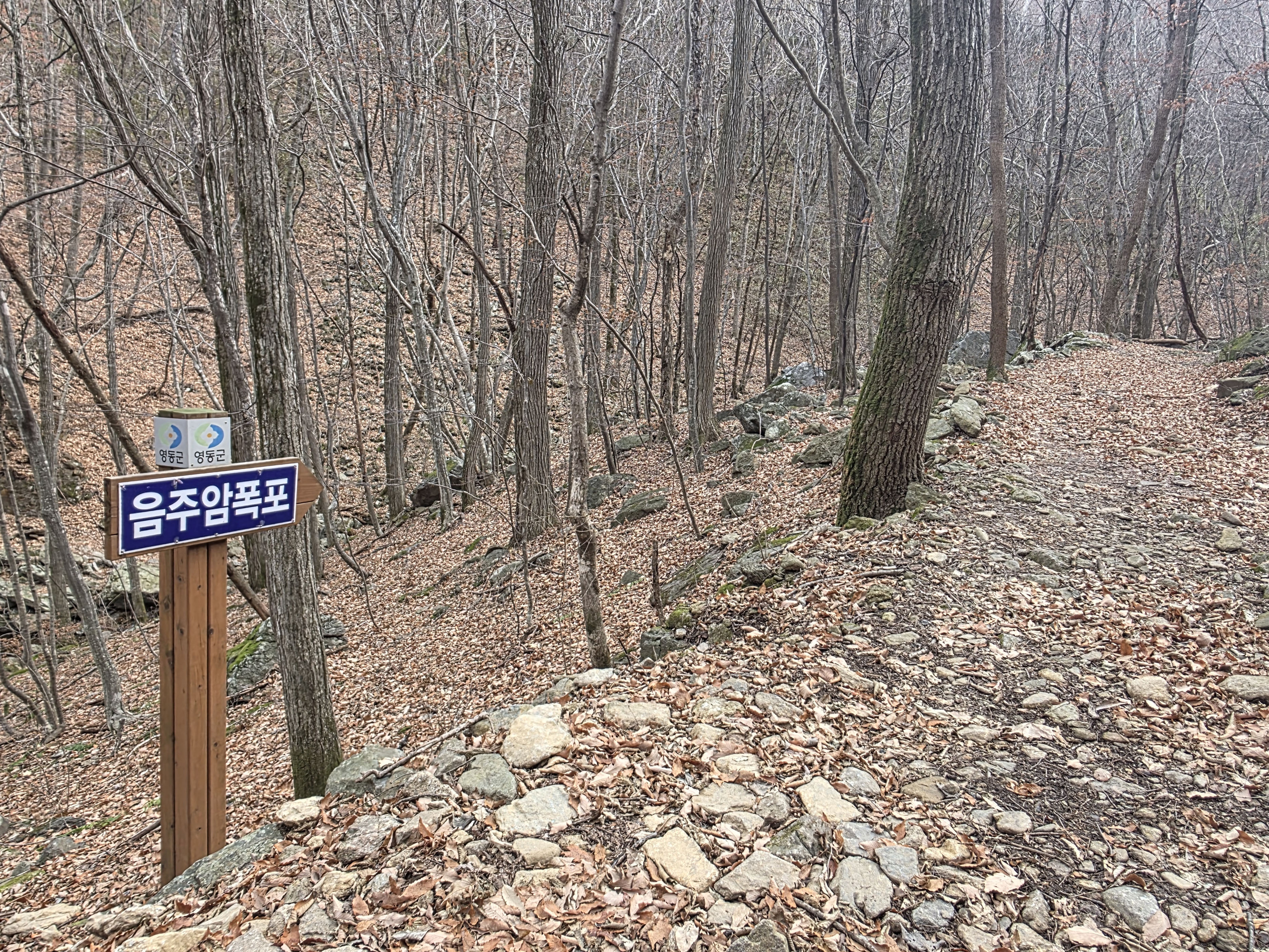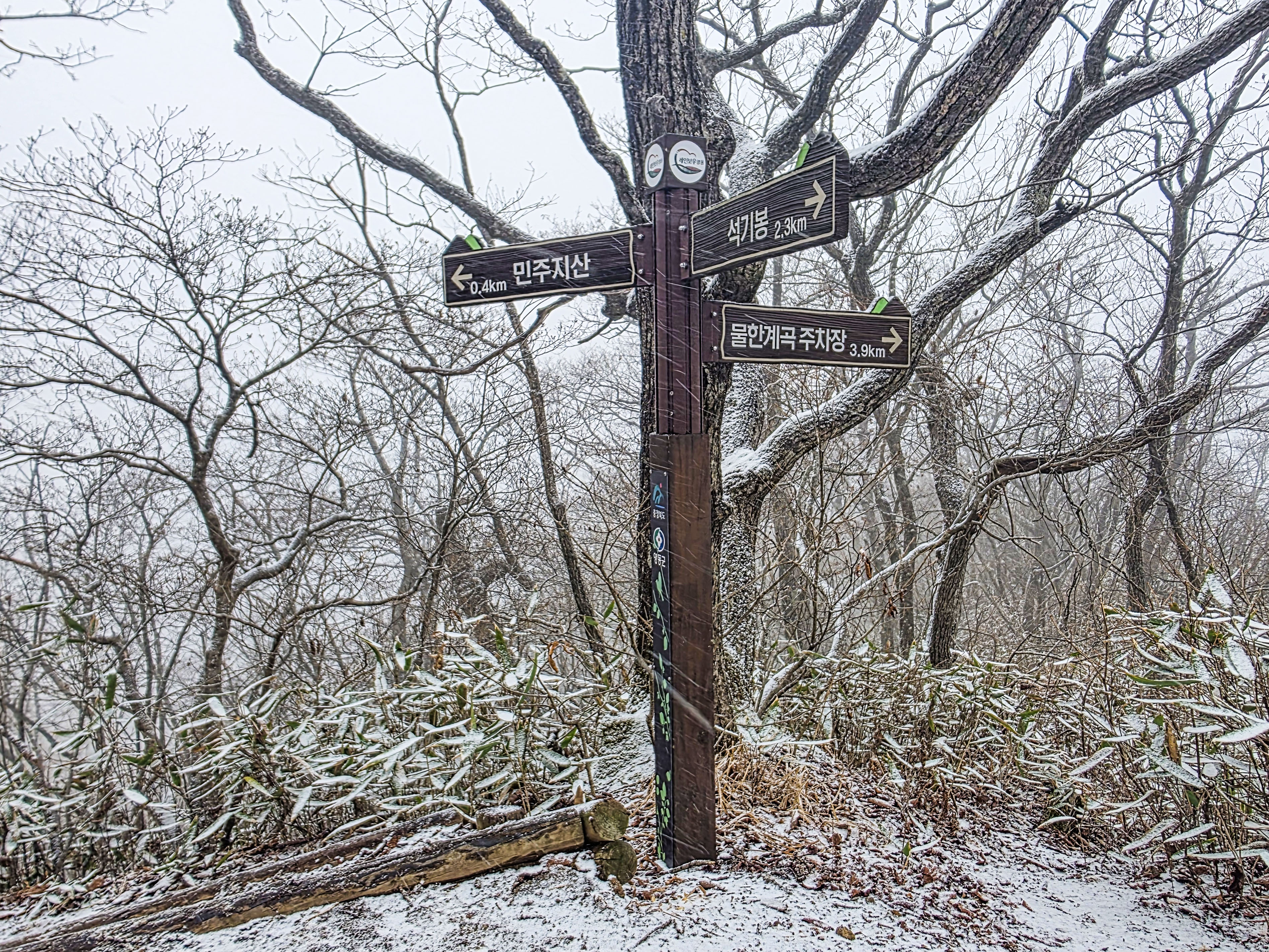 아직은 여유가 느껴지지만, 이 숲길이 끝나면 민주지산의 진짜 겨울이 모습을 드러낸다.