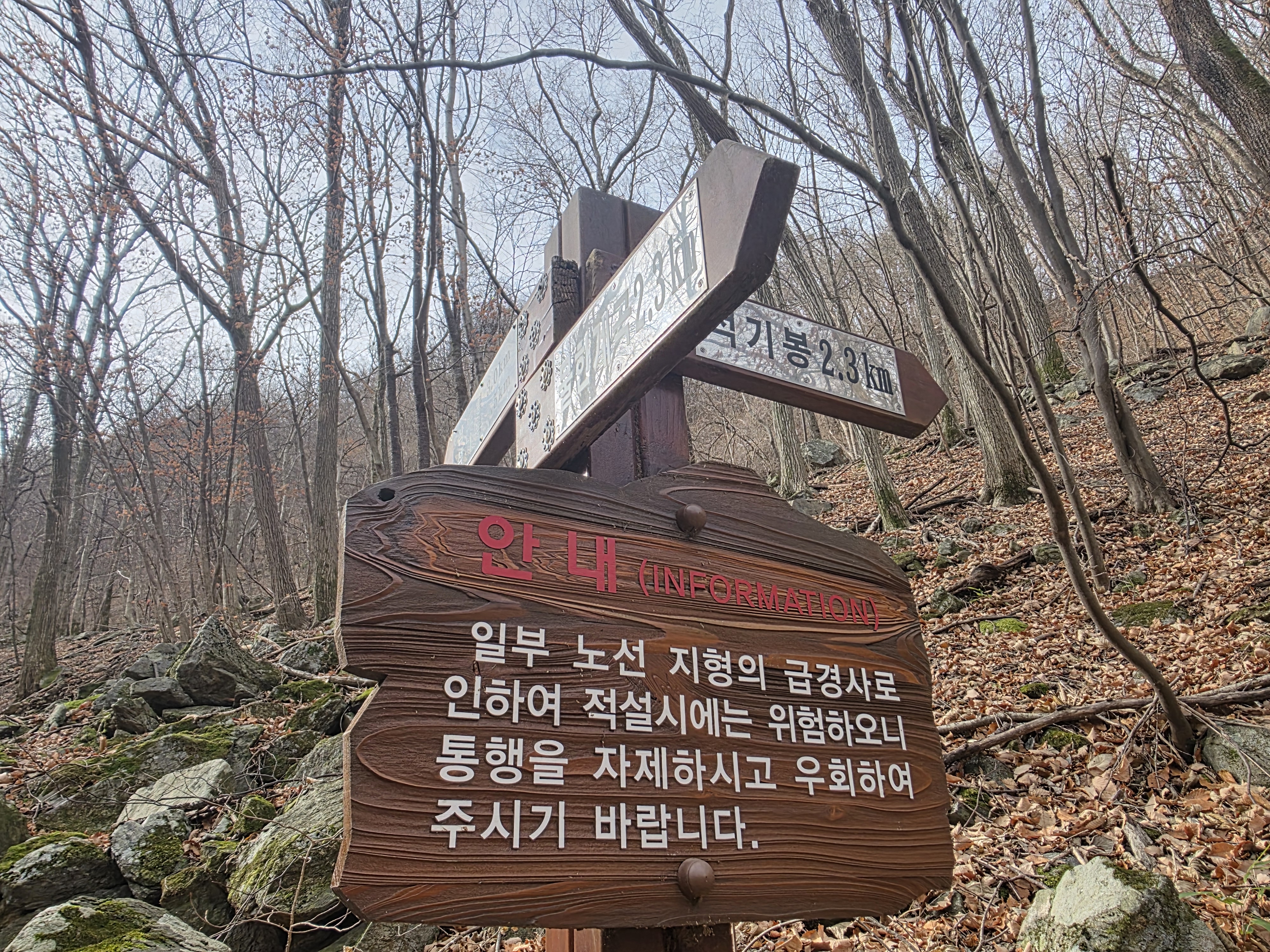 완만한 숲길이 계속되며, 겨울 산행에 앞서 몸과 호흡을 서서히 끌어올리는 구간이다.
