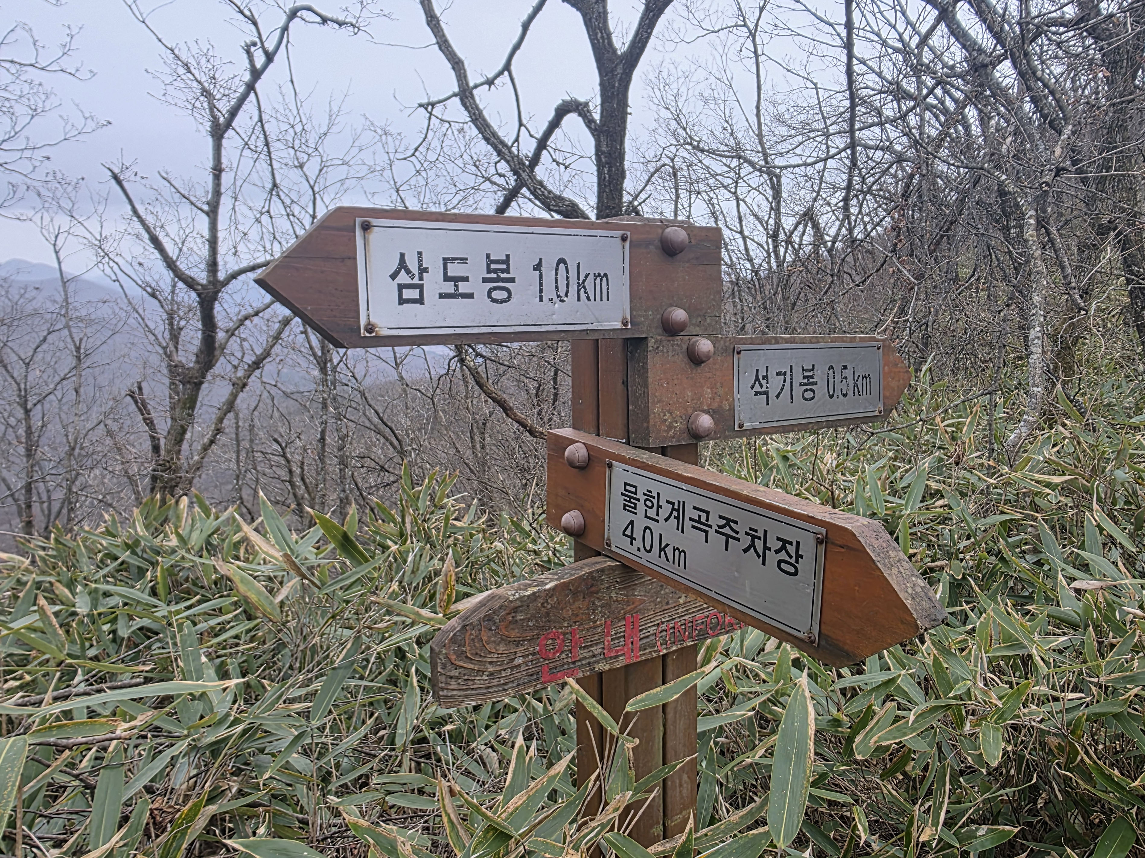 능선 산행의 긴장감이 서서히 풀리며, 하산의 리듬으로 전환되는 지점이다.