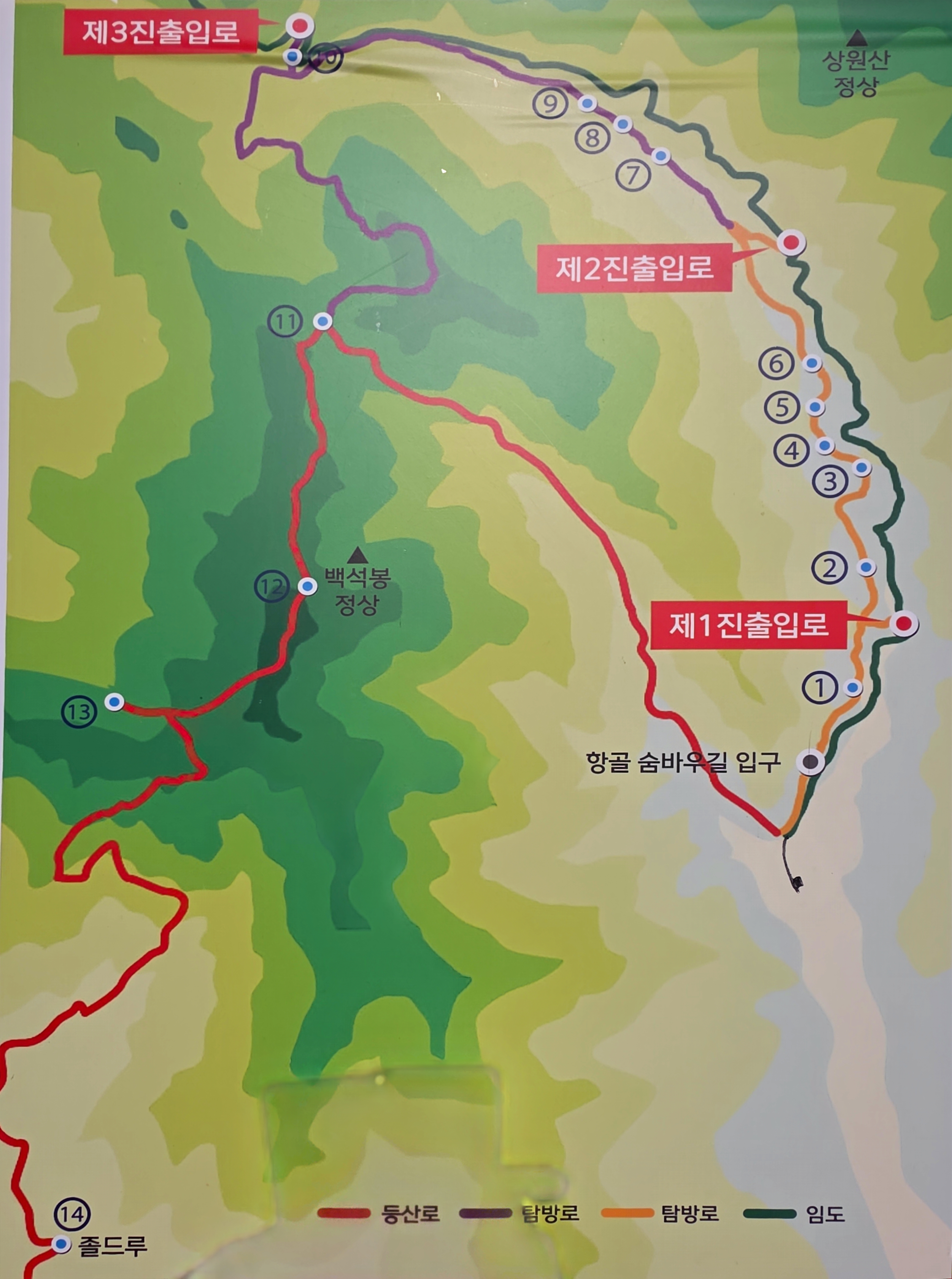 🚩 ② 항골숨바우길 입구 → 너래바위 → 제1용소
