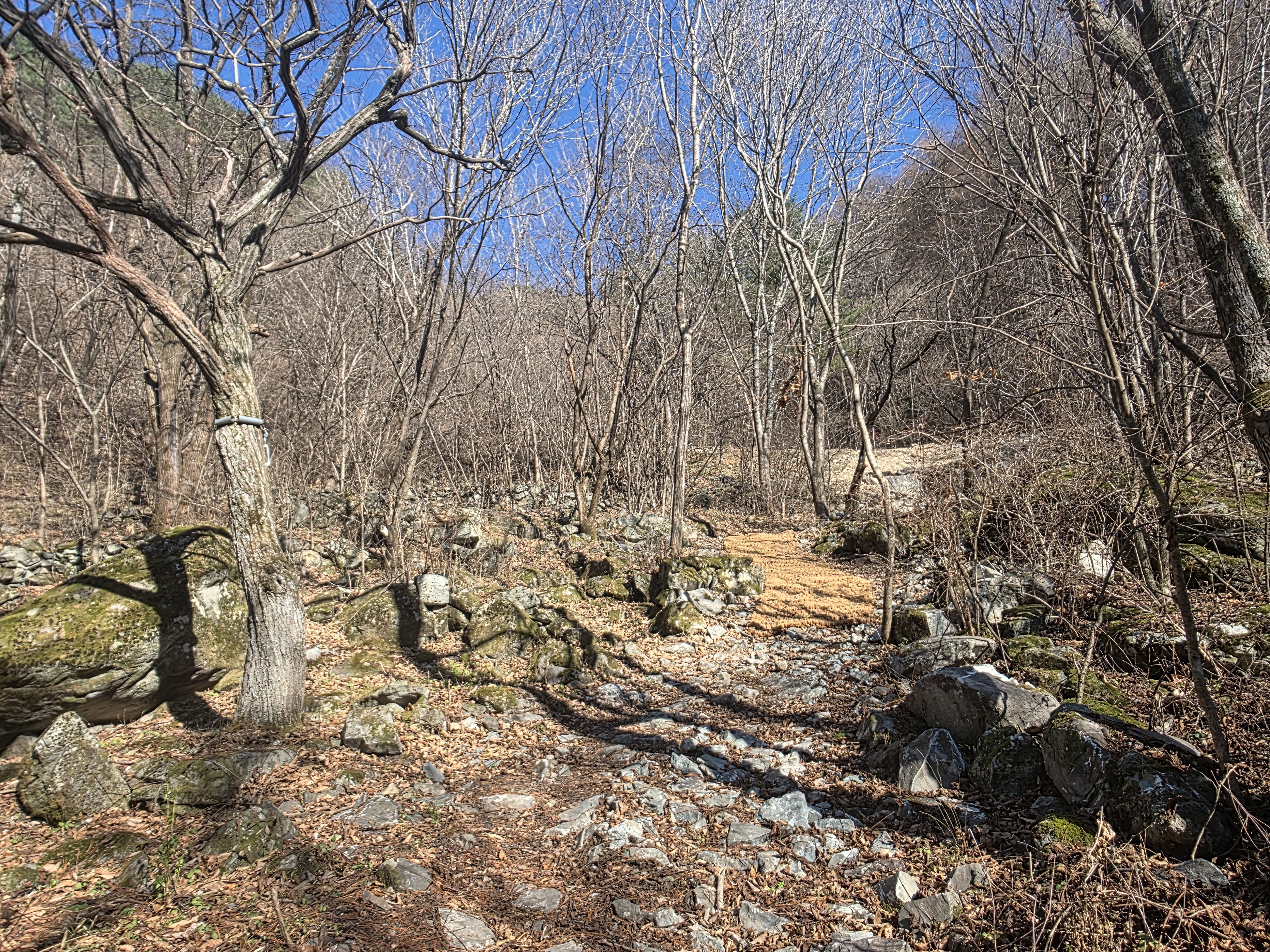 종주팀은 성황당터를 지나 상원산 방향으로 이어지는 숲길을 따라 임도길로 하산했다.