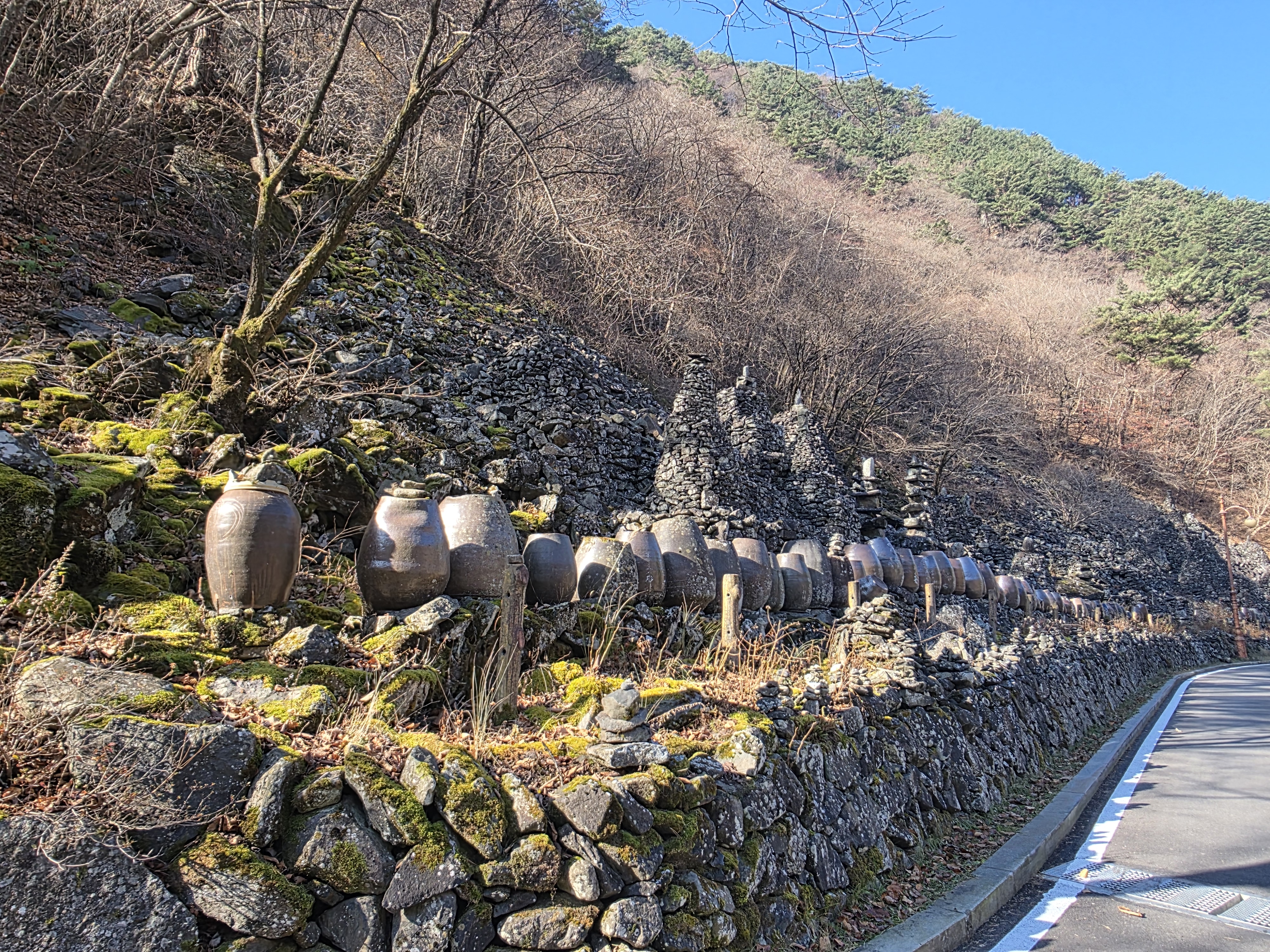 주차장이 넓어 접근이 편리하고, 탐방로 초입부터 항골의 상징인 항아리와 기암괴석들이 모습을 드러낸다.