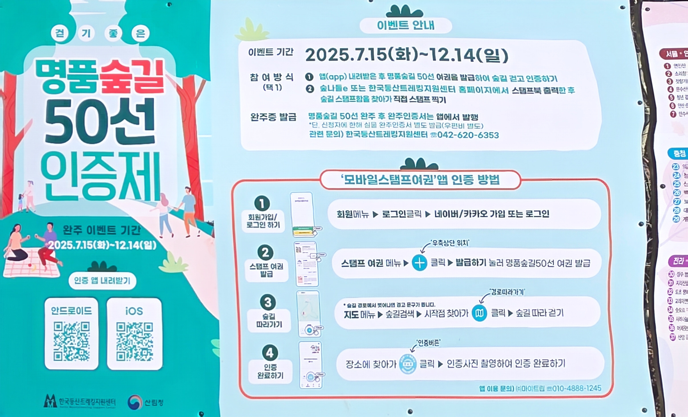 부드러운 흙길과 편안한 경사로 구성되어 있어 트레킹 마무리 코스로 제격이다.