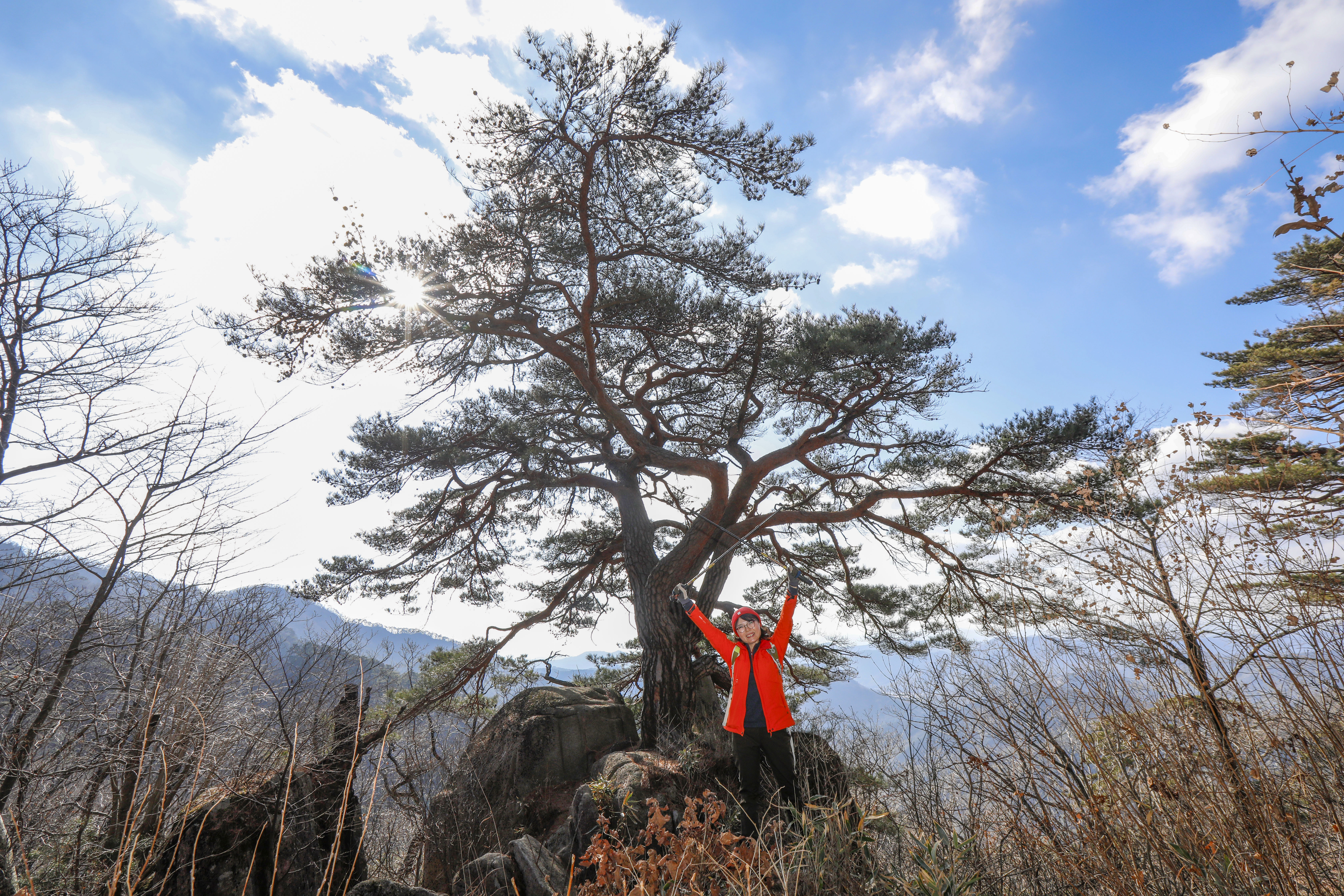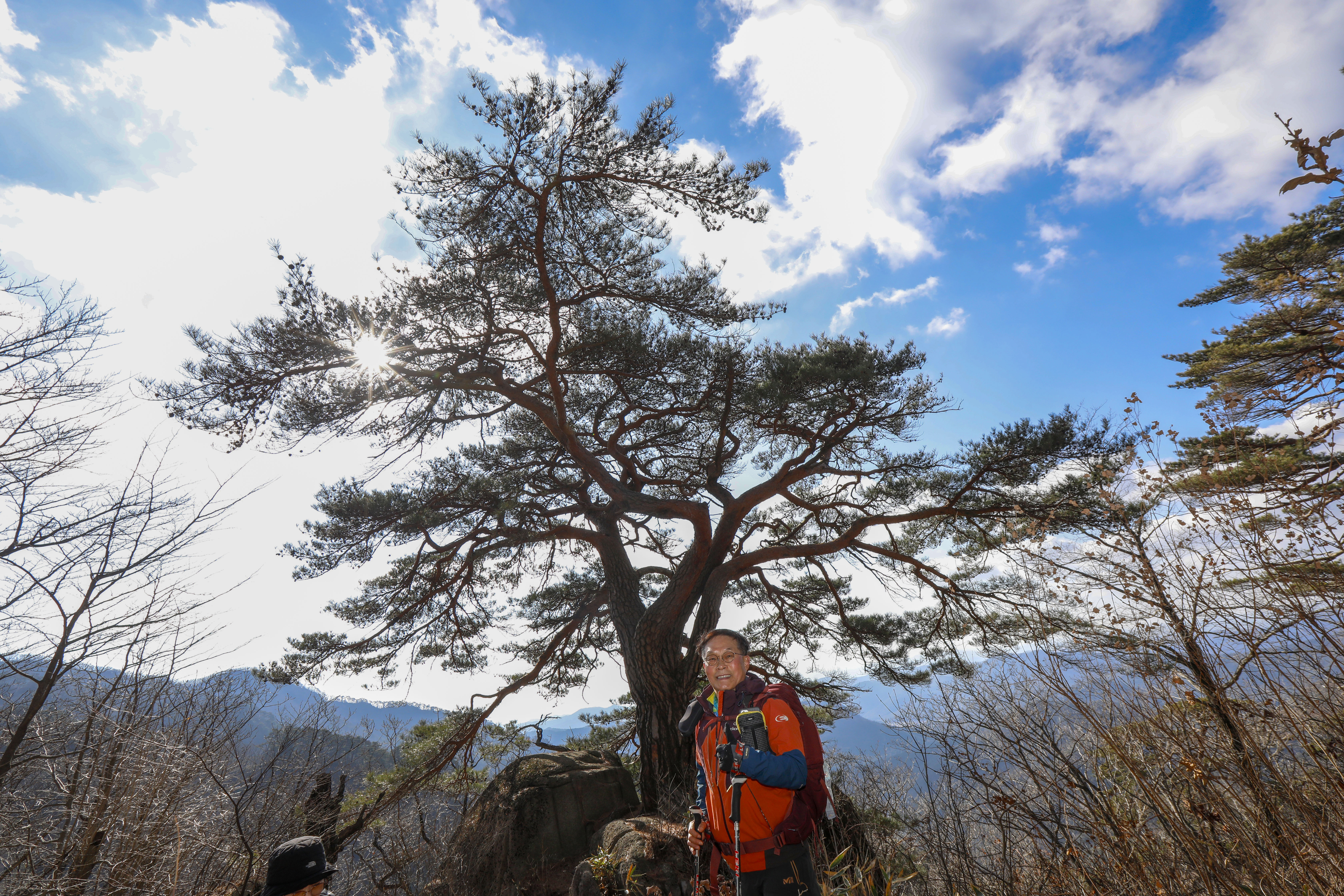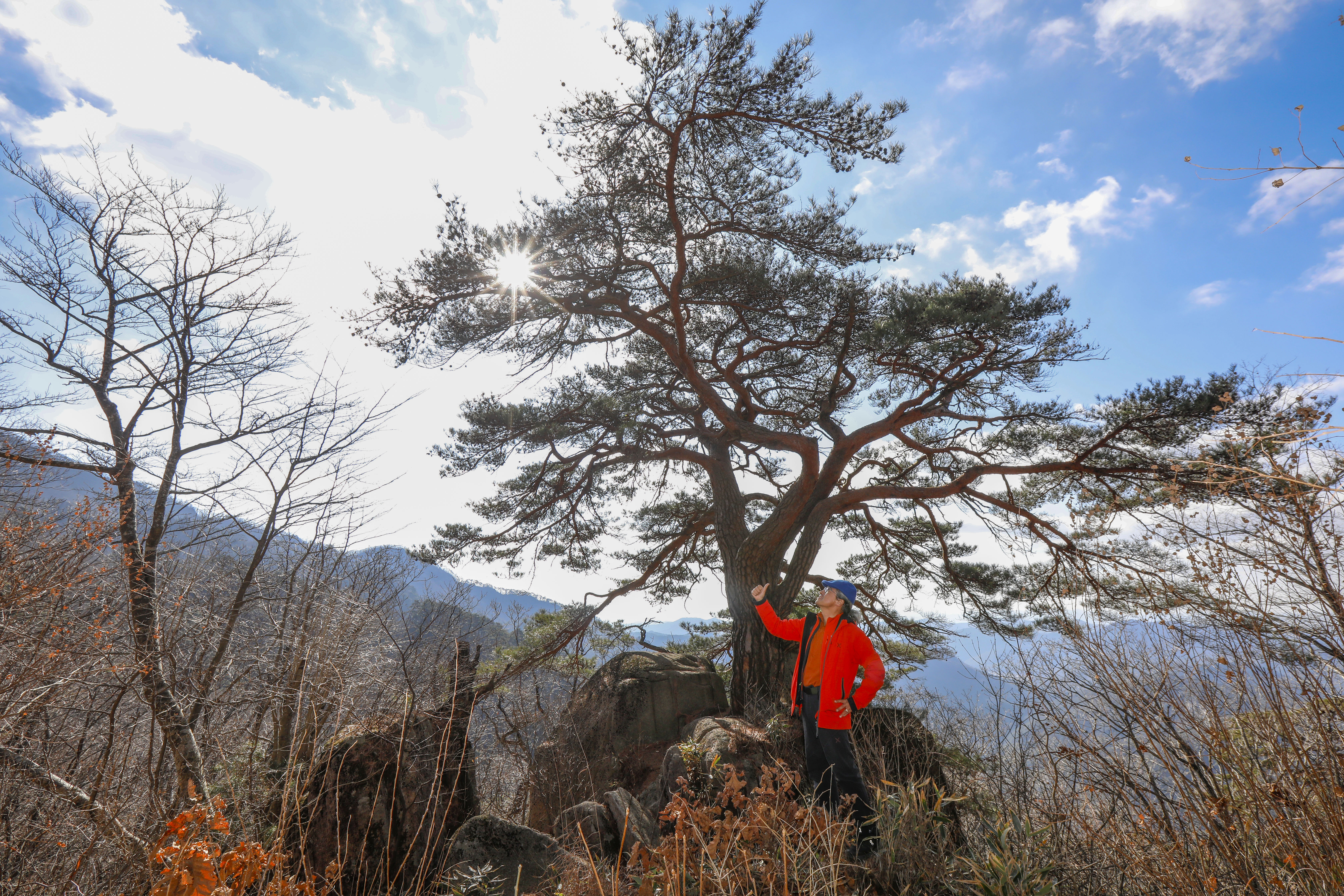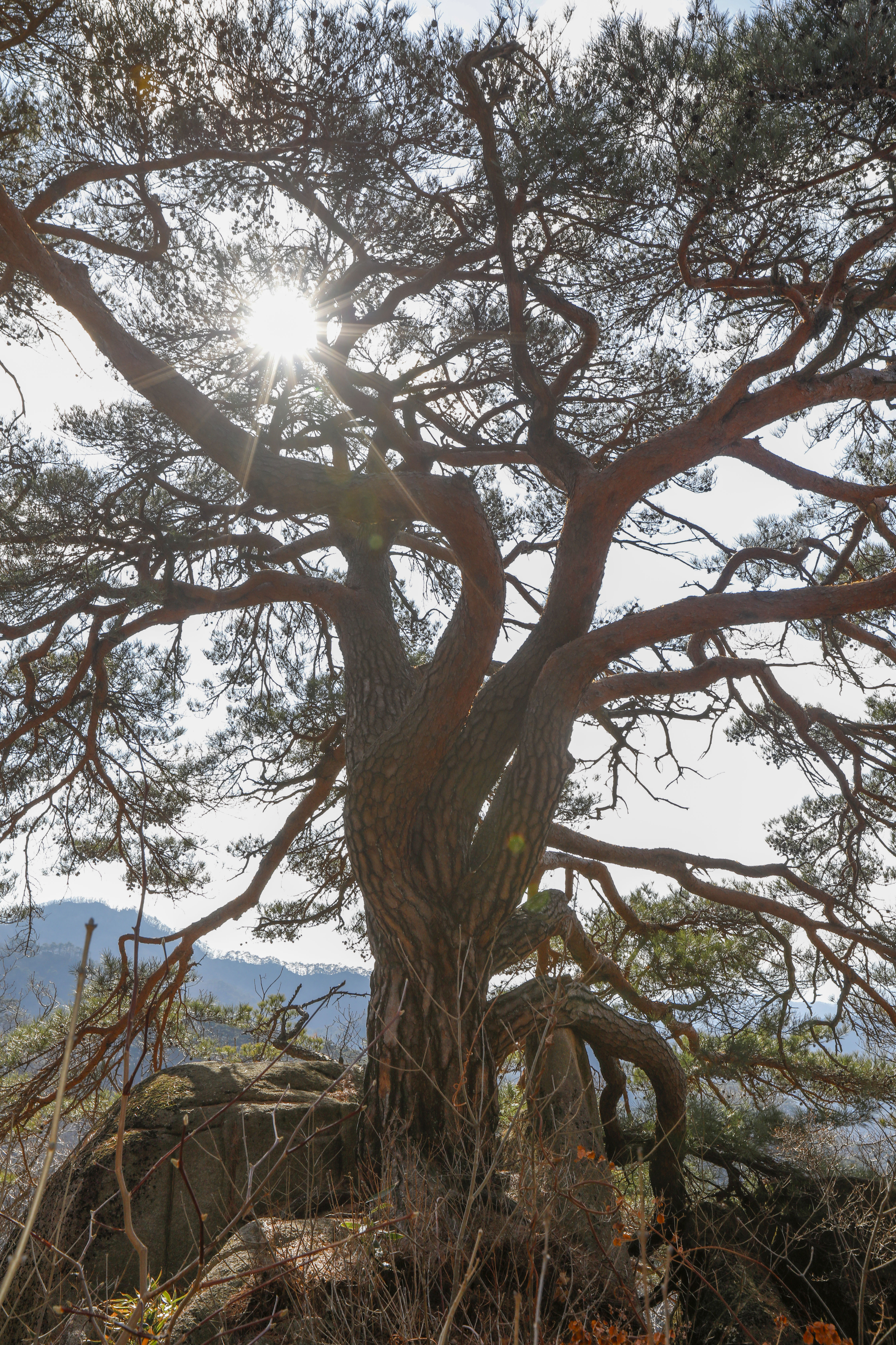 바위 능선 위에 홀로 서서 수백 년 폭풍과 번개를 견뎌온 천년송이다.