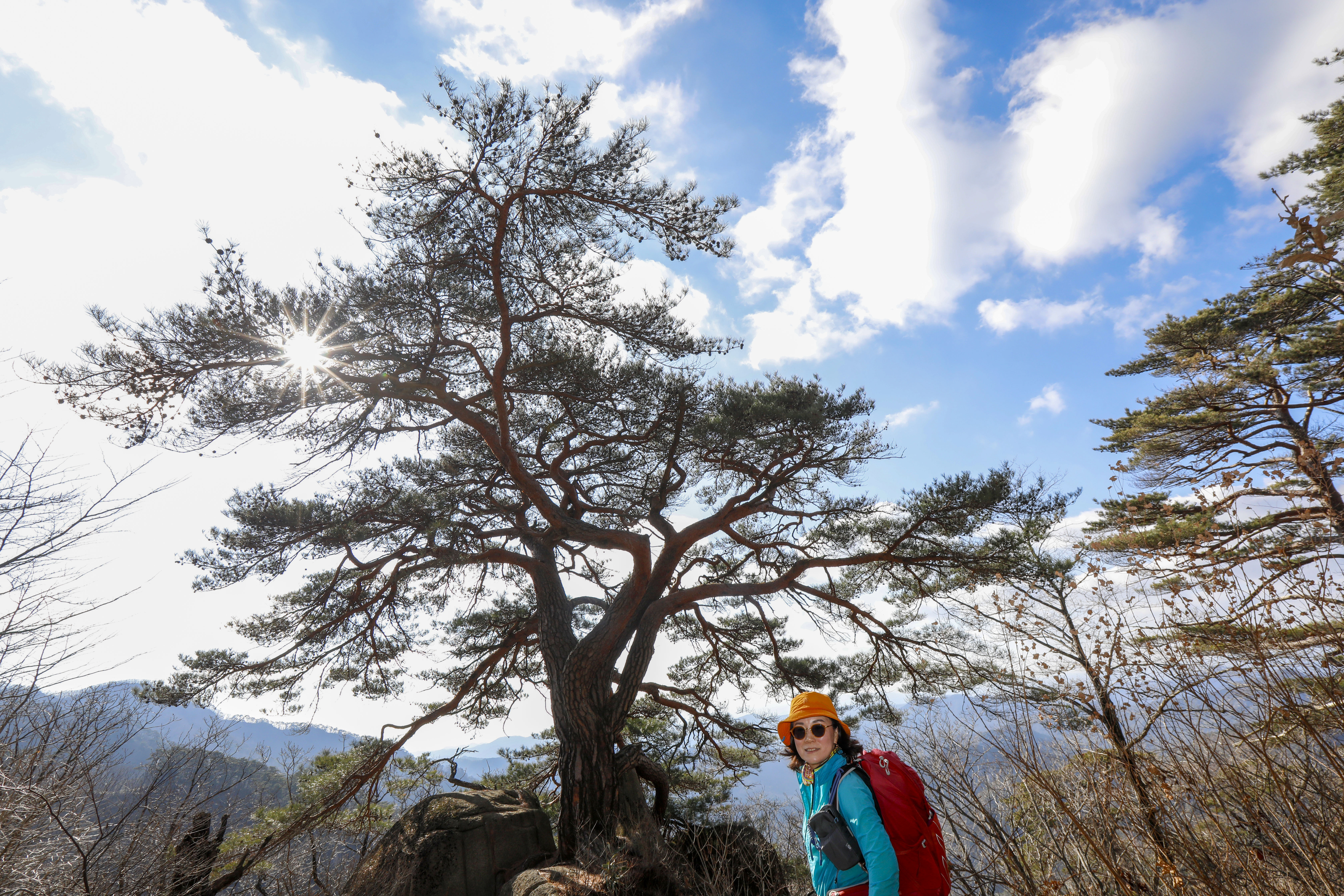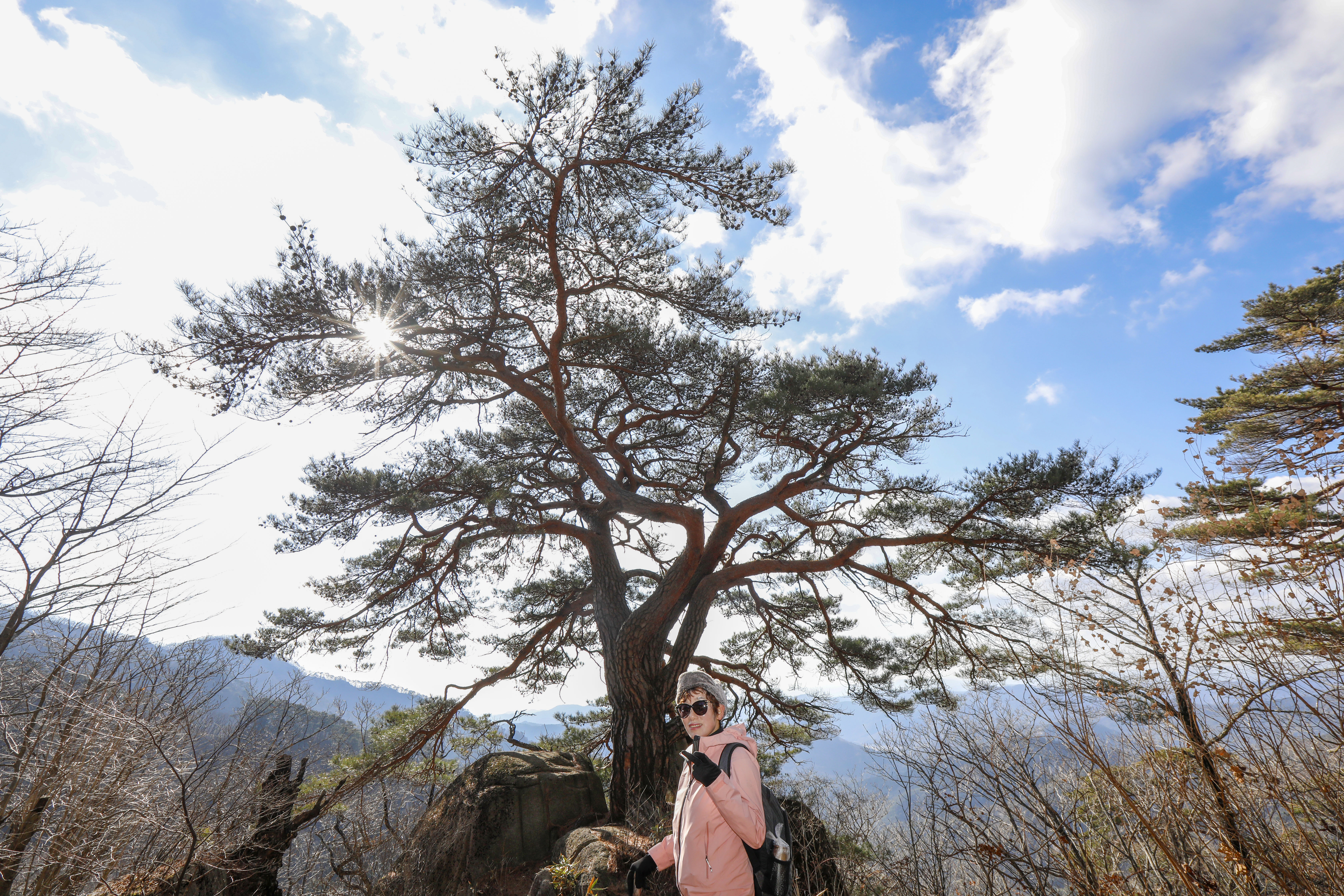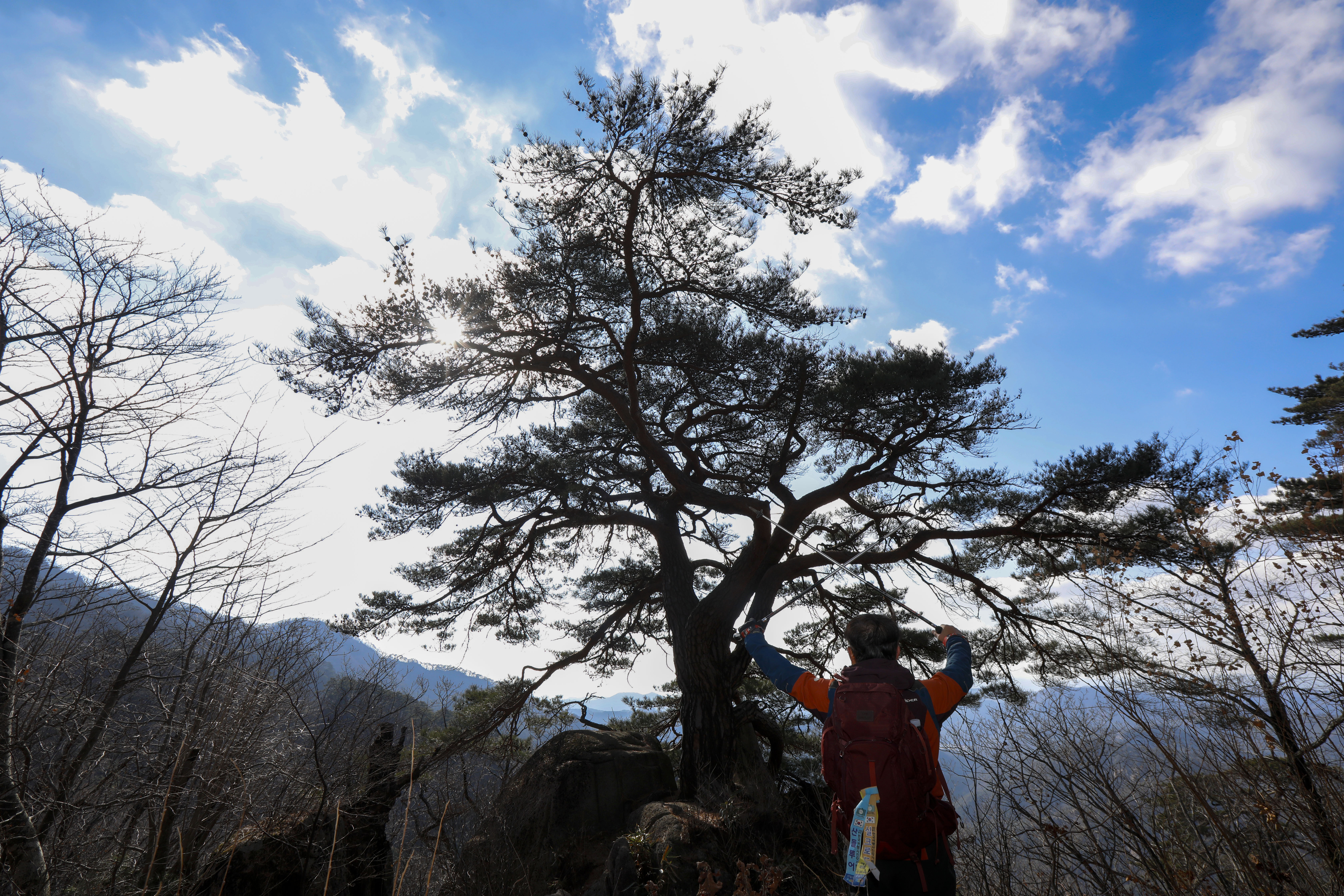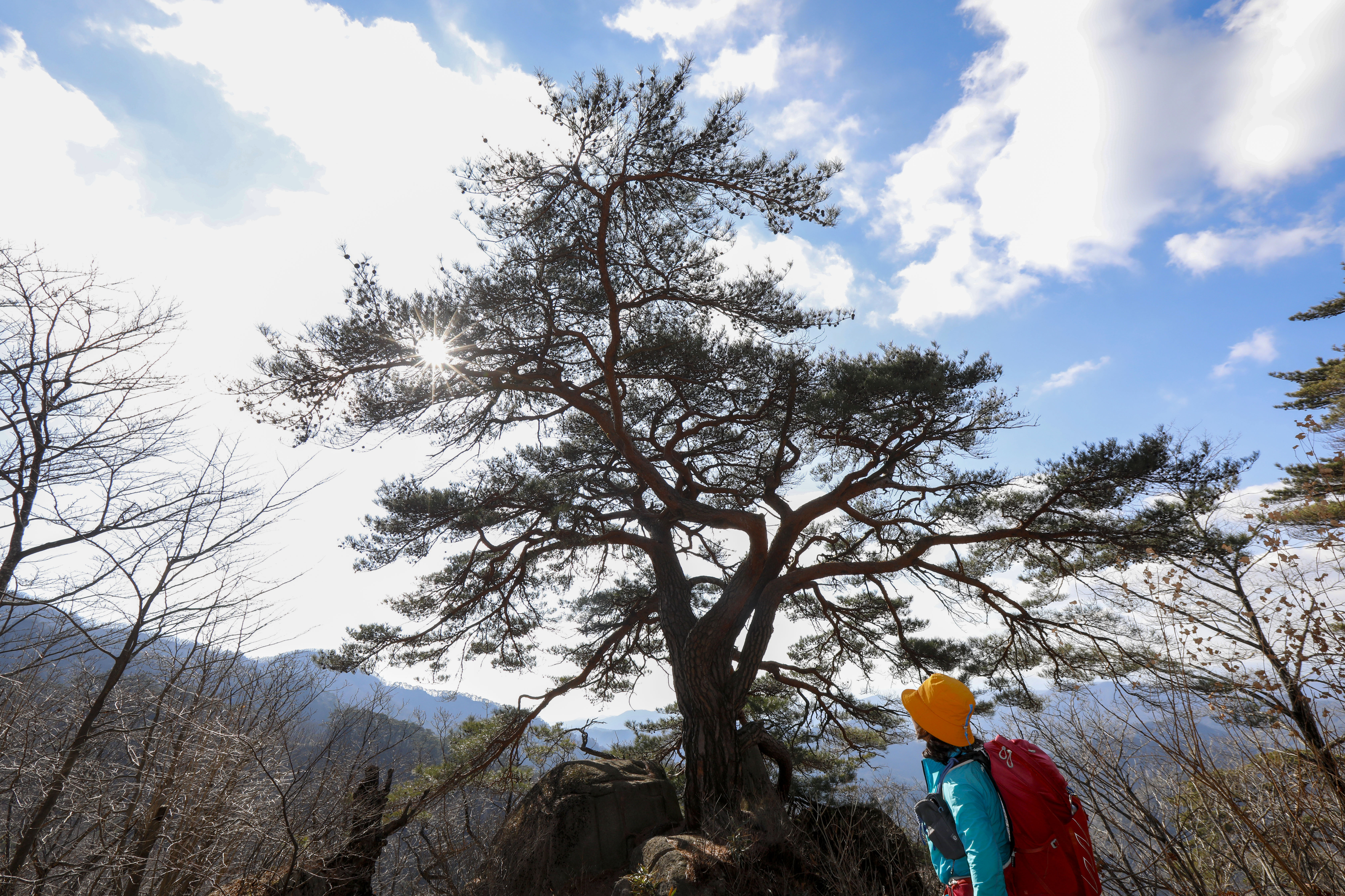 바위 능선 위에 홀로 서서 수백 년 폭풍과 번개를 견뎌온 천년송이다.