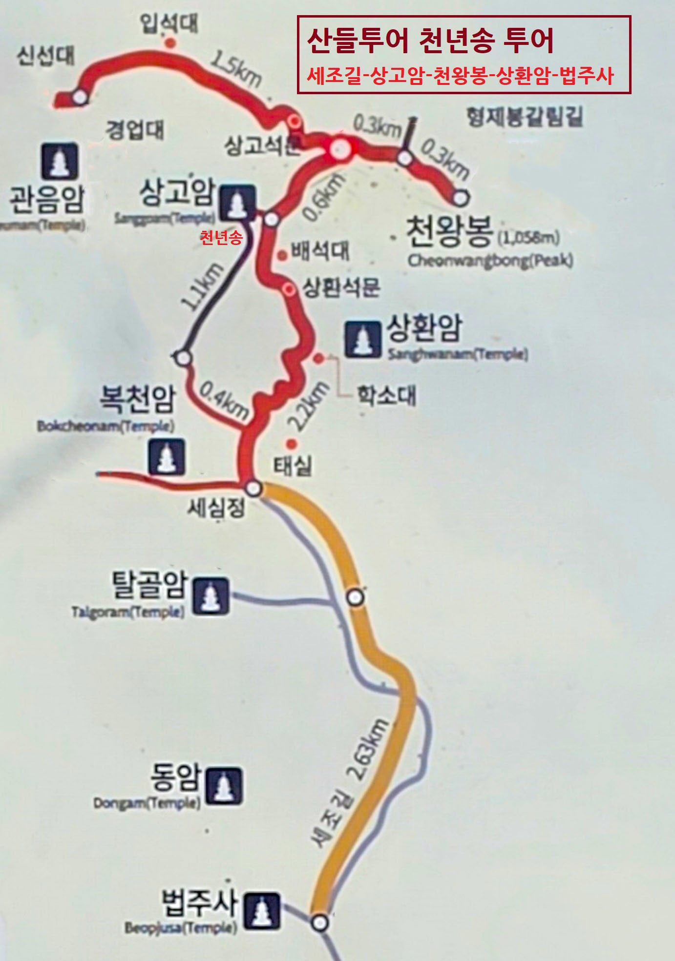 이번 최종 코스는 법주사 – 상고암 – 천왕봉 – 상환암 – 법주사로 이어지는 원점회귀 12km, 약 5시간 트레킹으로 진행됐다.