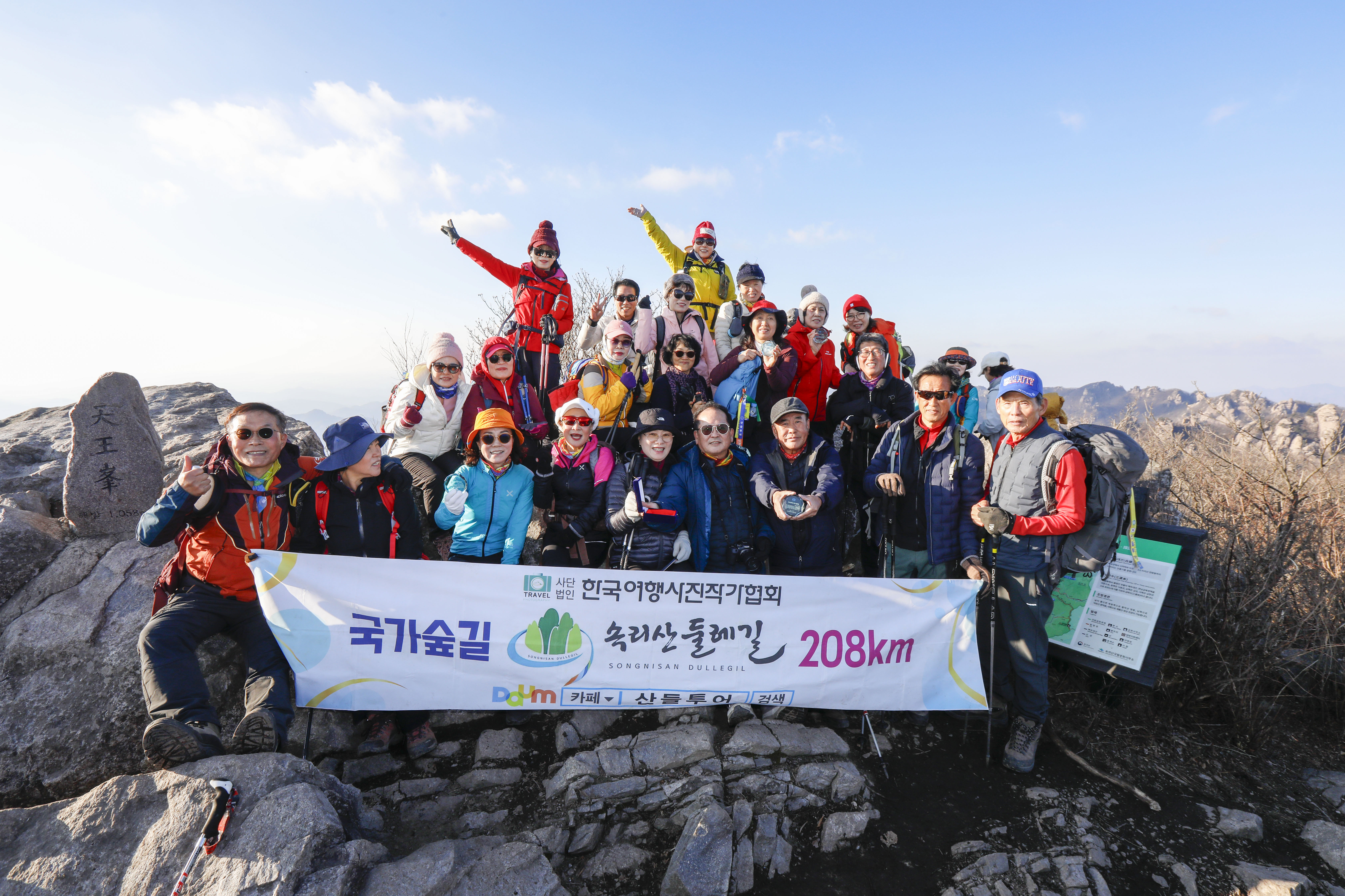 속리산 천왕봉 정상에서 산들투어는 마침내 길고도 의미 깊었던 둘레길 208km 완주의 마지막 페이지를 넘겼다.