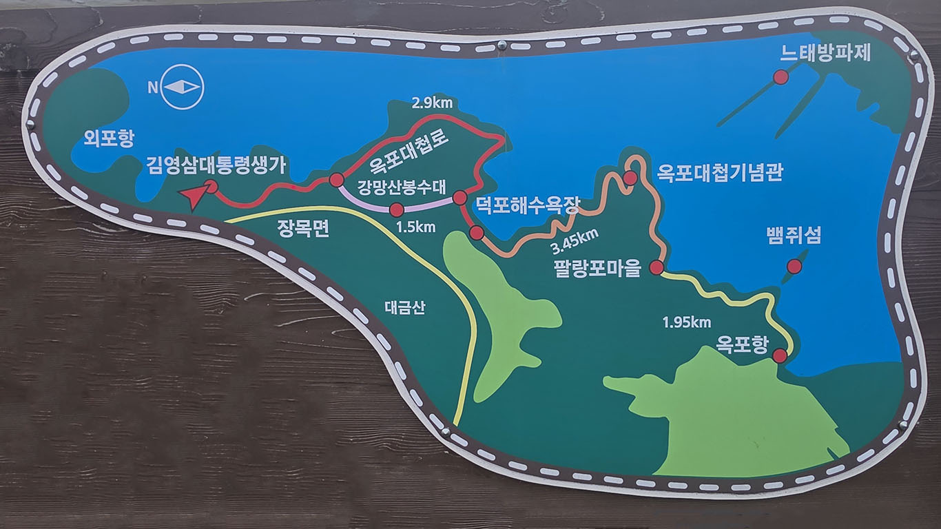 이번 여정은 경남 거제시 대계마을 김영삼대통령기록전시관에서 시작해, 장승포시외버스터미널까지 이어지는 약 15.4km 코스.
