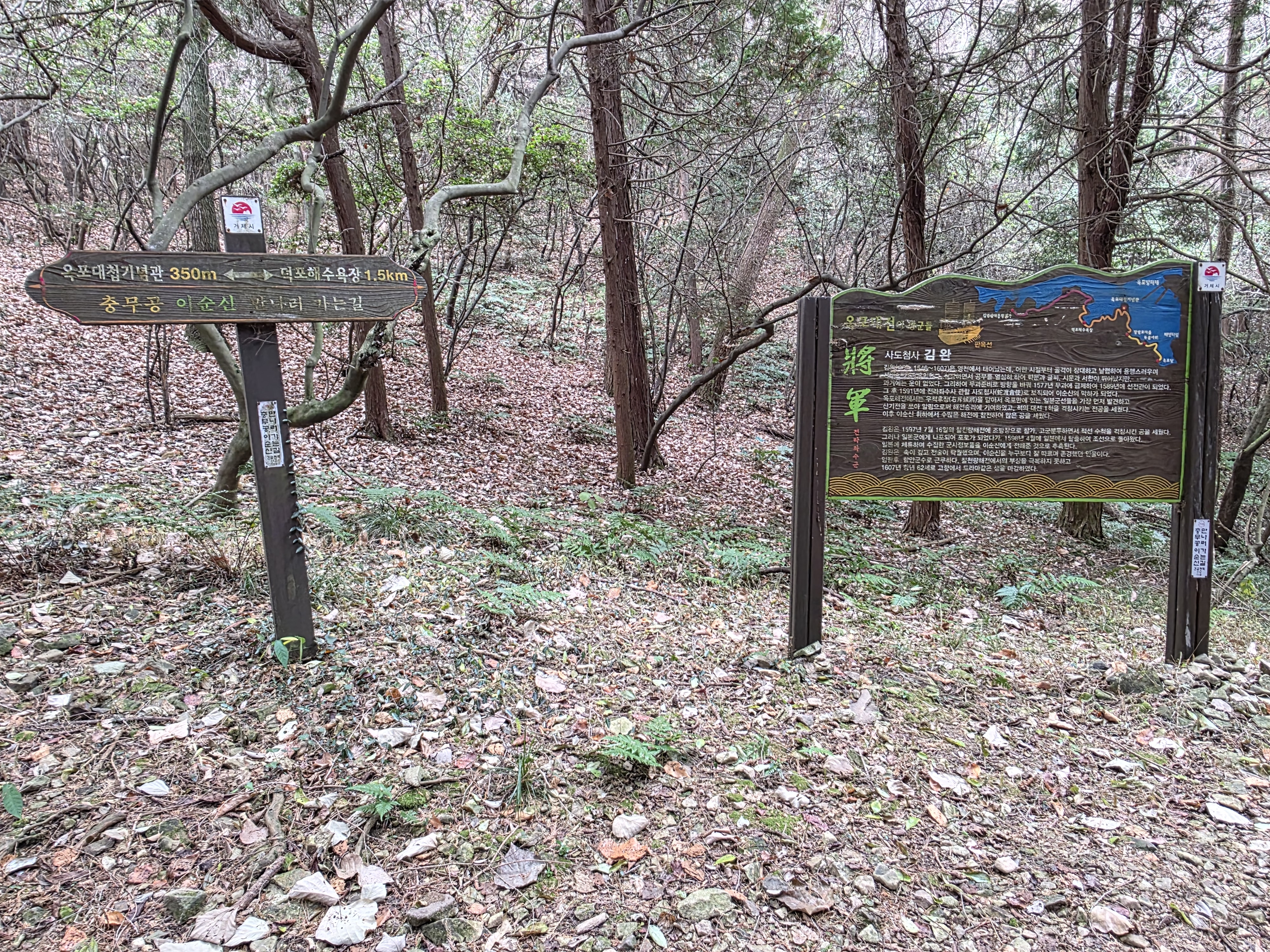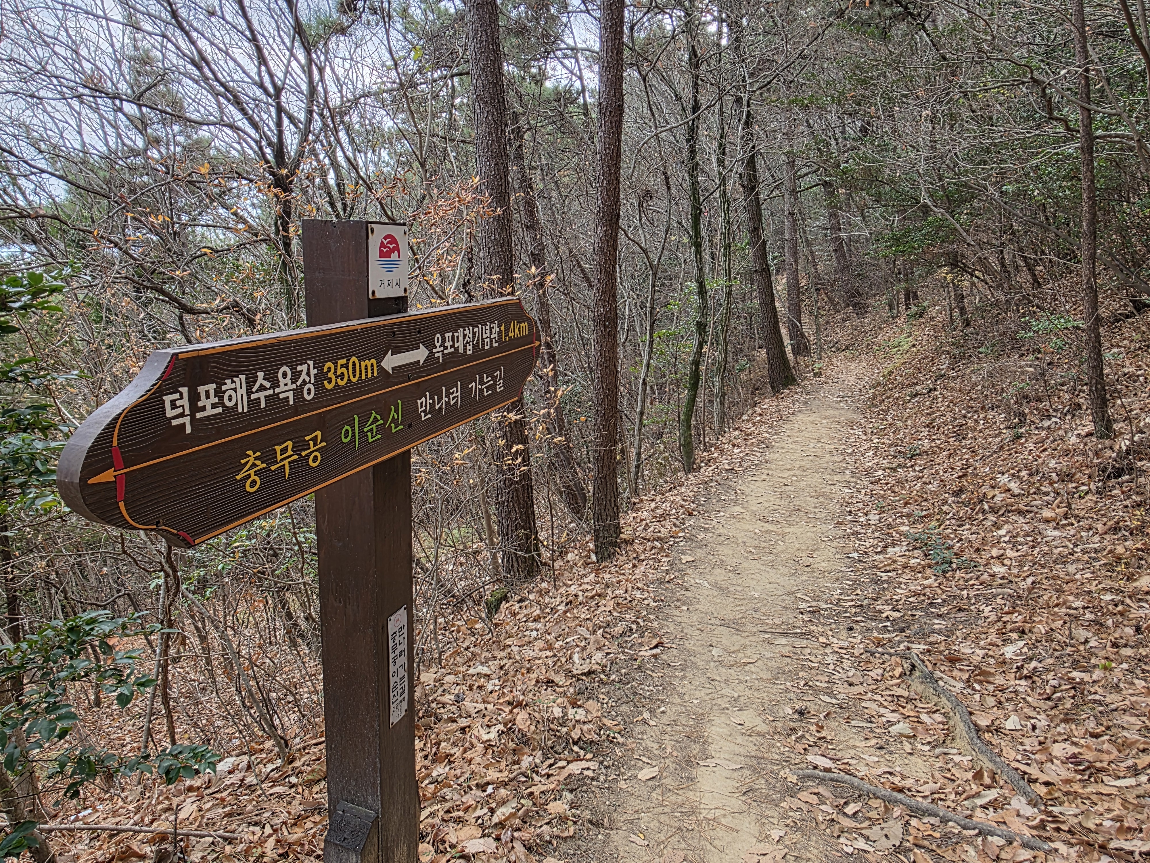 덕포항을 지나 철다리를 건너면 숲길이 시작되고, 길목 곳곳에는 **‘이순신 장군을 만나러 가는 길’**이라는 표지판과 승전군인 표석들이 세워져 있어 임진왜란 당시의 전투를 떠올리게 합니다.
