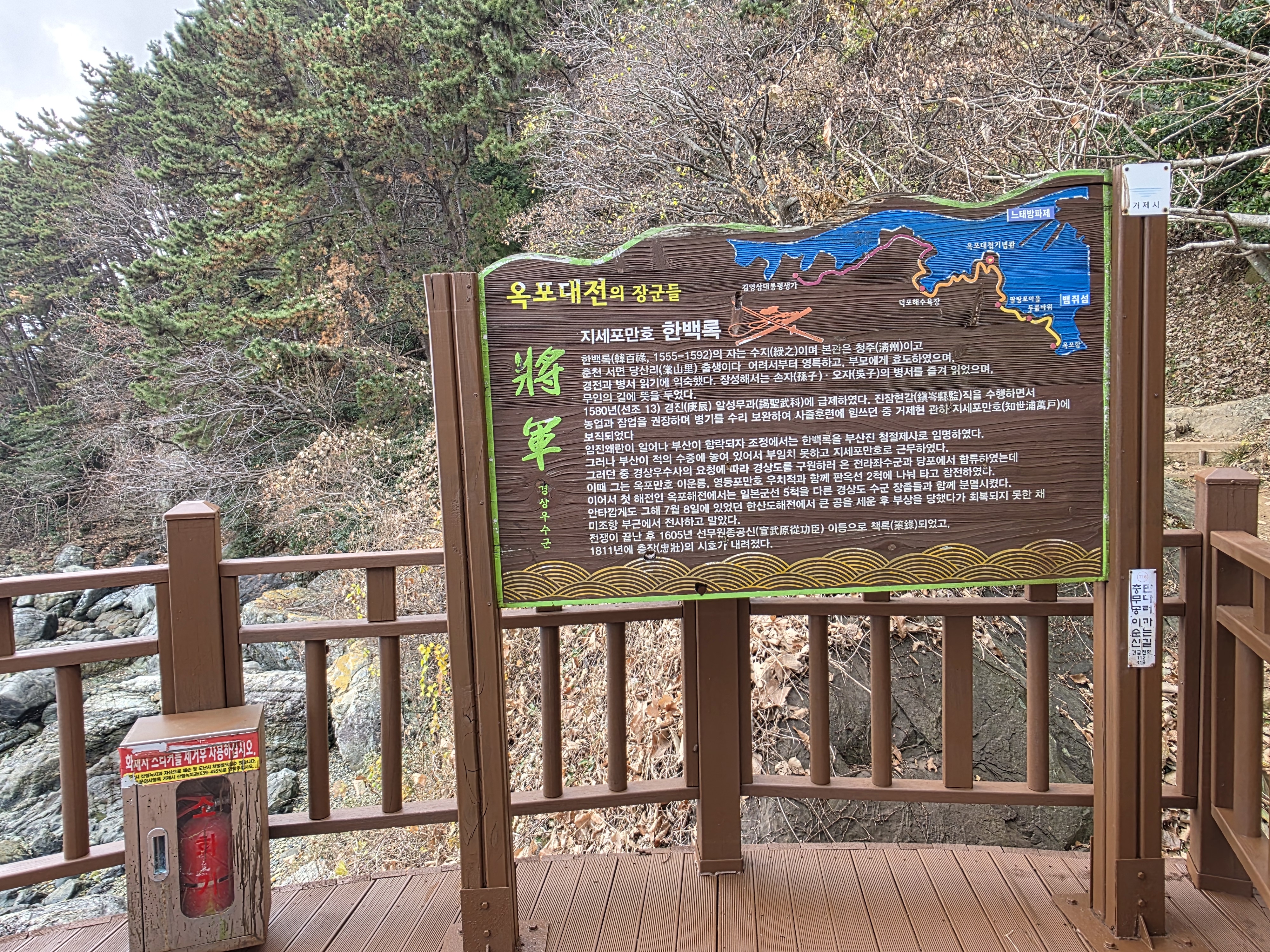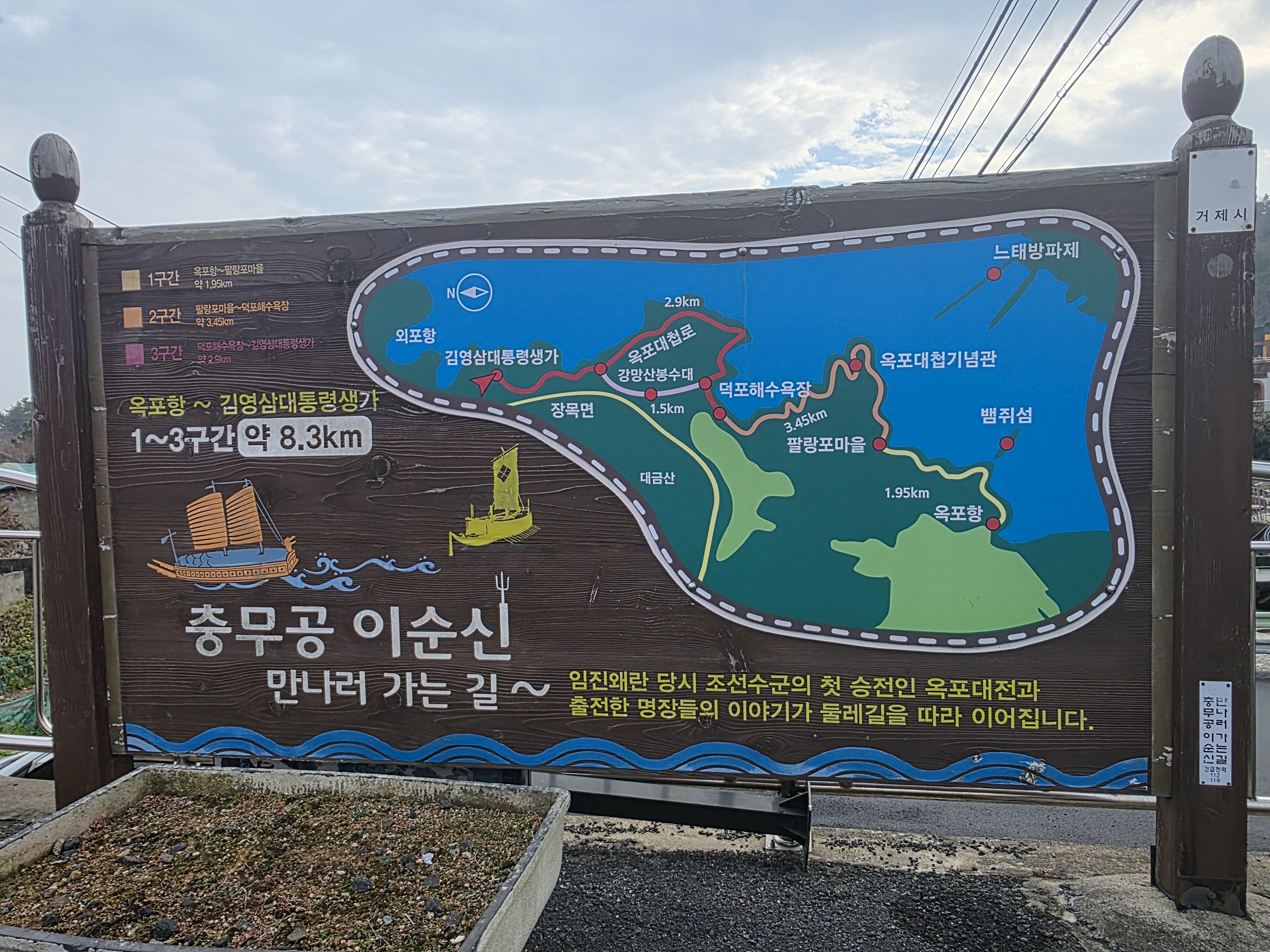 이순신 사당과 기념공원을 지나 해안 데크길을 따라 옥포항으로 향합니다.