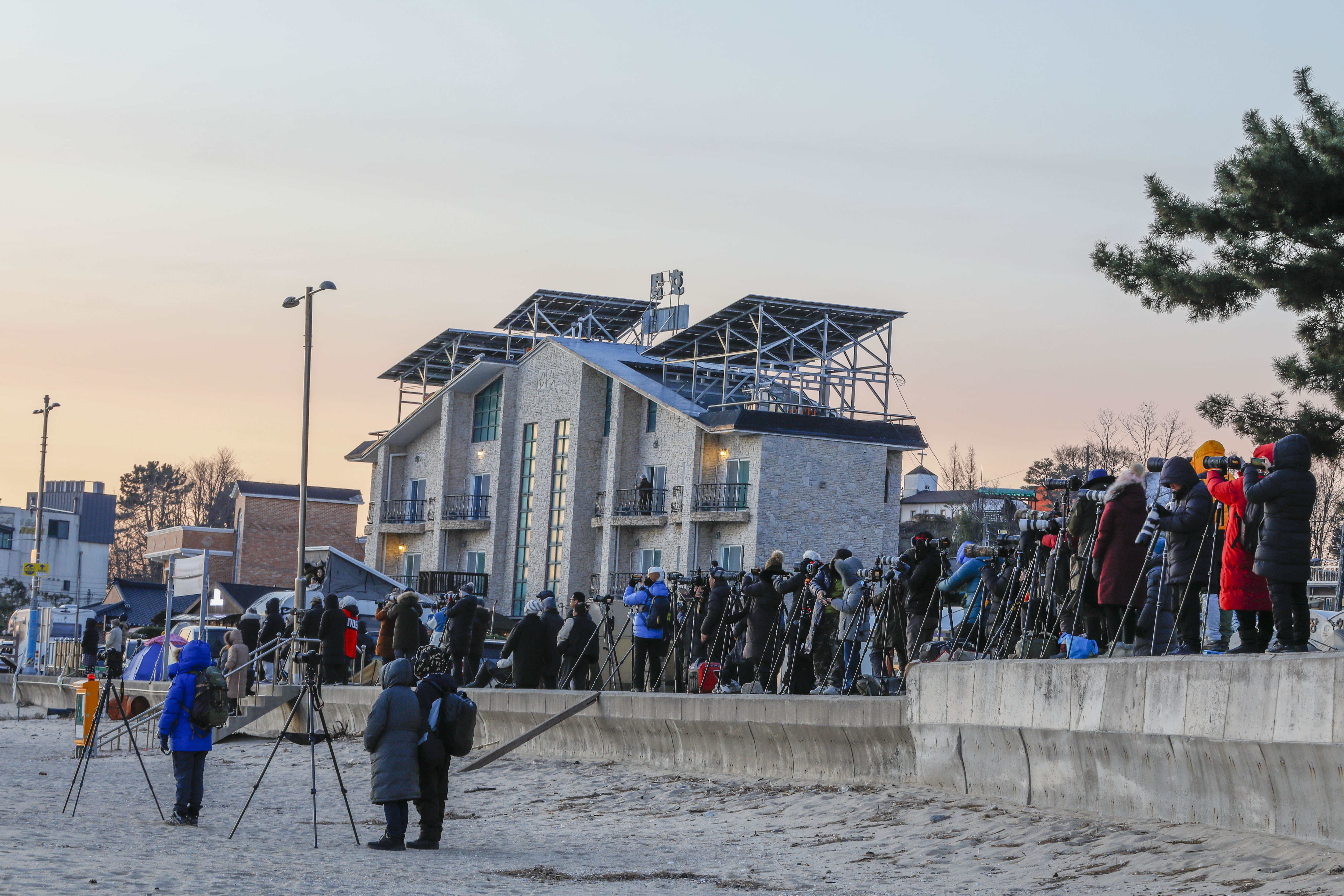 새벽 어둠이 채 가시지 않은 시간, 해변에는 이미 많은 사진가들이 삼각대를 세우고 새해 첫 빛을 기다리고 있었다.