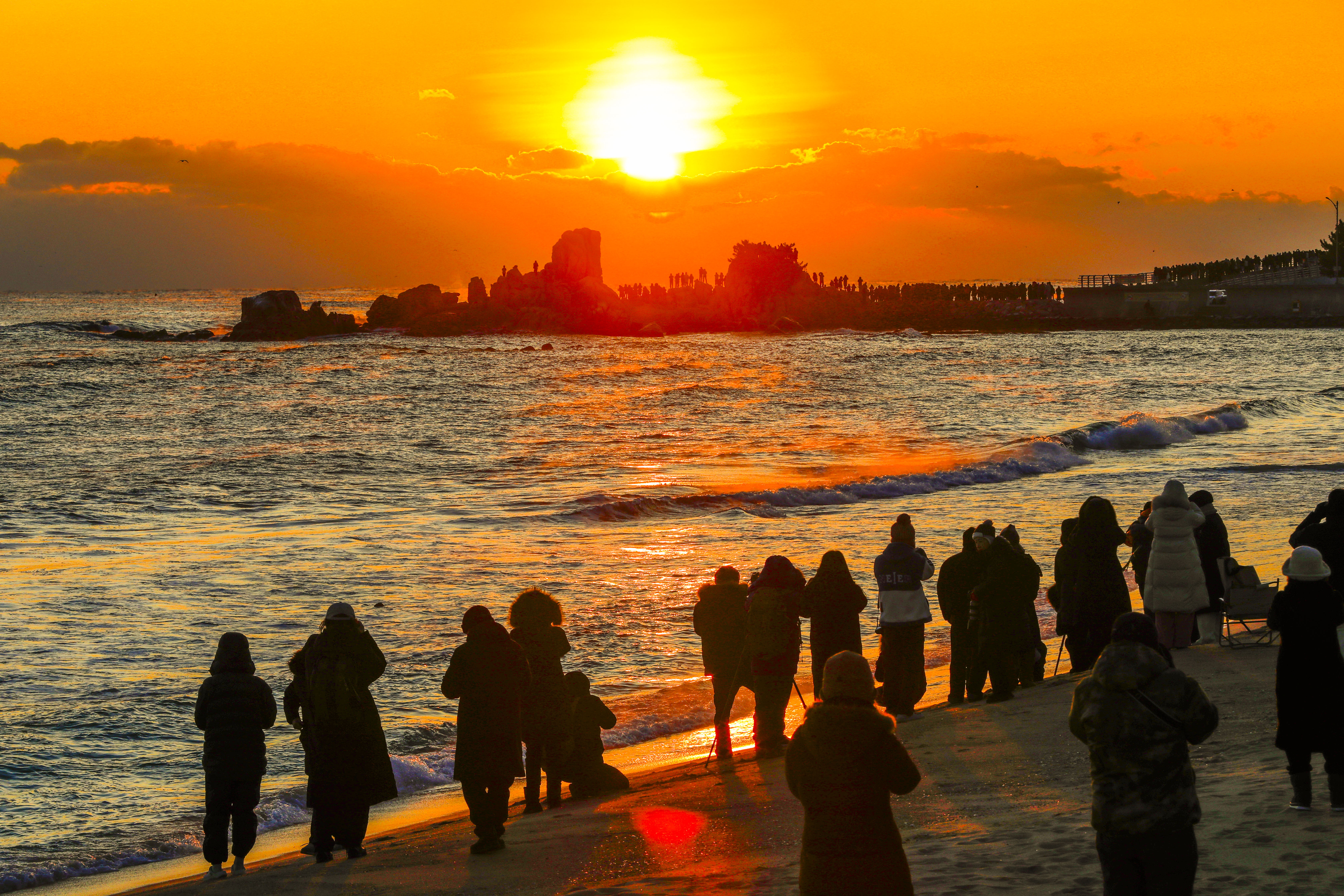 누군가는 두 손을 모아 새해 소망을 빌었고, 누군가는 파도 소리 위로 작은 환호성을 올렸다.