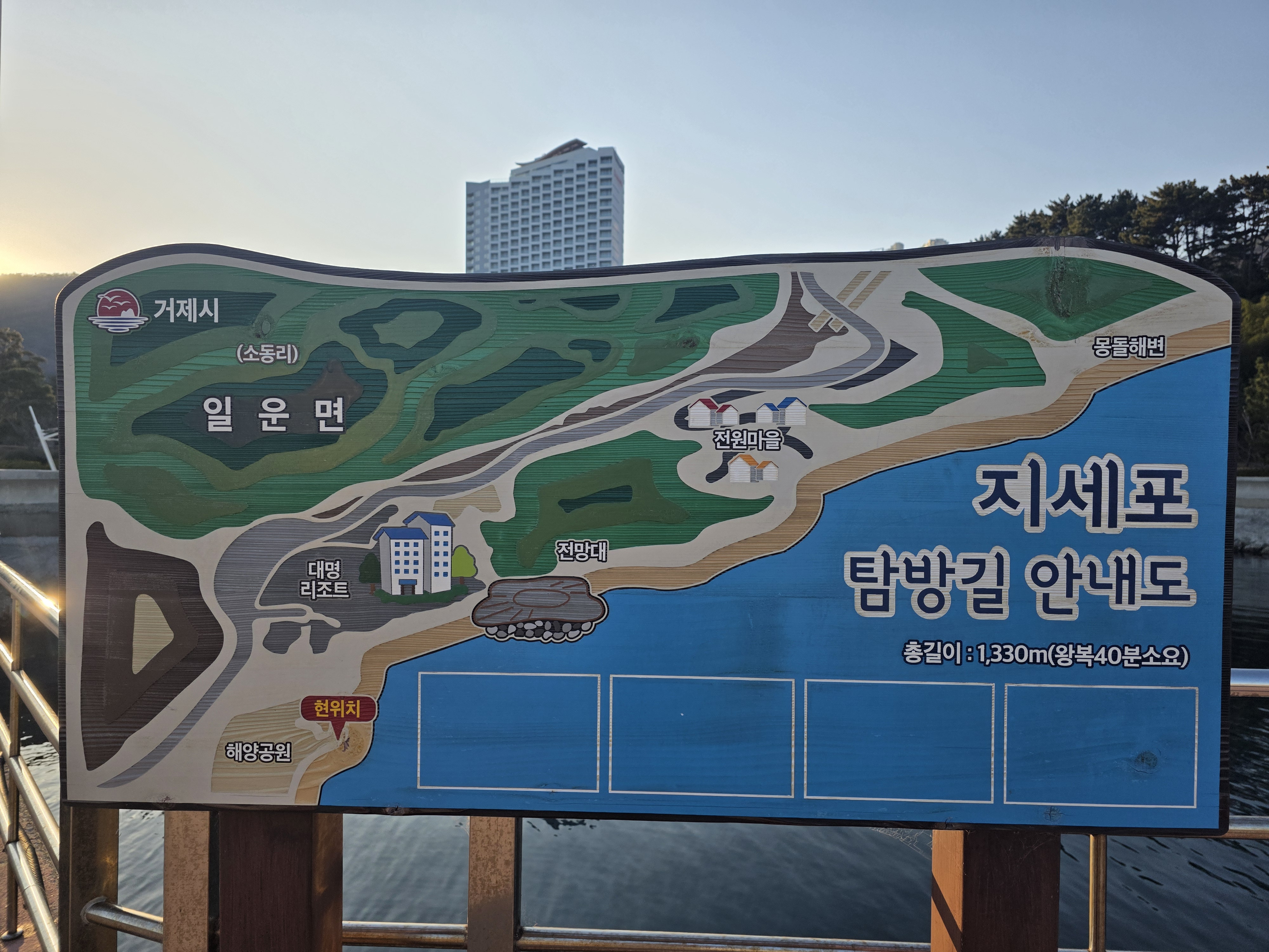 지세포 해안공원을 이여주는 소노캄 이름의 해안 테크길 구간은 전체가 평탄한 데크길로 조성되어 있어서 남녀노소 누구나 쉽게 걸을 수 있는 낭만적인 힐링 코스입니다.