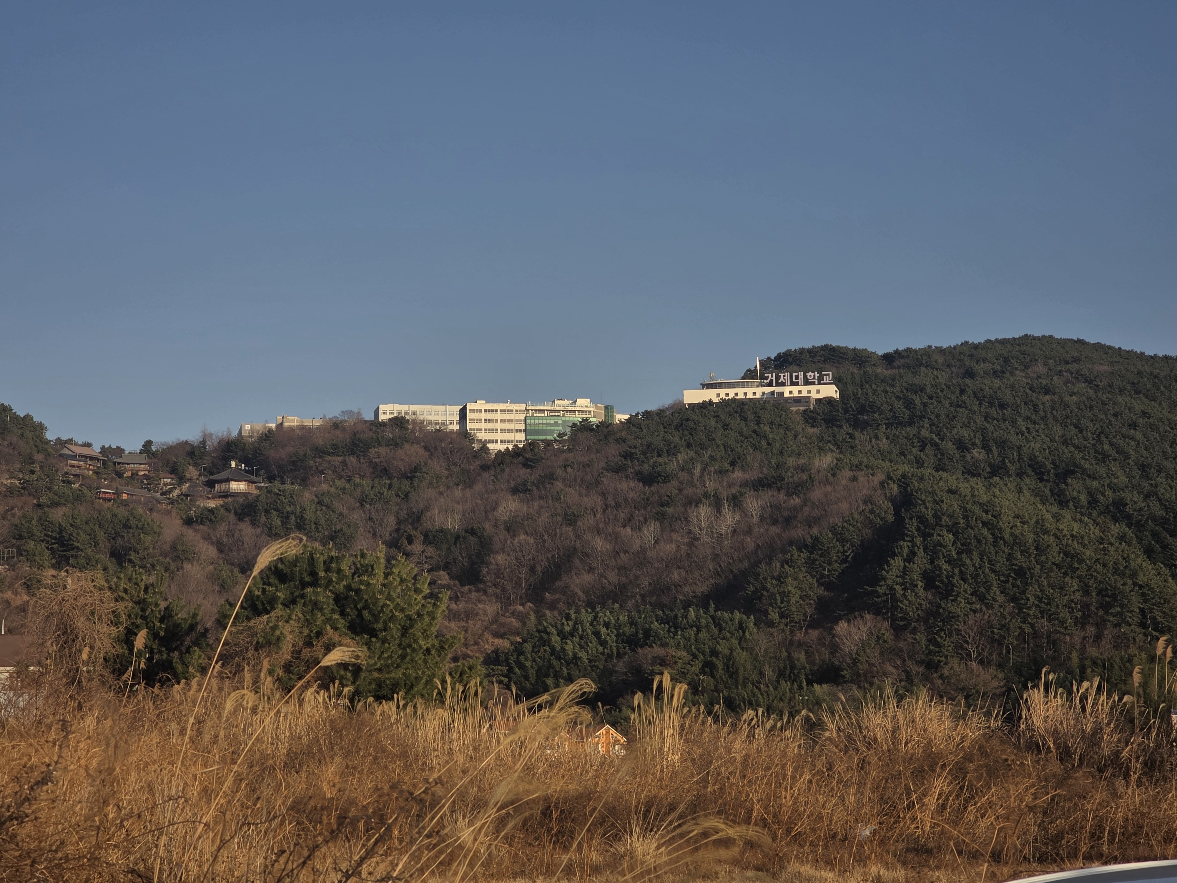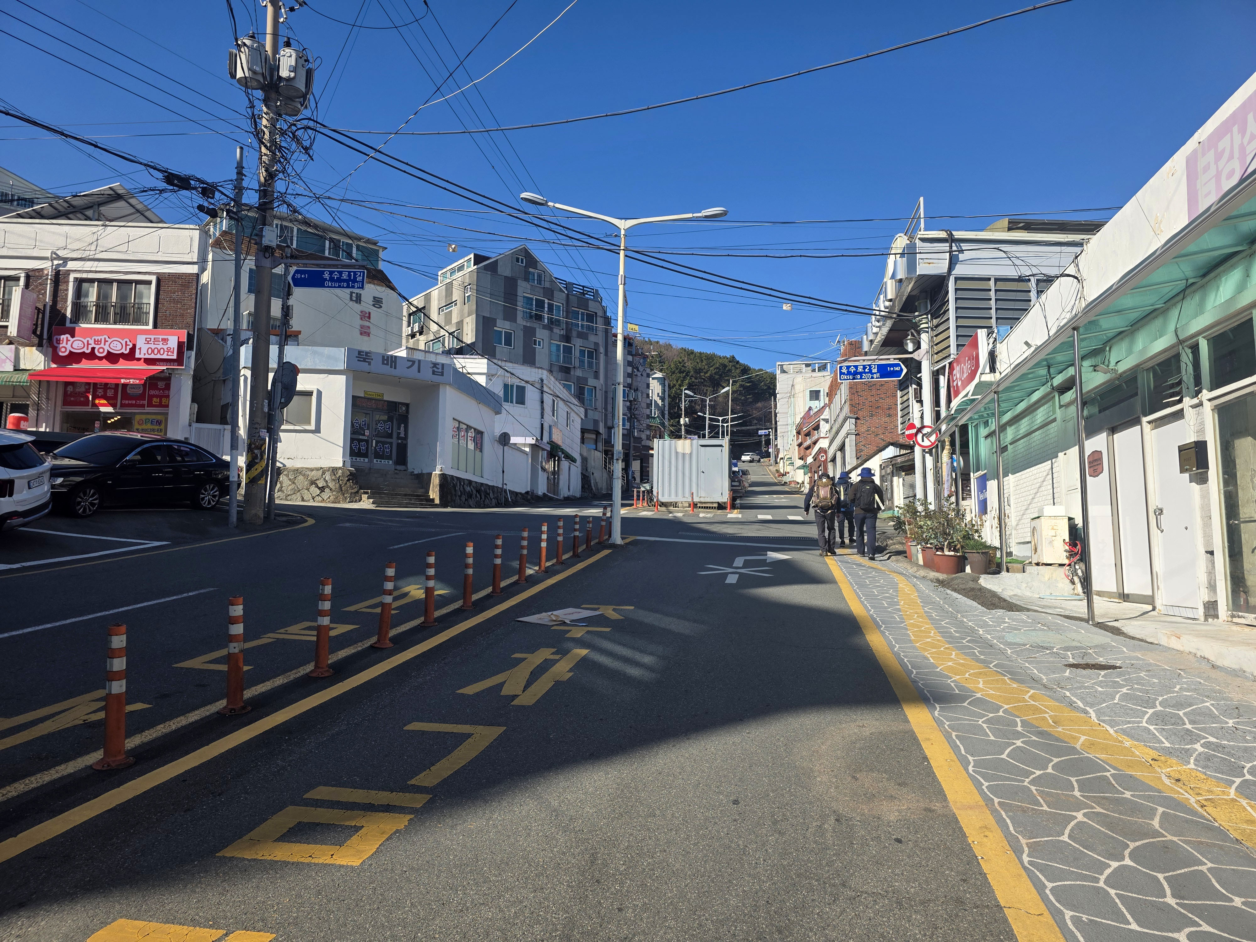 길은 옥화마을을 지나며 거제대학교 건물이 멀리 보이고, 다시금 해안 데크 길과 연결되고 있습니다.