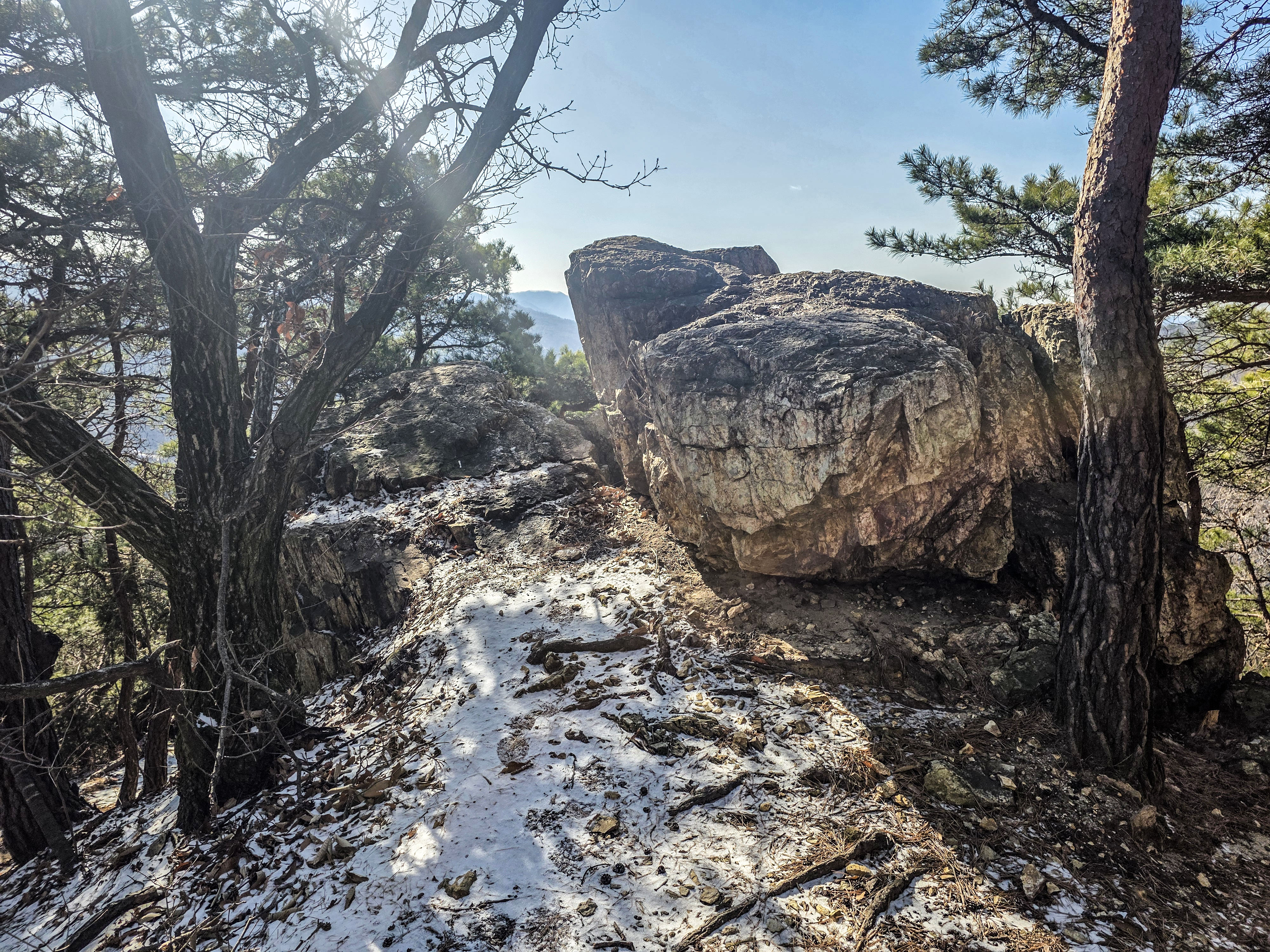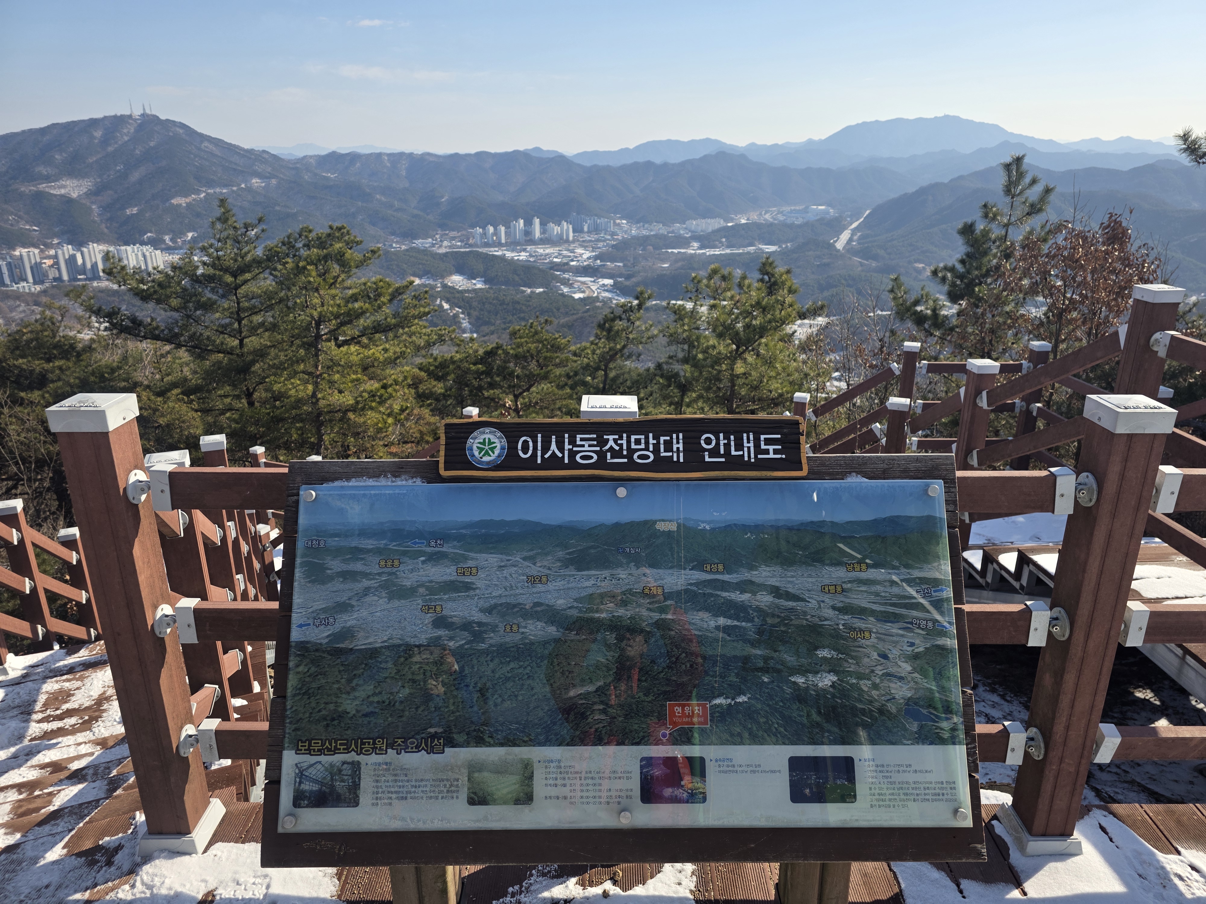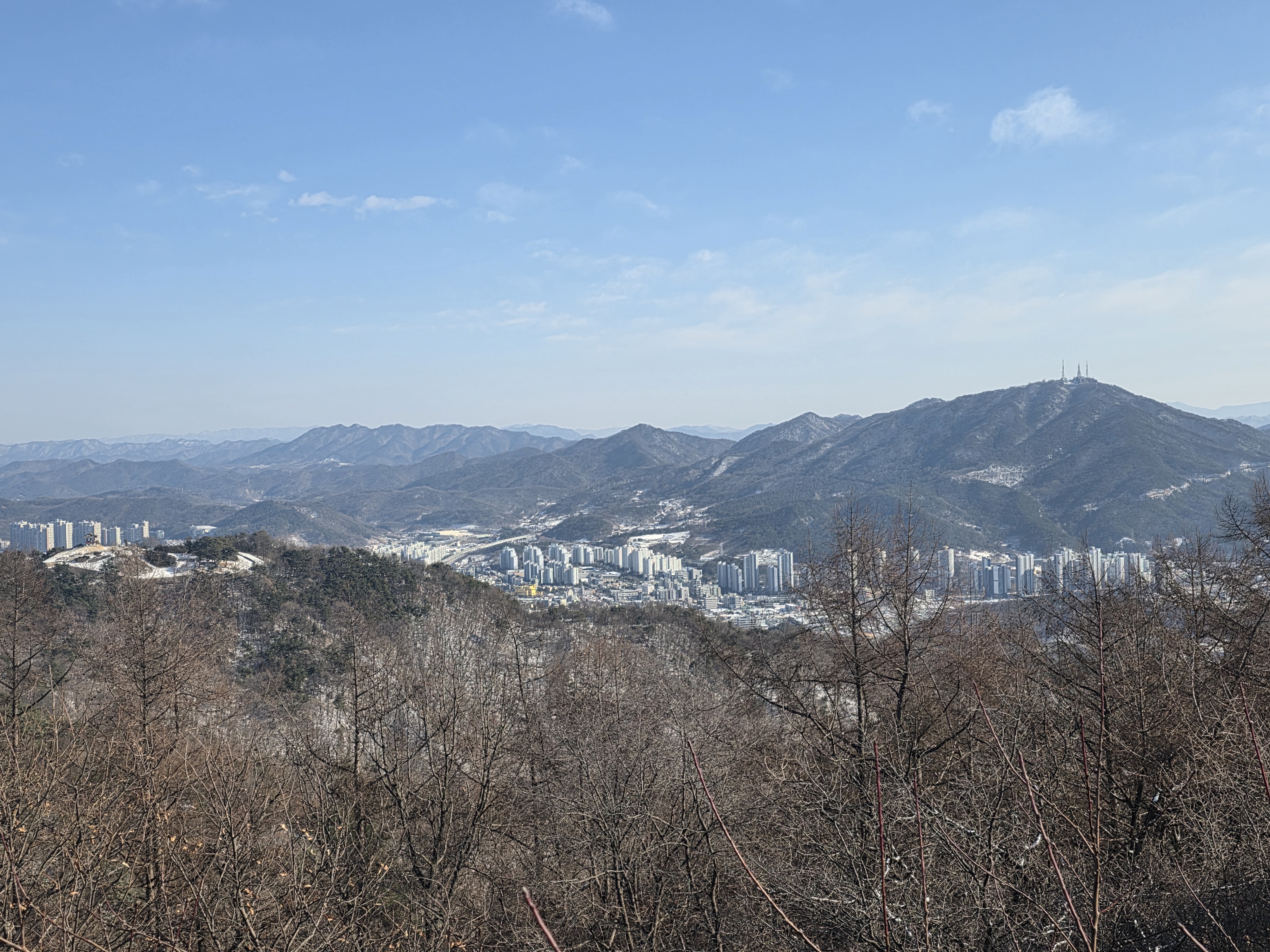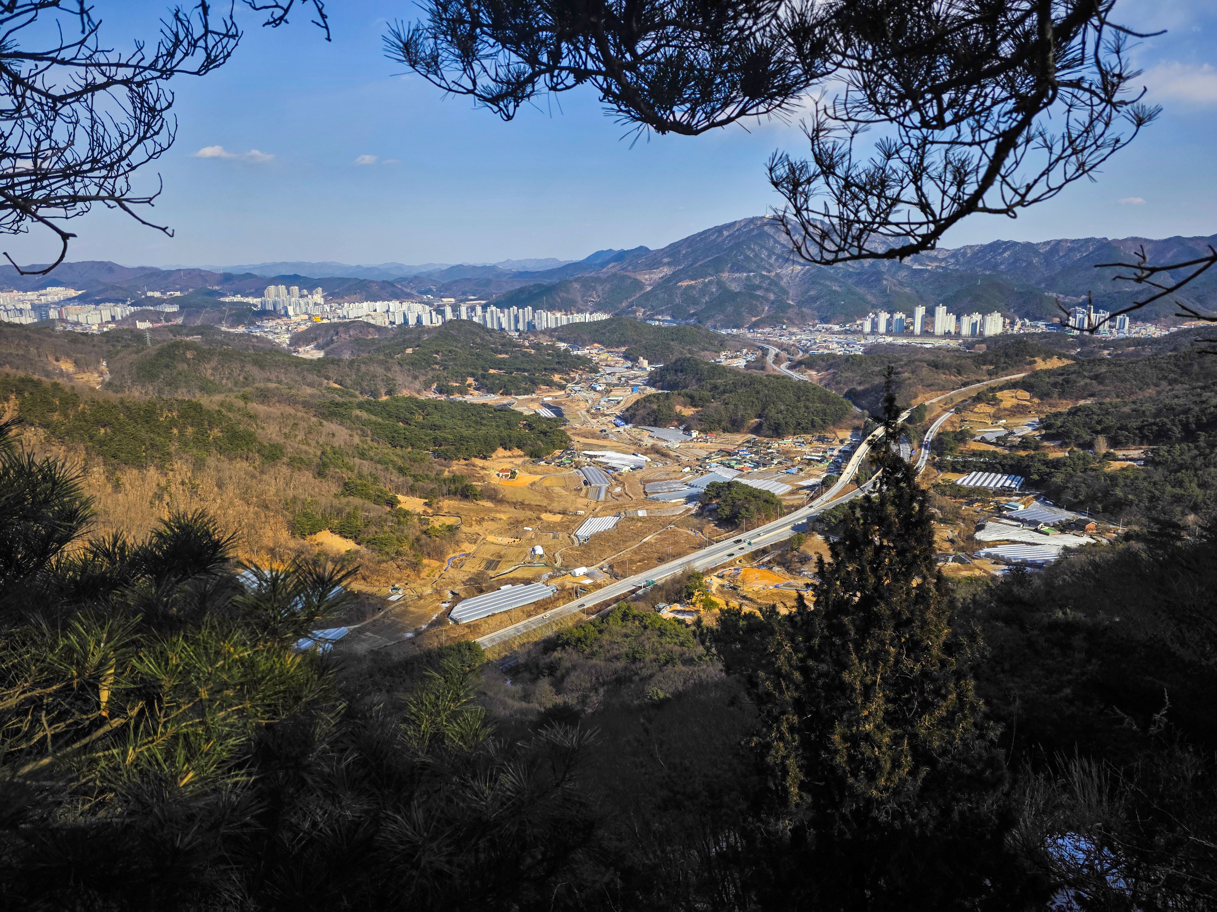 보문사지 갈림길과 이사동 전망대를 지난다, 좌측으로는 도심을 내려다보이고 우측으로는 산야로 덮여있는 도심속 산길이다