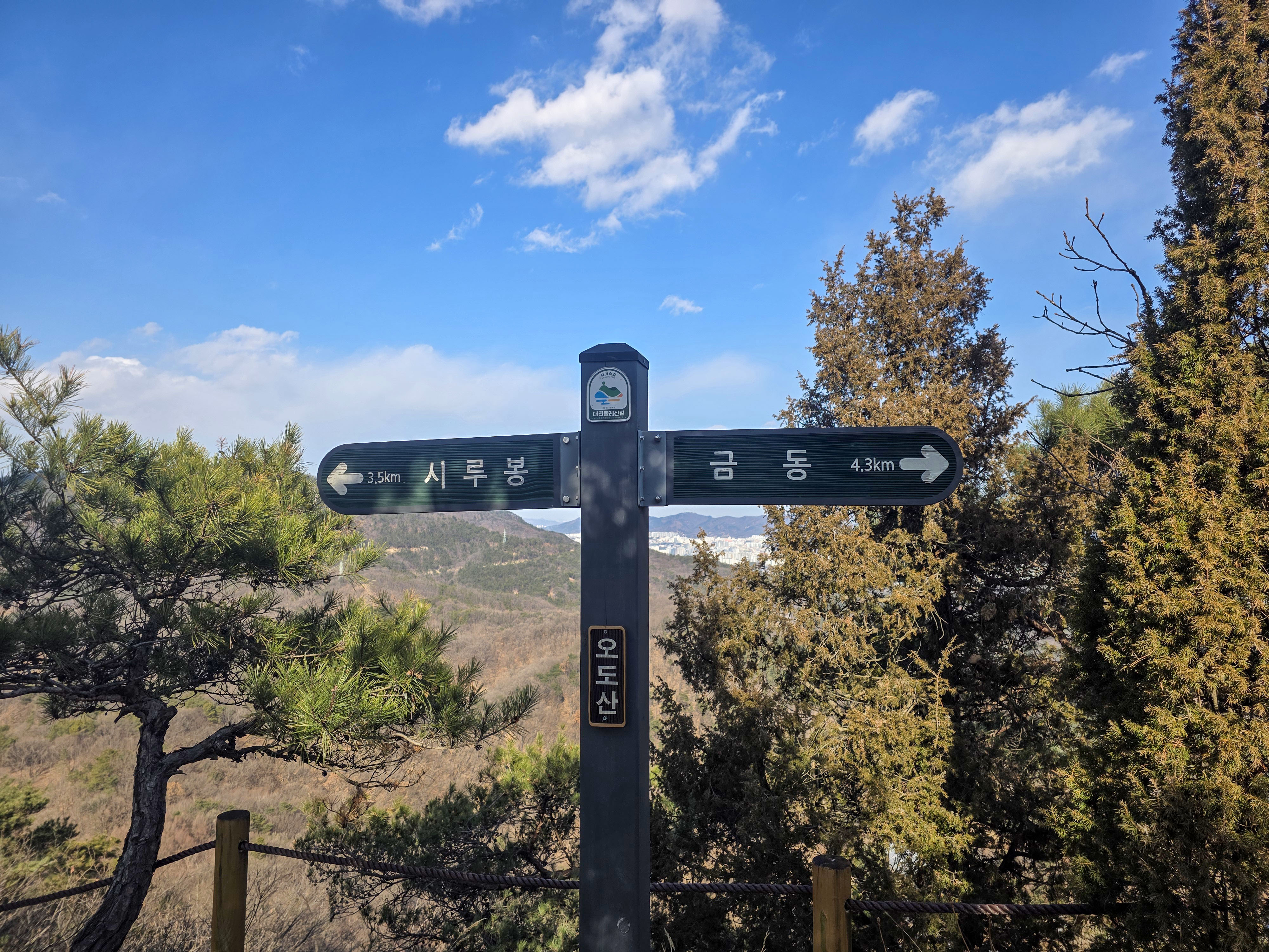 이정표마다 ‘금동고개’ 방향을 따라 느긋하게 걷다 보면, 하루의 여정을 마무리하는 종착지에 도착한다. 금동고개에 서면 긴 숲길이 주는 성취감과 함께, 대전둘레산길 대장정의 첫 장을 열었다는 뿌듯함이 밀려온다.
