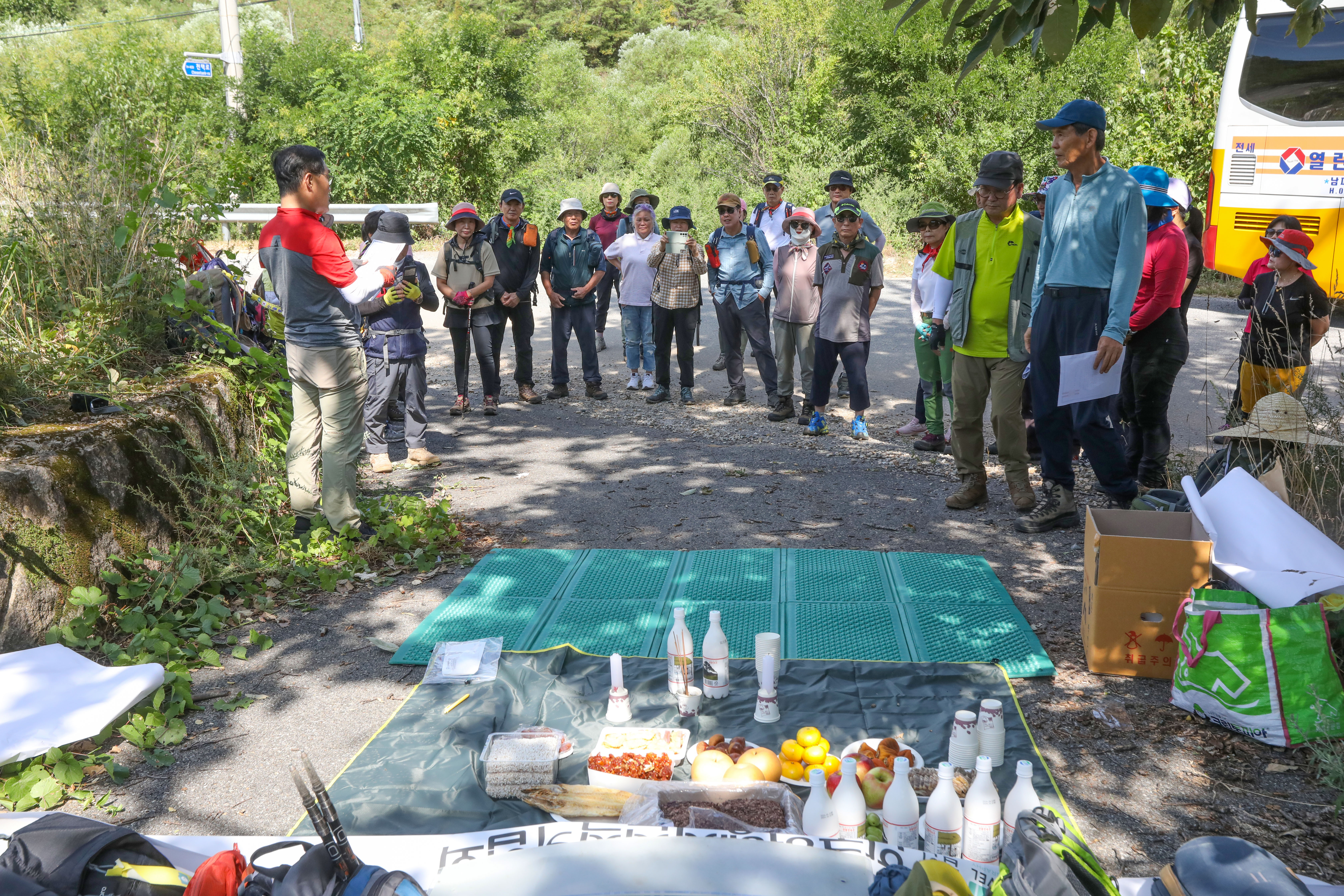 임곡리 마을 입구 고마마루 당산나무 아래에서 속리산 둘레길 출정제를 치른다.