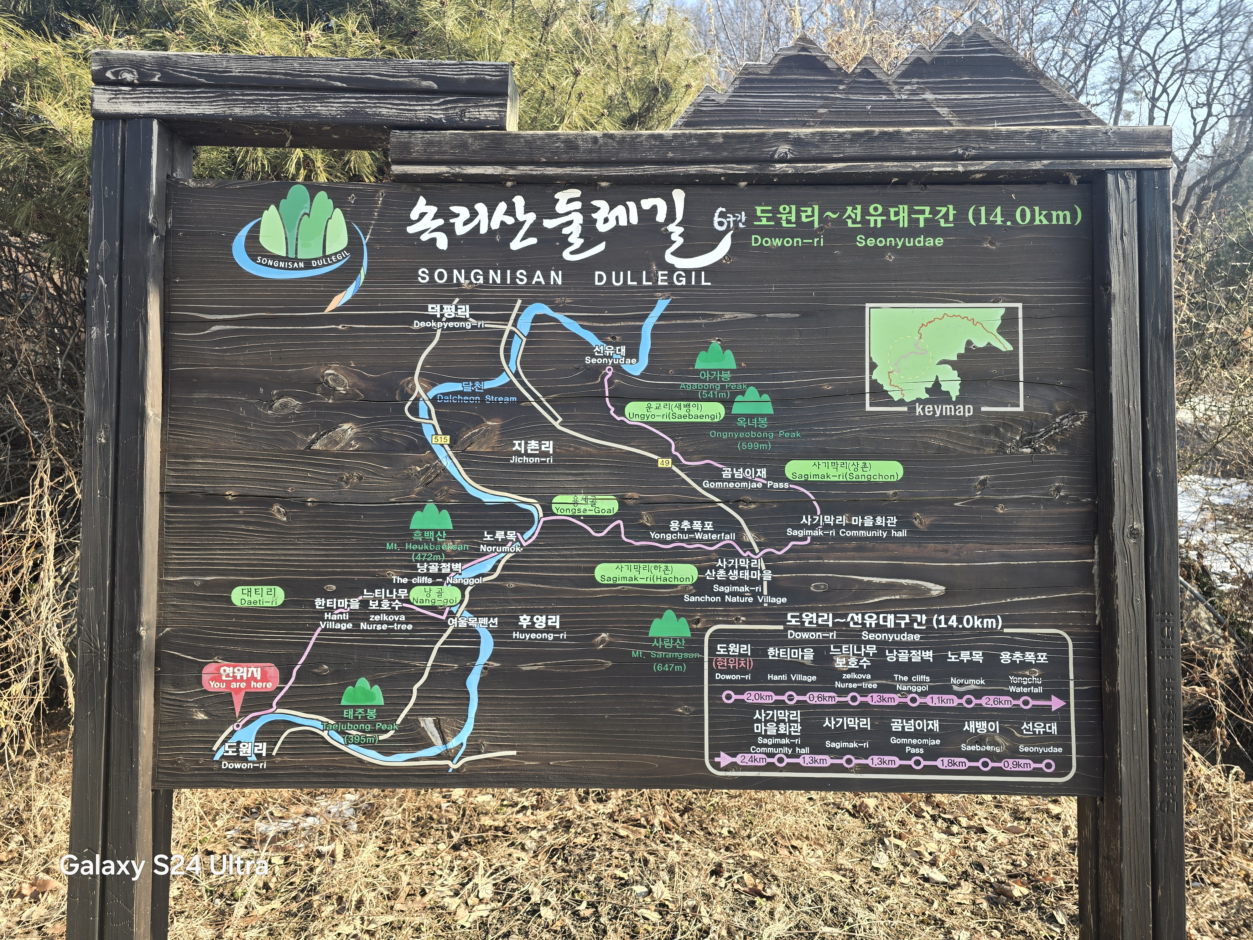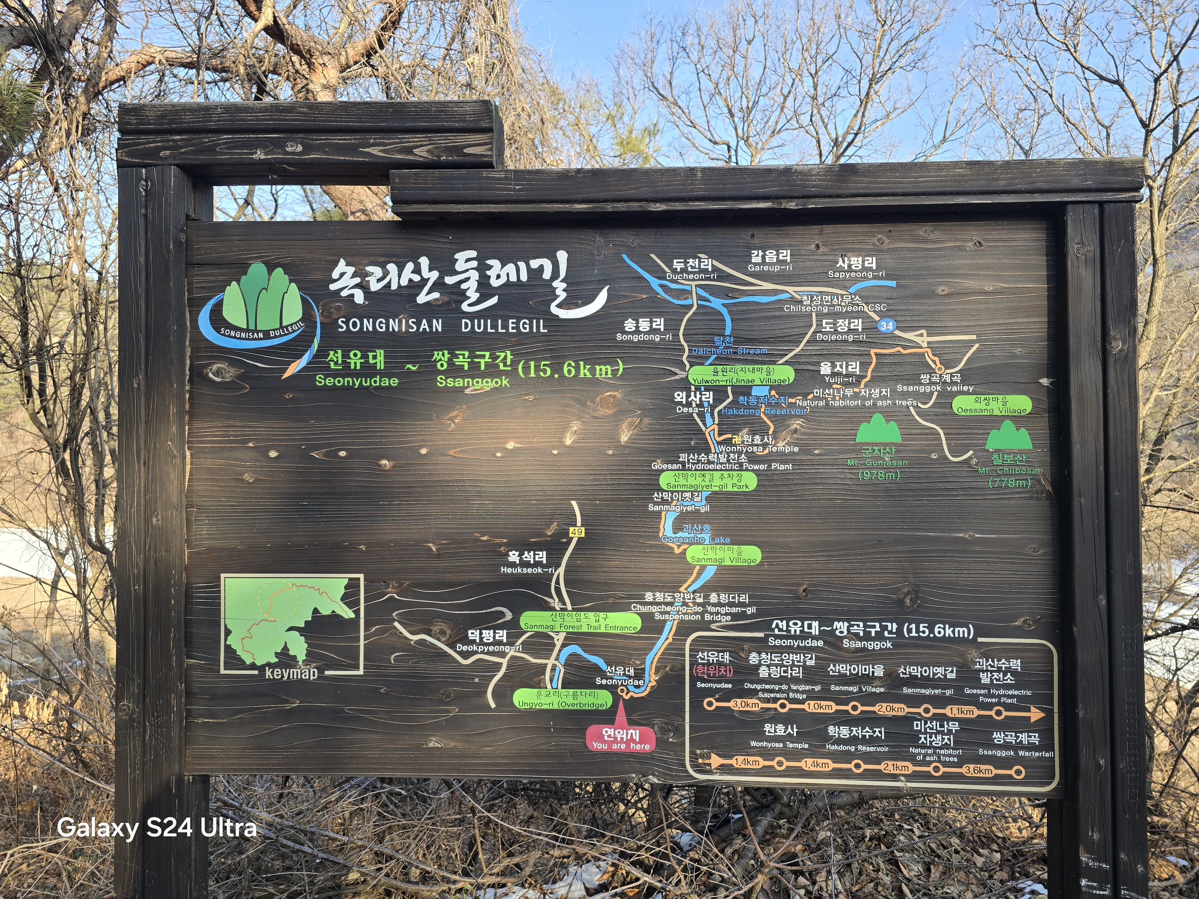둘레길 안내도에서 인증샷 남기고 한티마을을 향해 걸어간다.