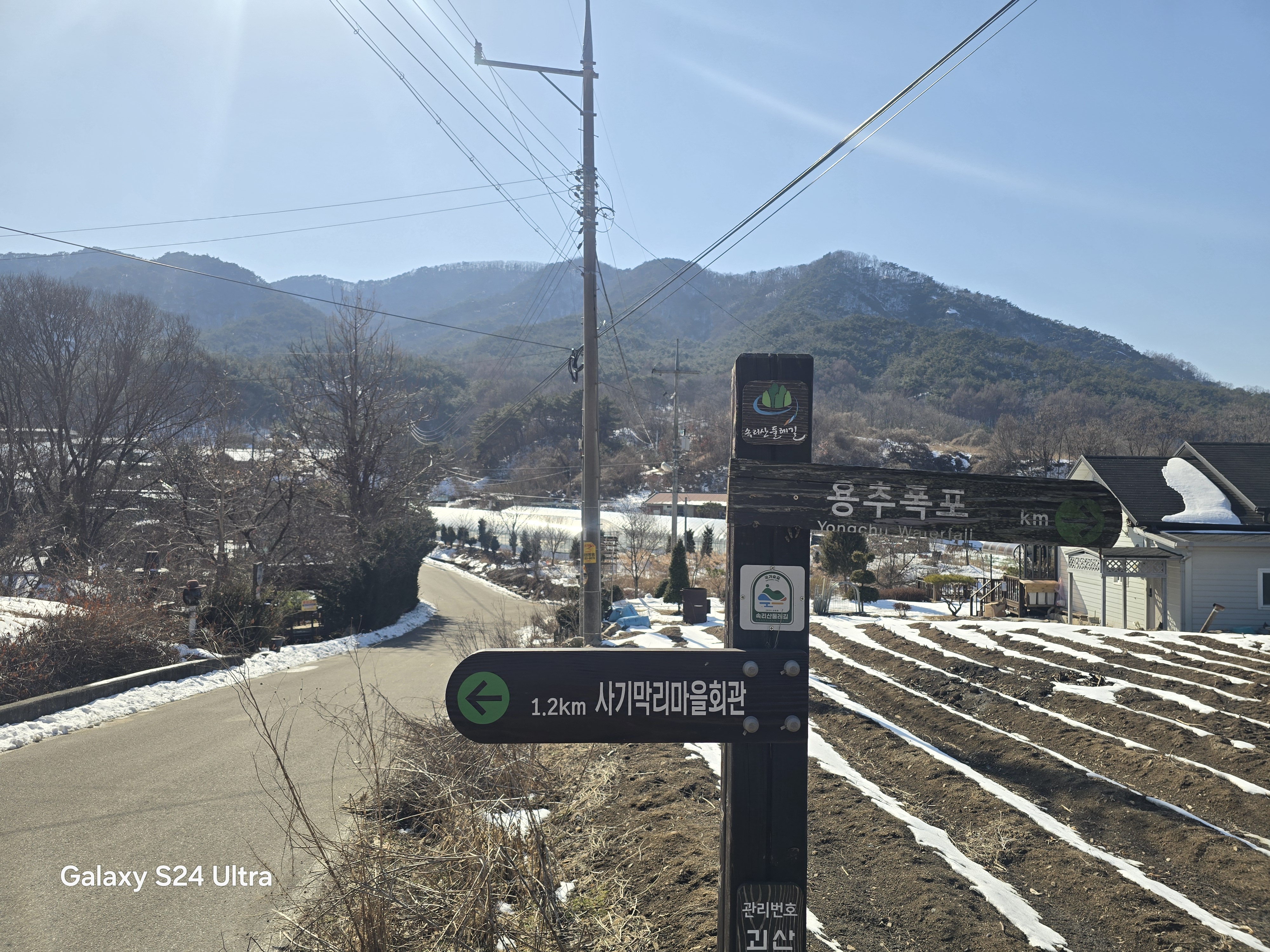 오른쪽으로 갈라지는 사기막리 마을길을 따라 걸어간다.