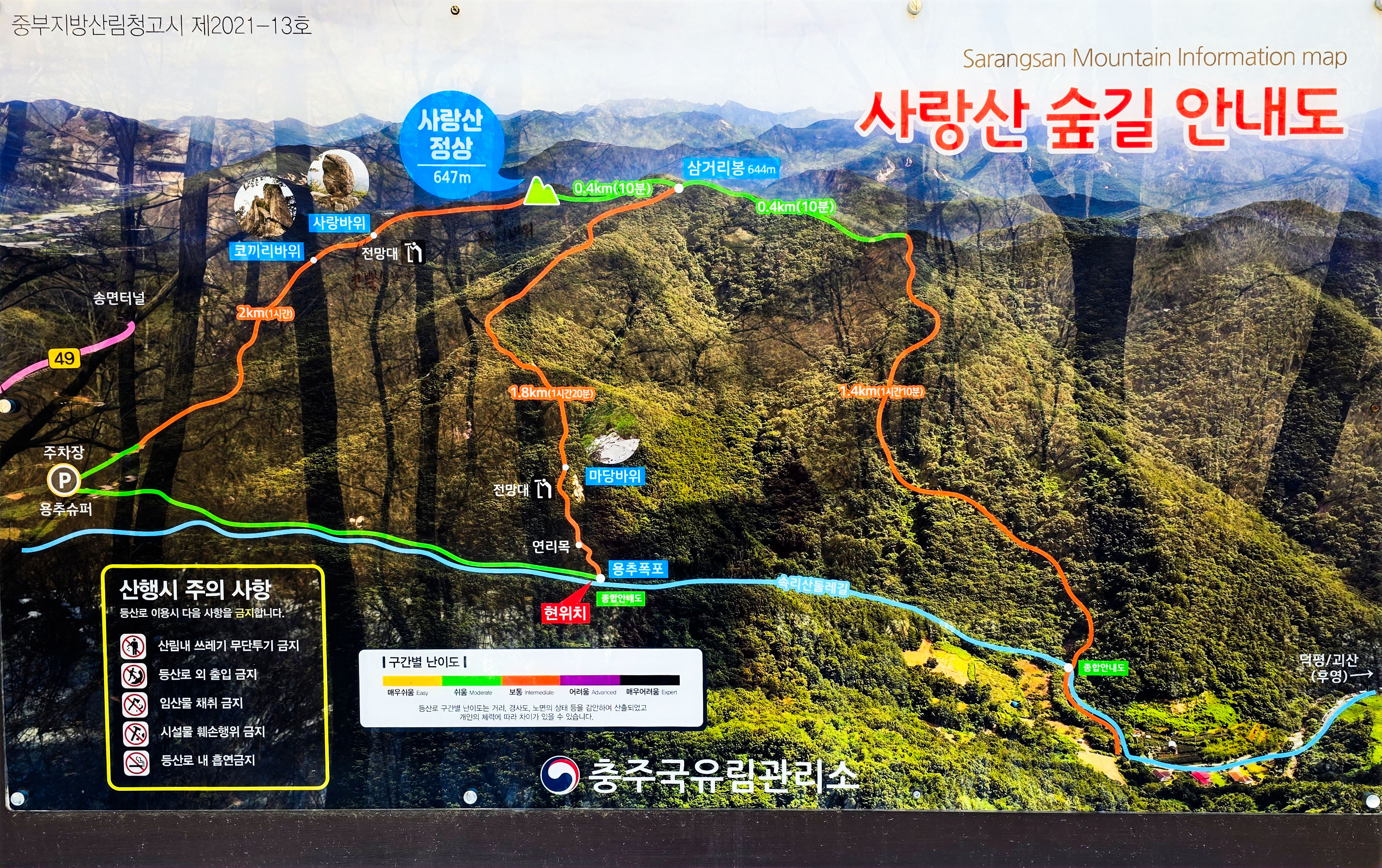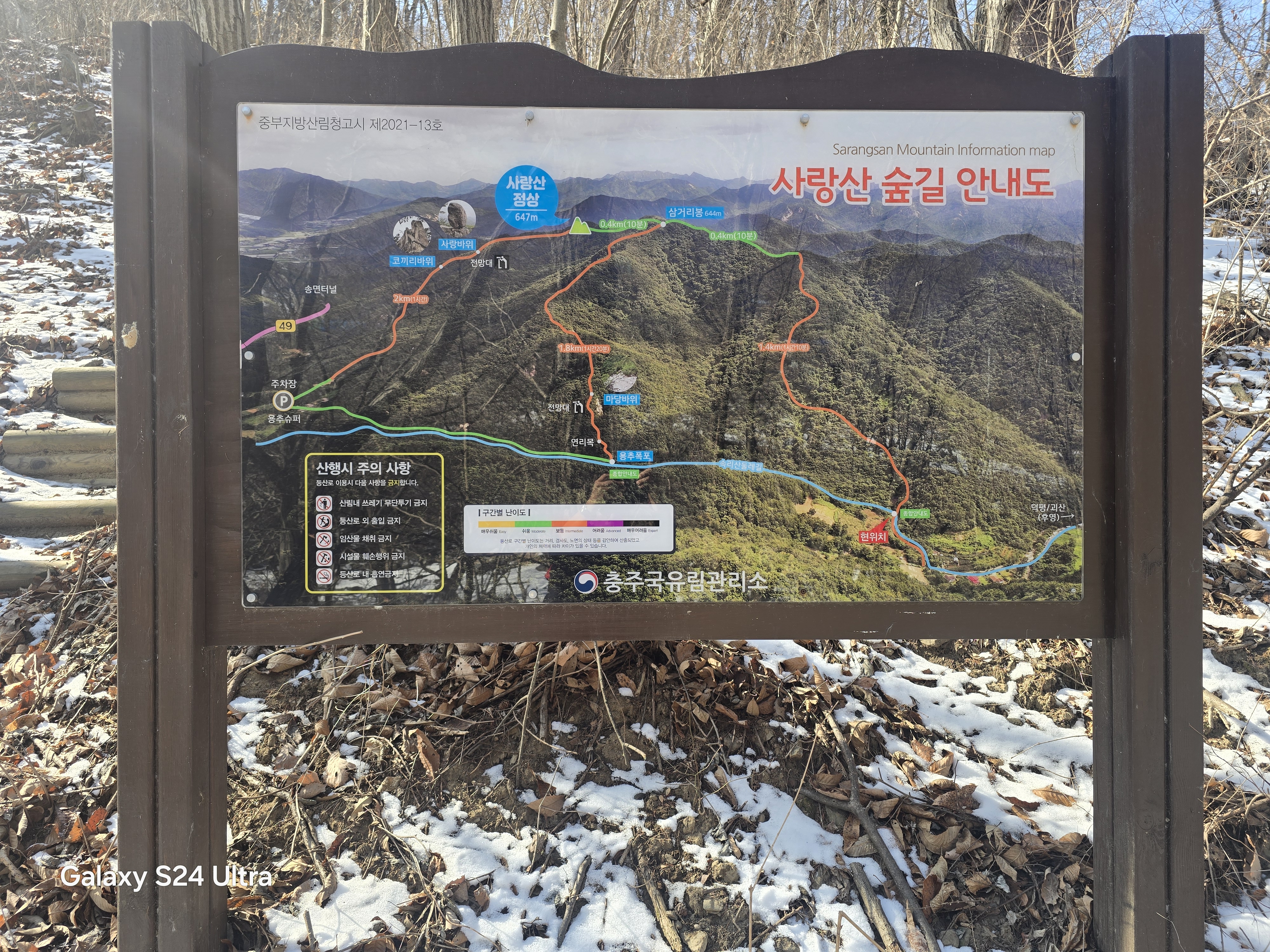 기상재해로 인해 숲길을 통제라는 안내판이 있었다.