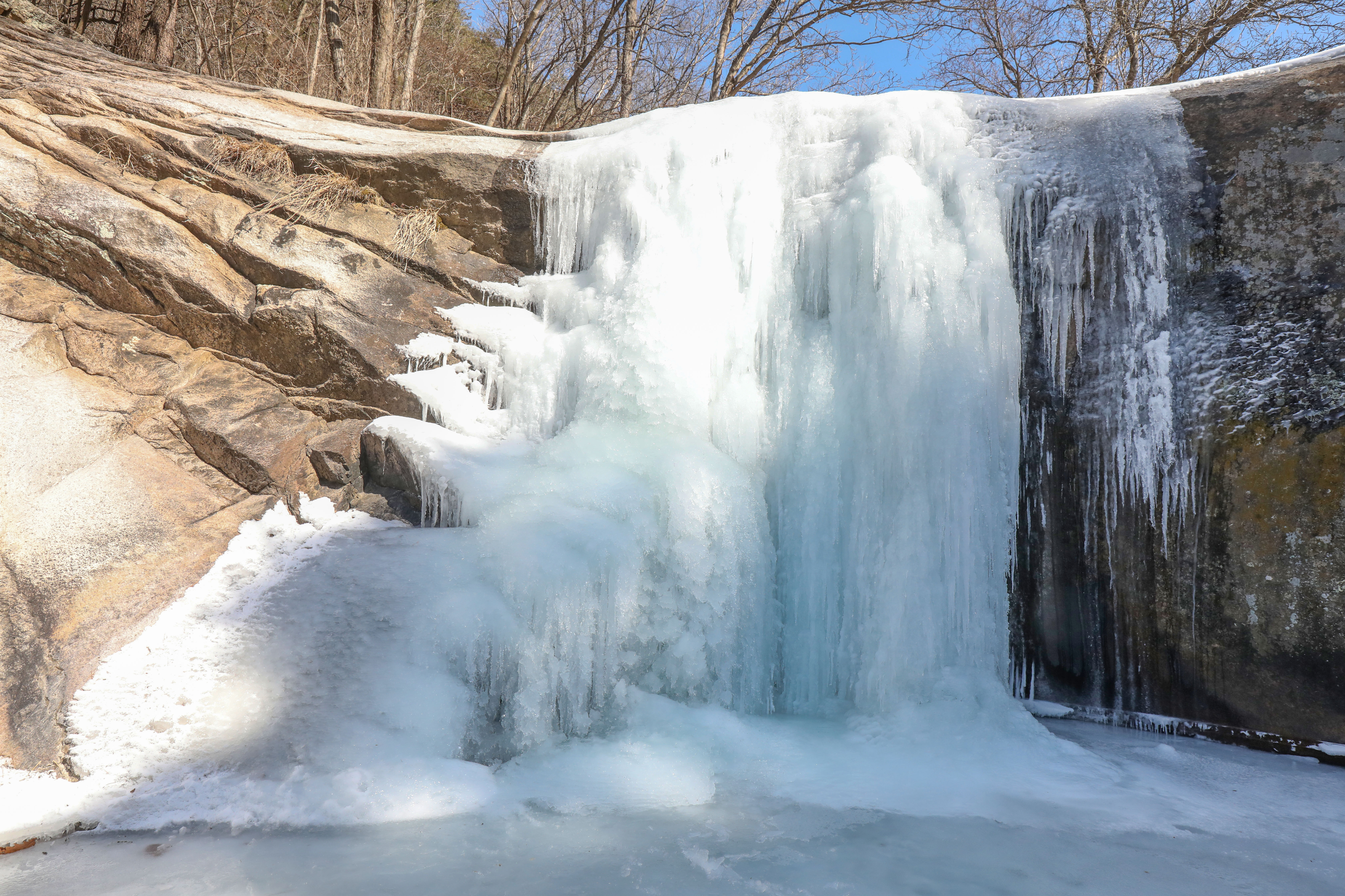 가까이 다가서니 겨울의 두꺼운 얼음 옷 아래로 봄을 알리는 맑은 물이 힘차게 흐르고 있었다.