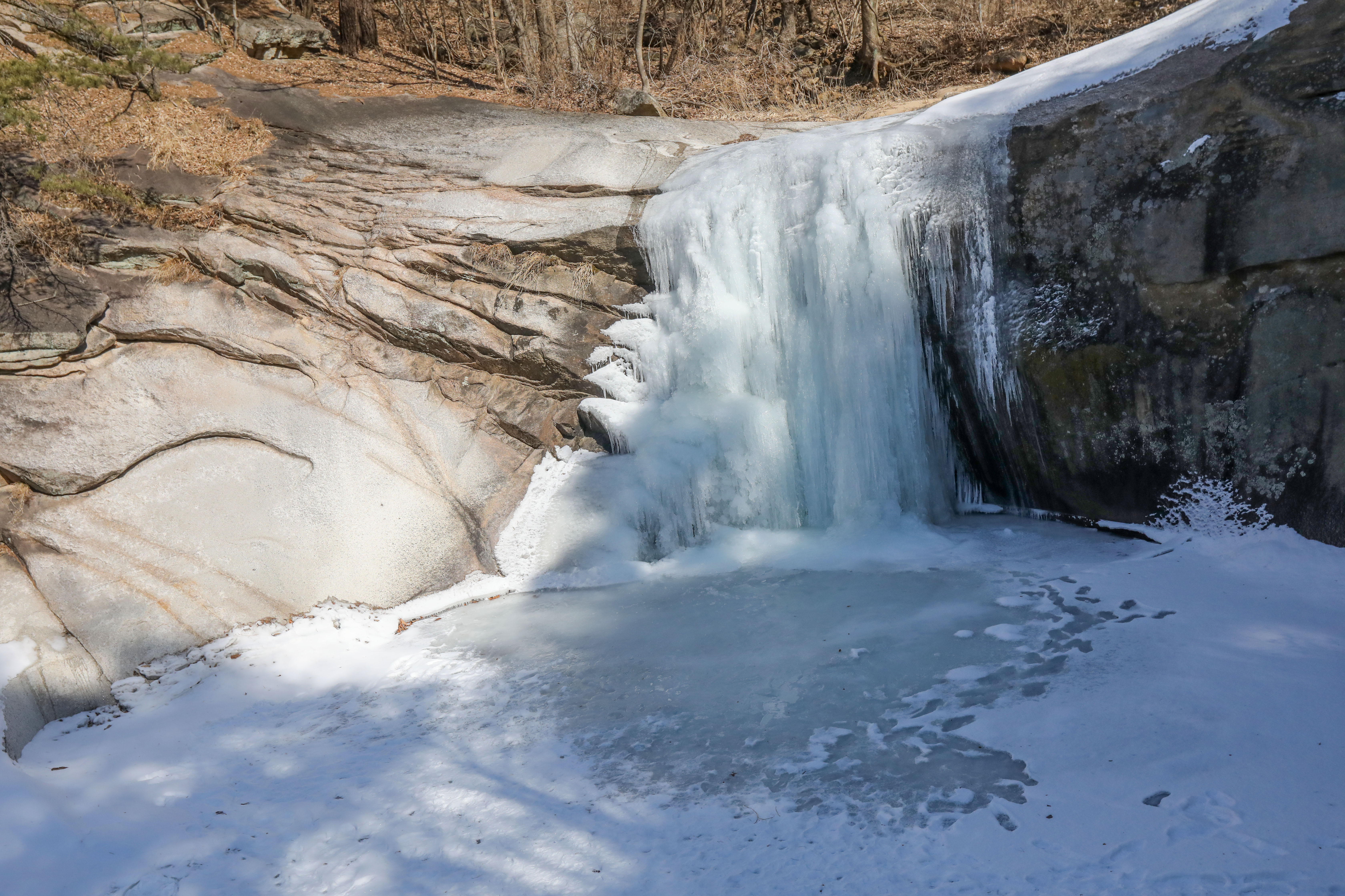 용추폭포는 우렁차게 쏟아지는 물소리는 깊은 숲 속에서 겨울잠을 자듯 고요해 보였다.
