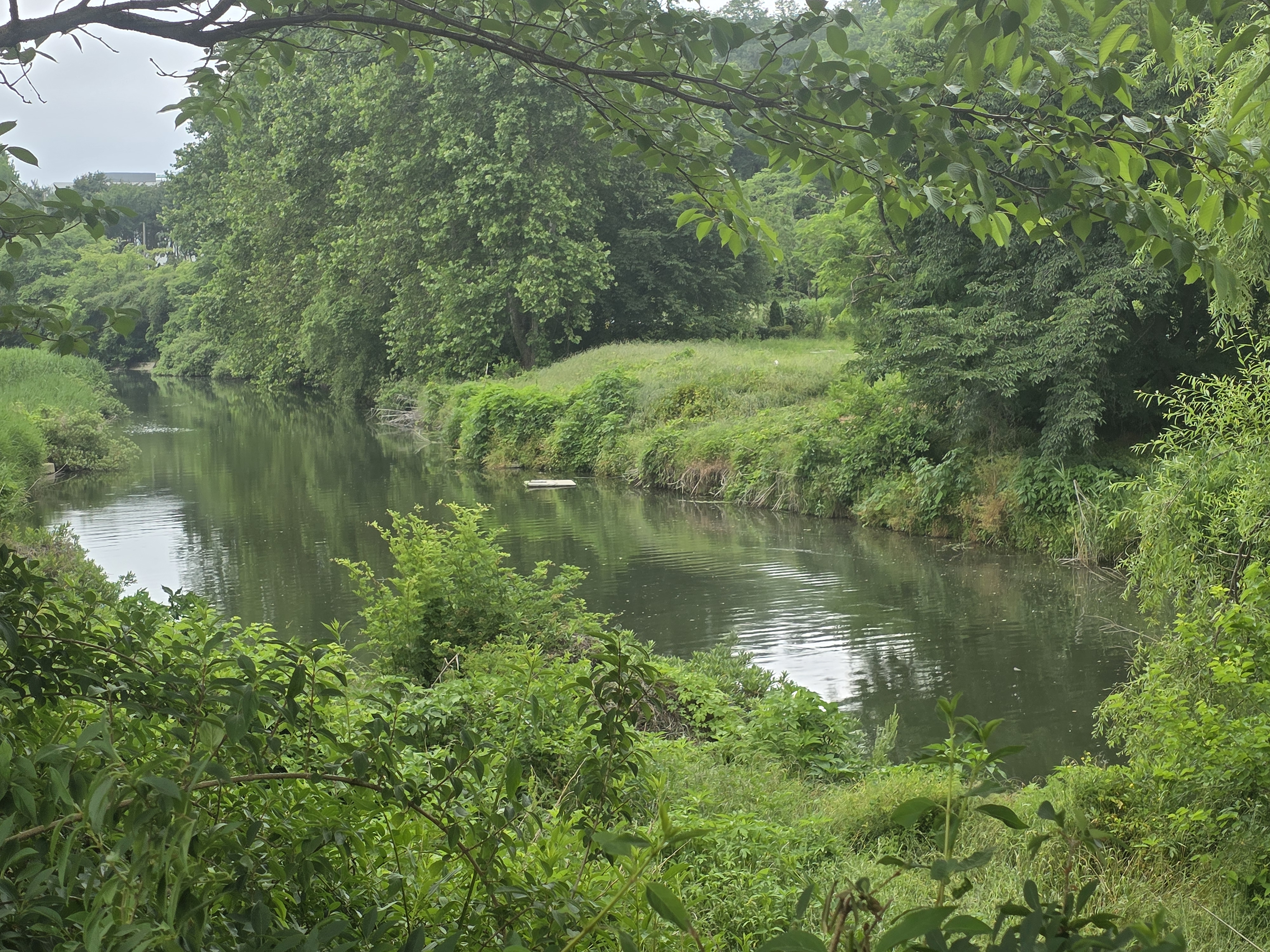 이곳부터는 둑방길로 올라서며, 깊은 숲속에 온 듯한 고즈넉한 적막감이 감돕니다.