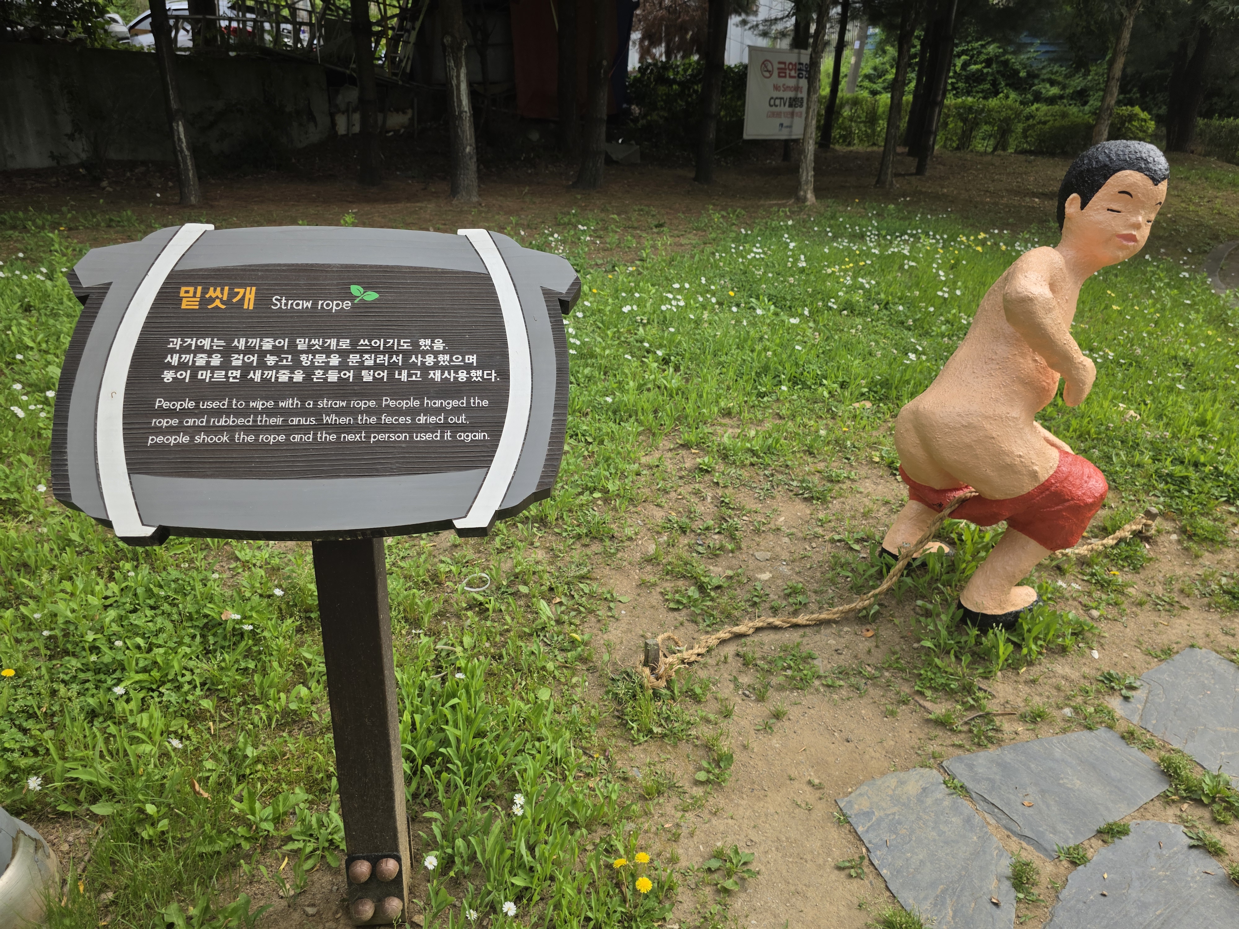 1층 전시관에서는 1950년대부터 이어진 화장실의 역사와 문화적 의미를 만날 수 있고, 야외에는 옛 변소와 돼지 똥화장실 같은 독특한 조형물들이 눈길을 끕니다.