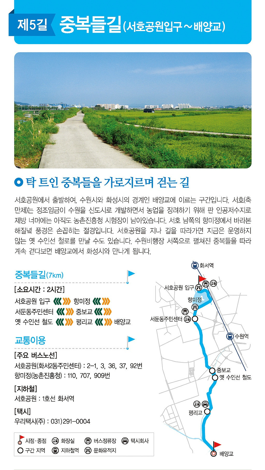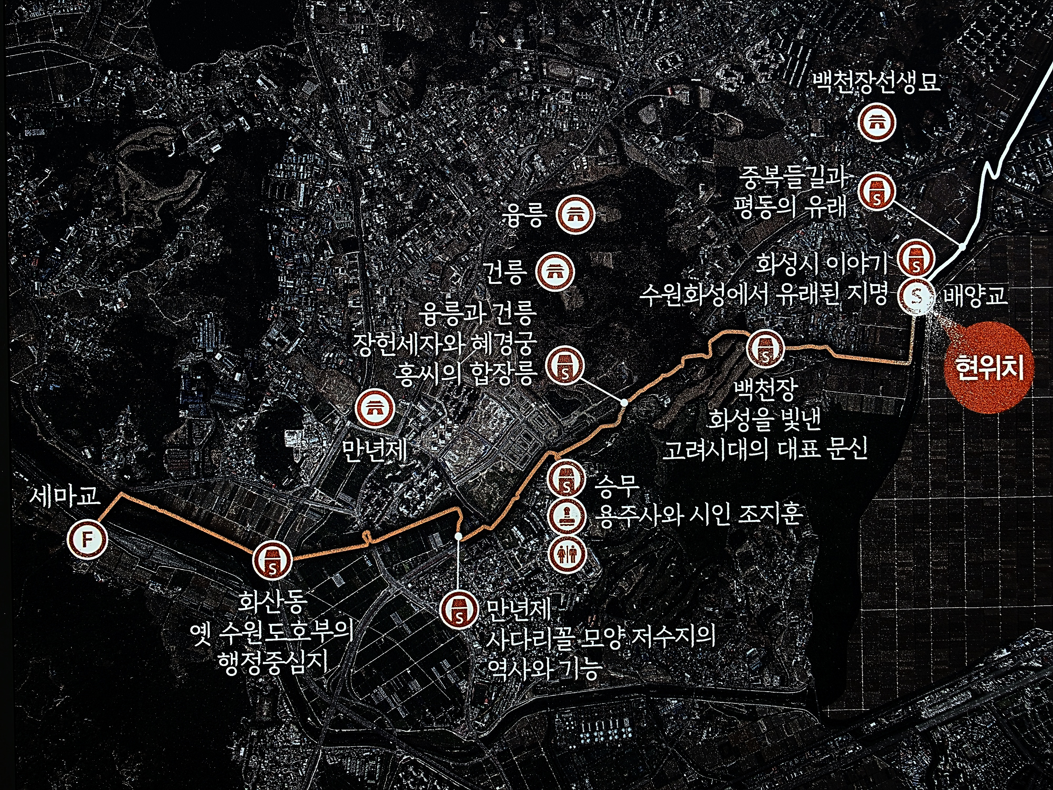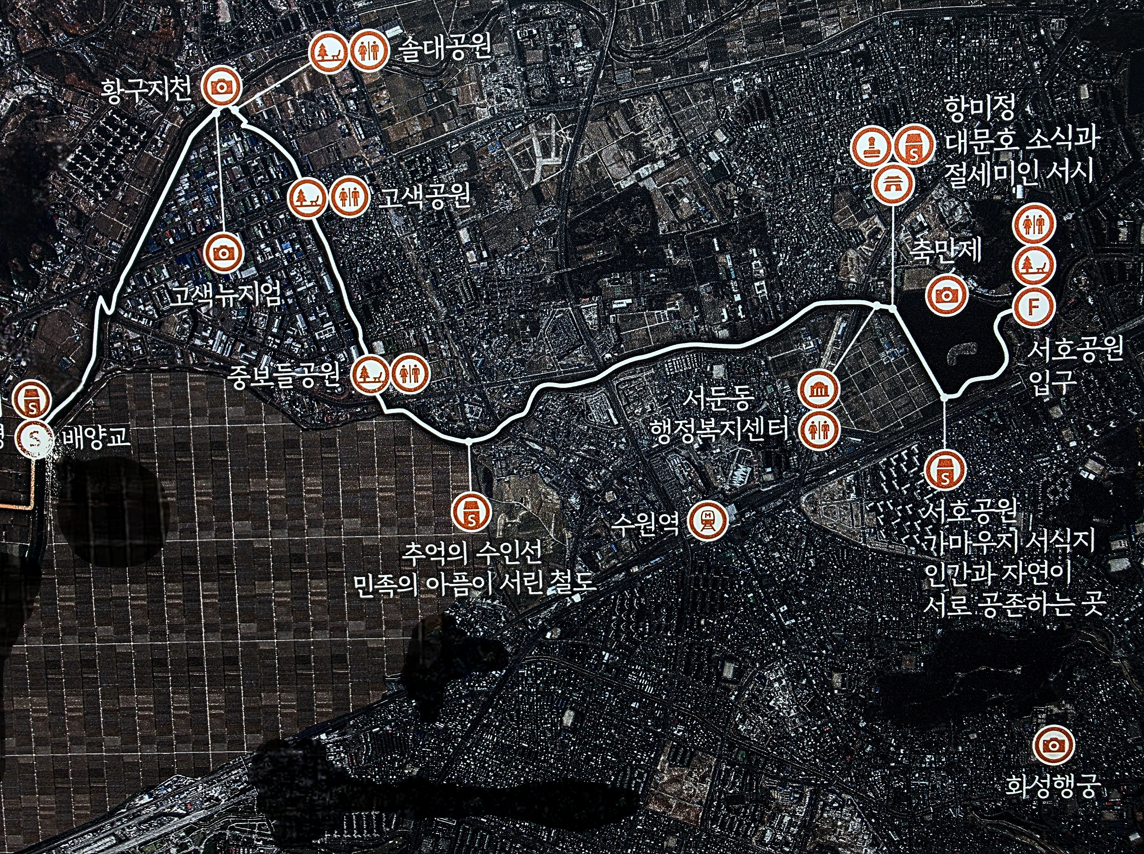 서호공원에서 배양교에 이르는 약 9.1km 구간, 약 3시간의 여정은 짧지 않았지만, 그 길 위에는 수원의 옛 흔적과 도심의 들녘, 정조의 숨결, 그리고 사라진 철로의 정취가 고스란히 담겨 있었다.