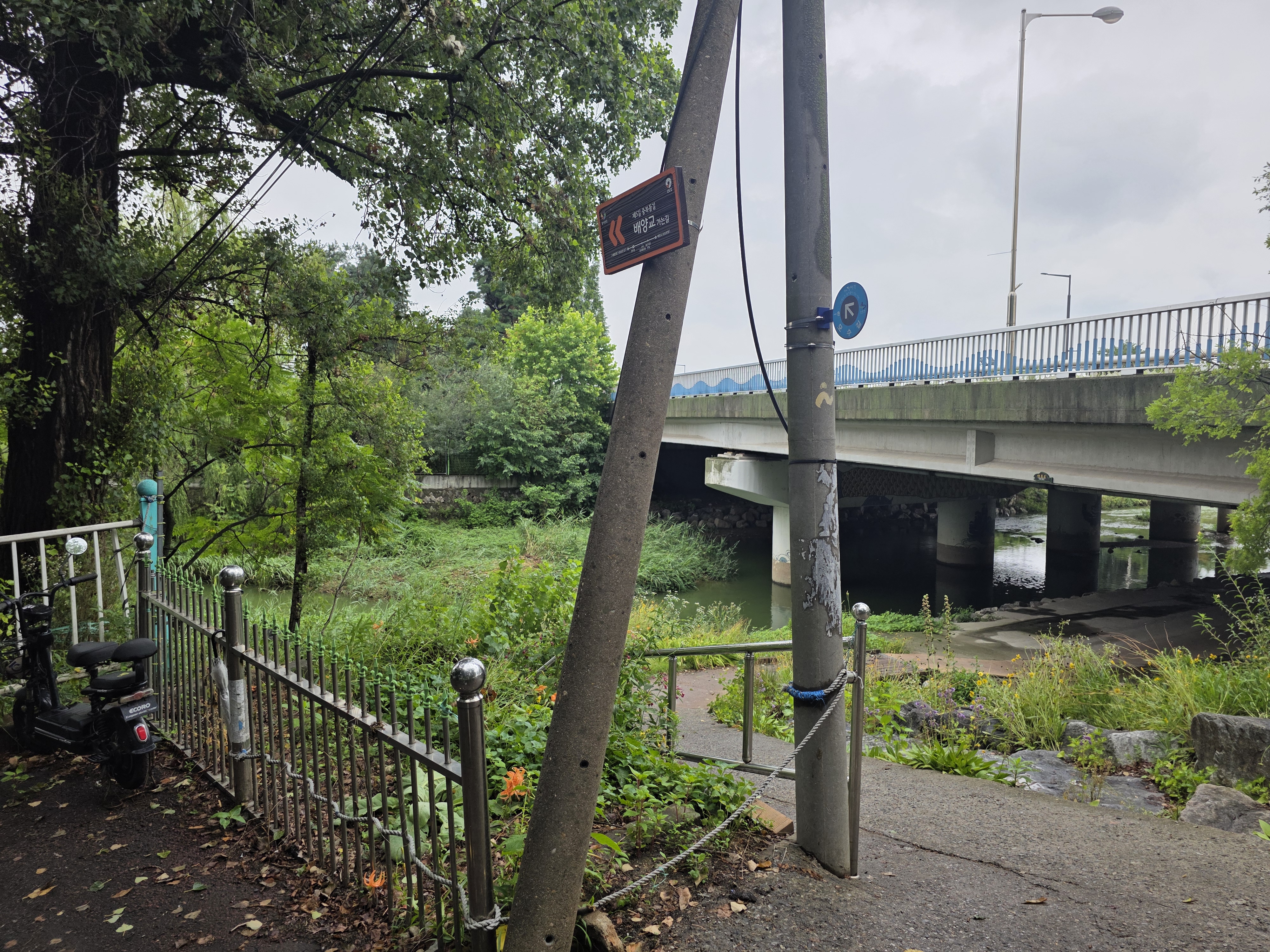 고색중보들공원을 지나 잘 정돋된 대로변 숲길을 따라 배대교에 도착한다.