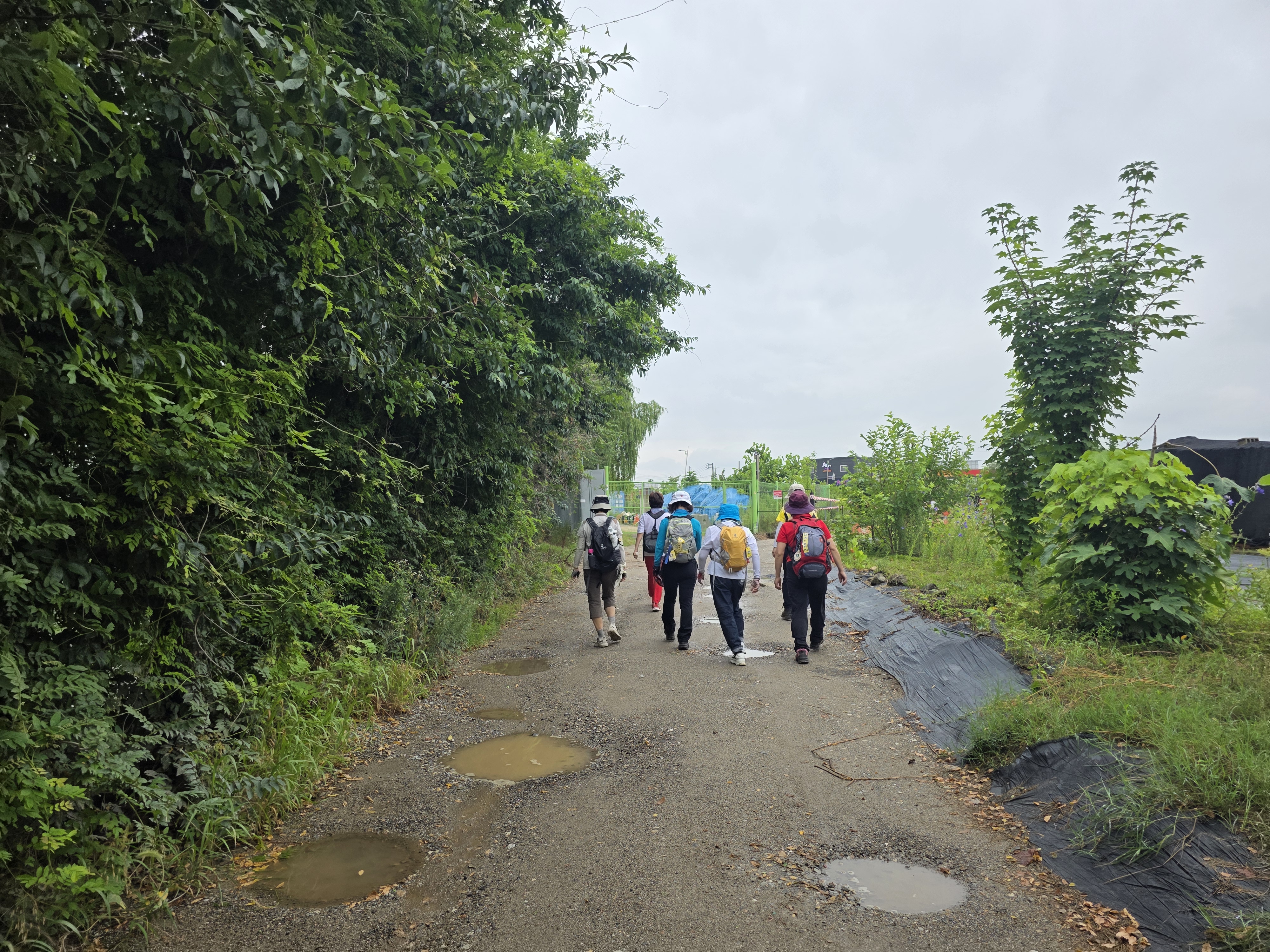 산들투어 삼남길 투어단은 굵은 땀방울을 닦으며 **삼남길 제5길 ‘중복들길’**을 걸었다.