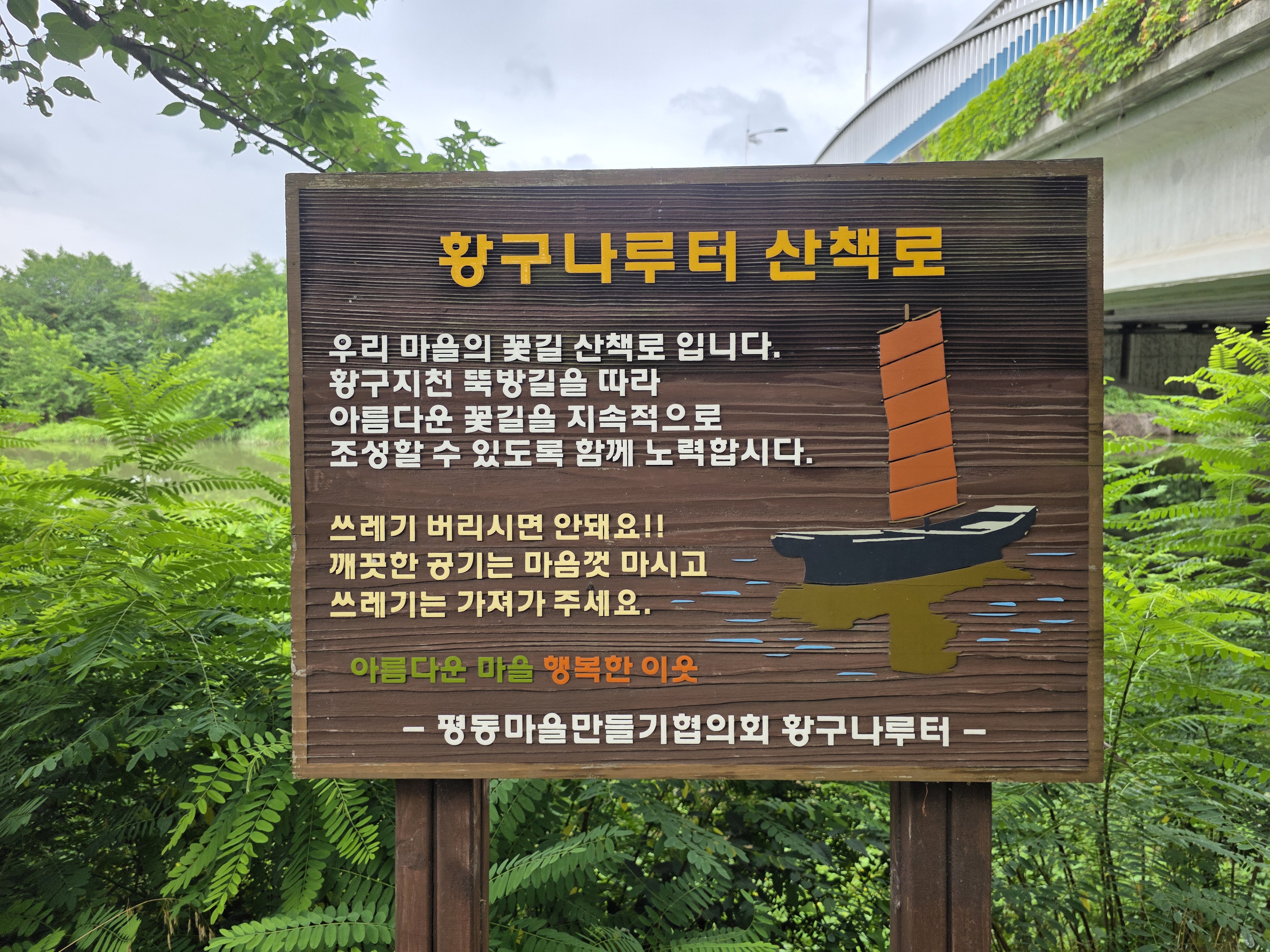 항구지천으로 들어서 항구나루터 산책로를 따라 배양교 방면으로 전진한다.