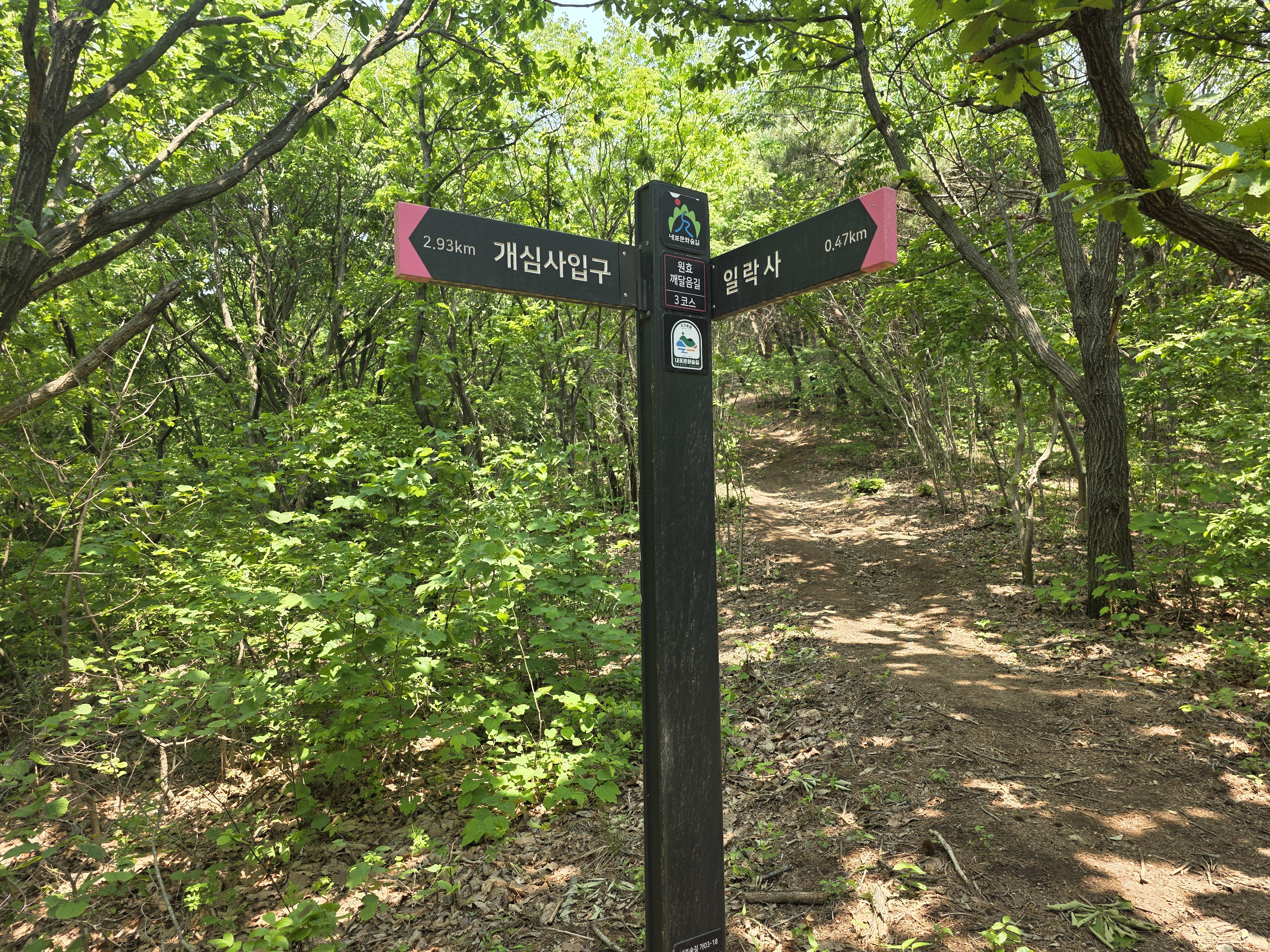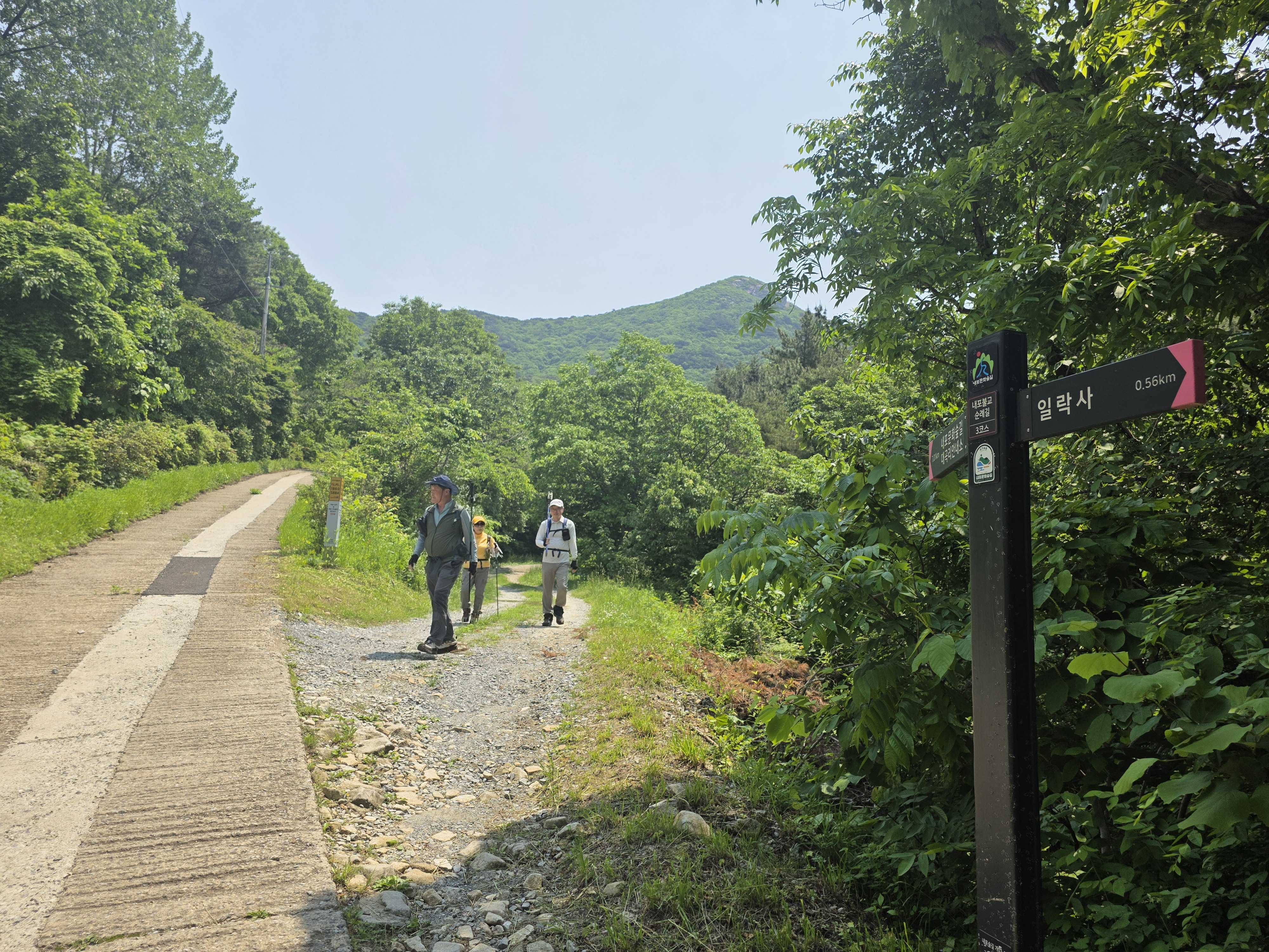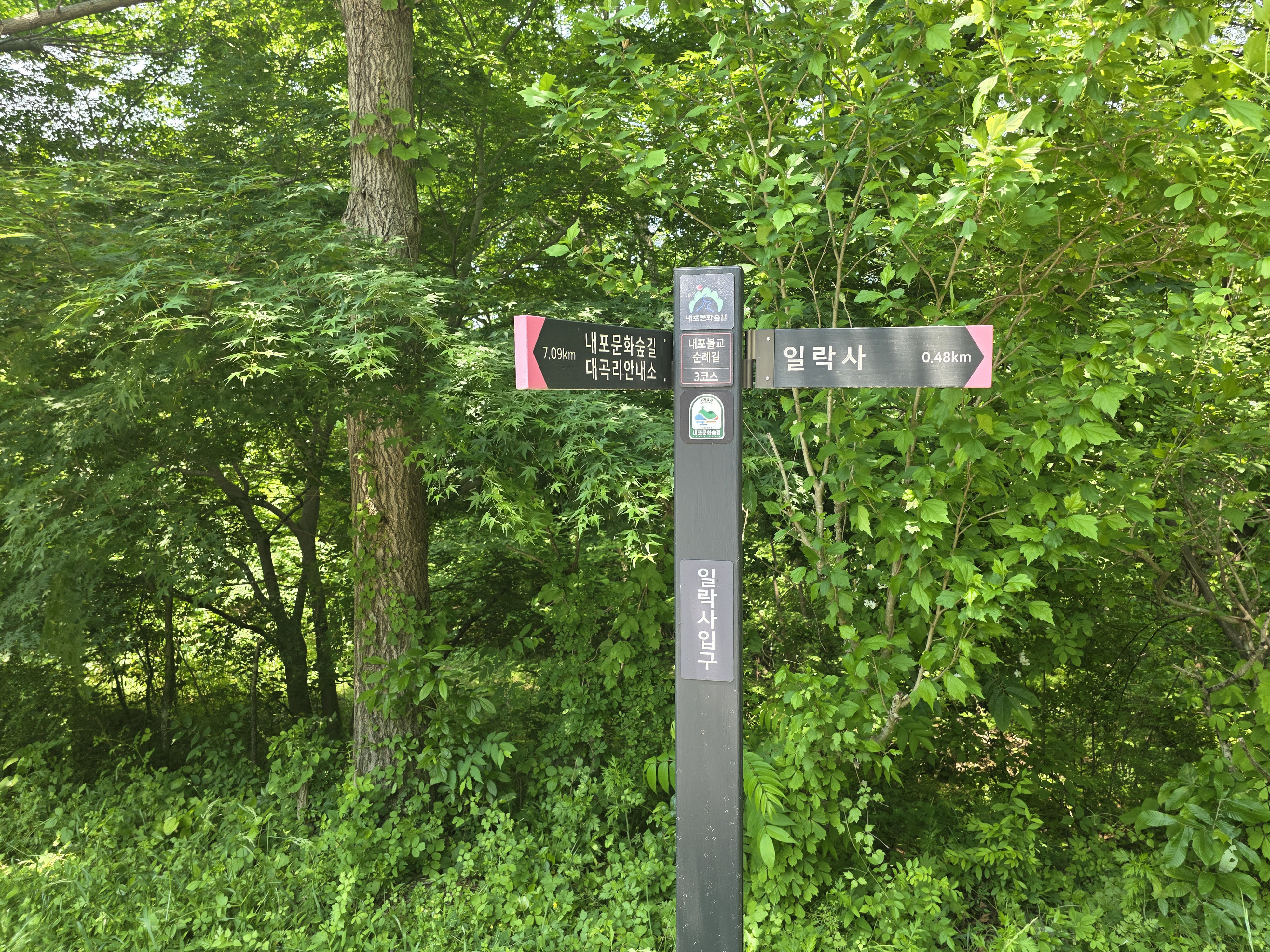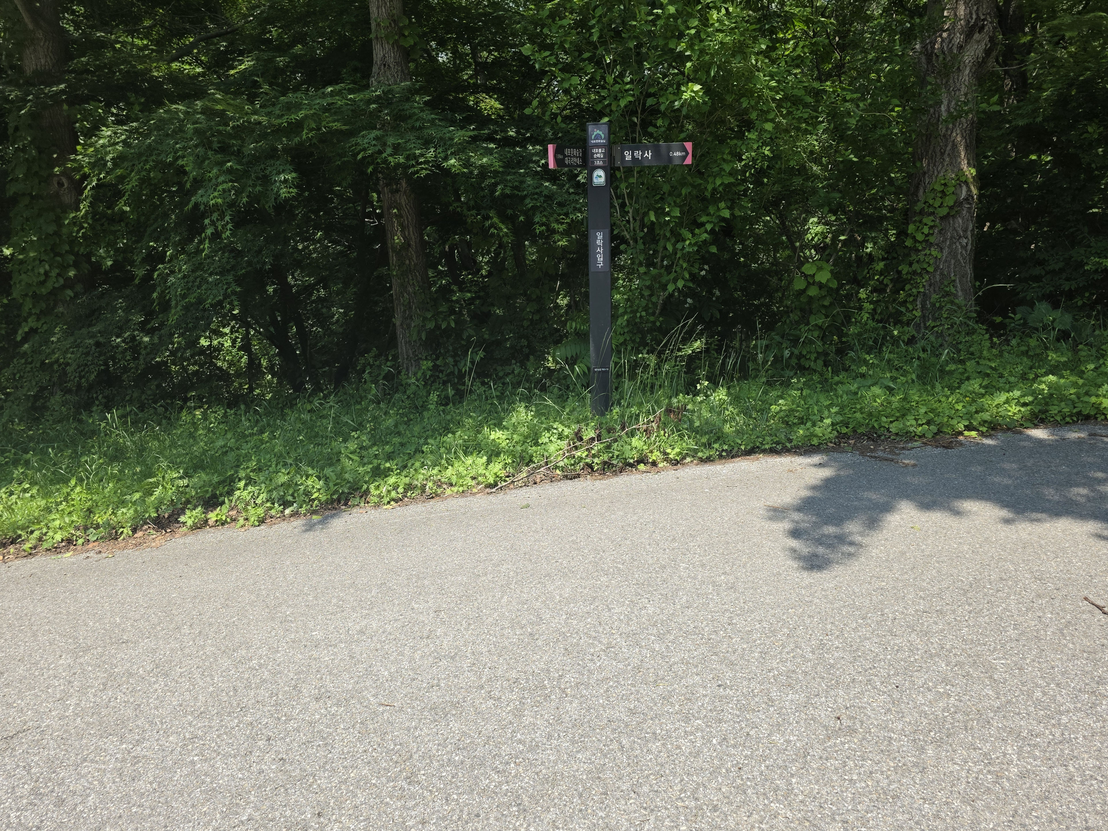 공사구간 이정표를 지나 숲길을 따라 내려서면 일락사에 닿는다.