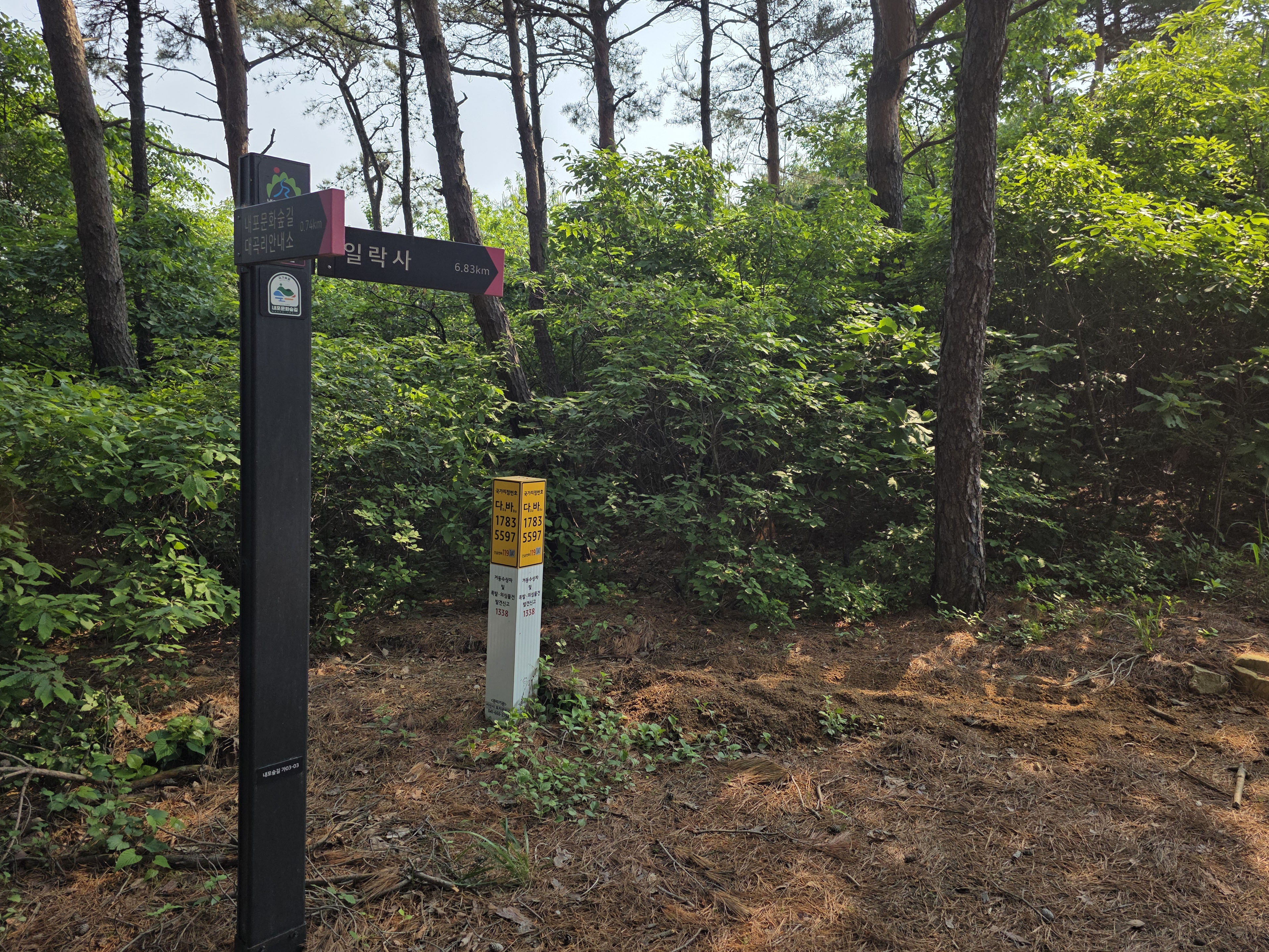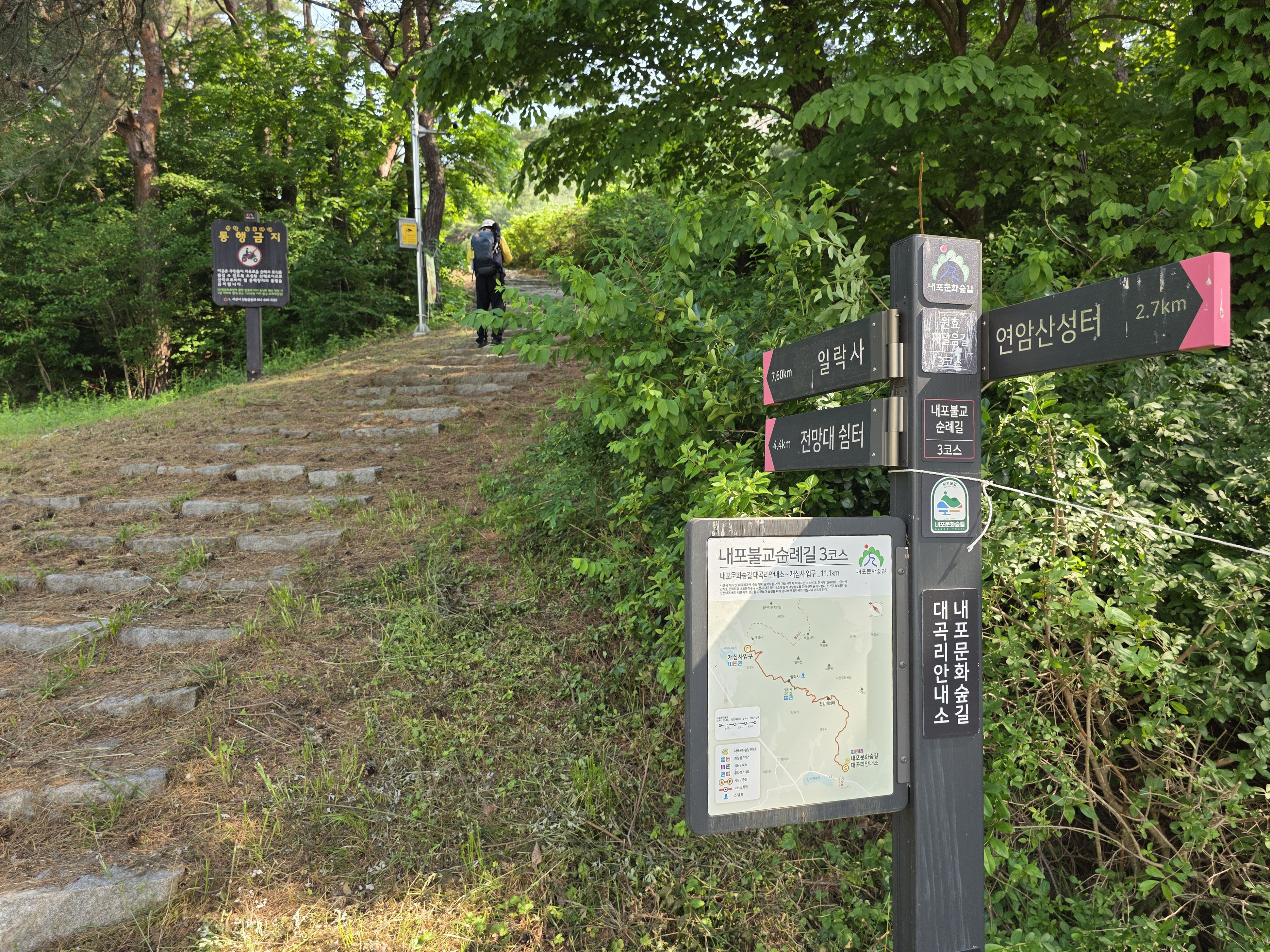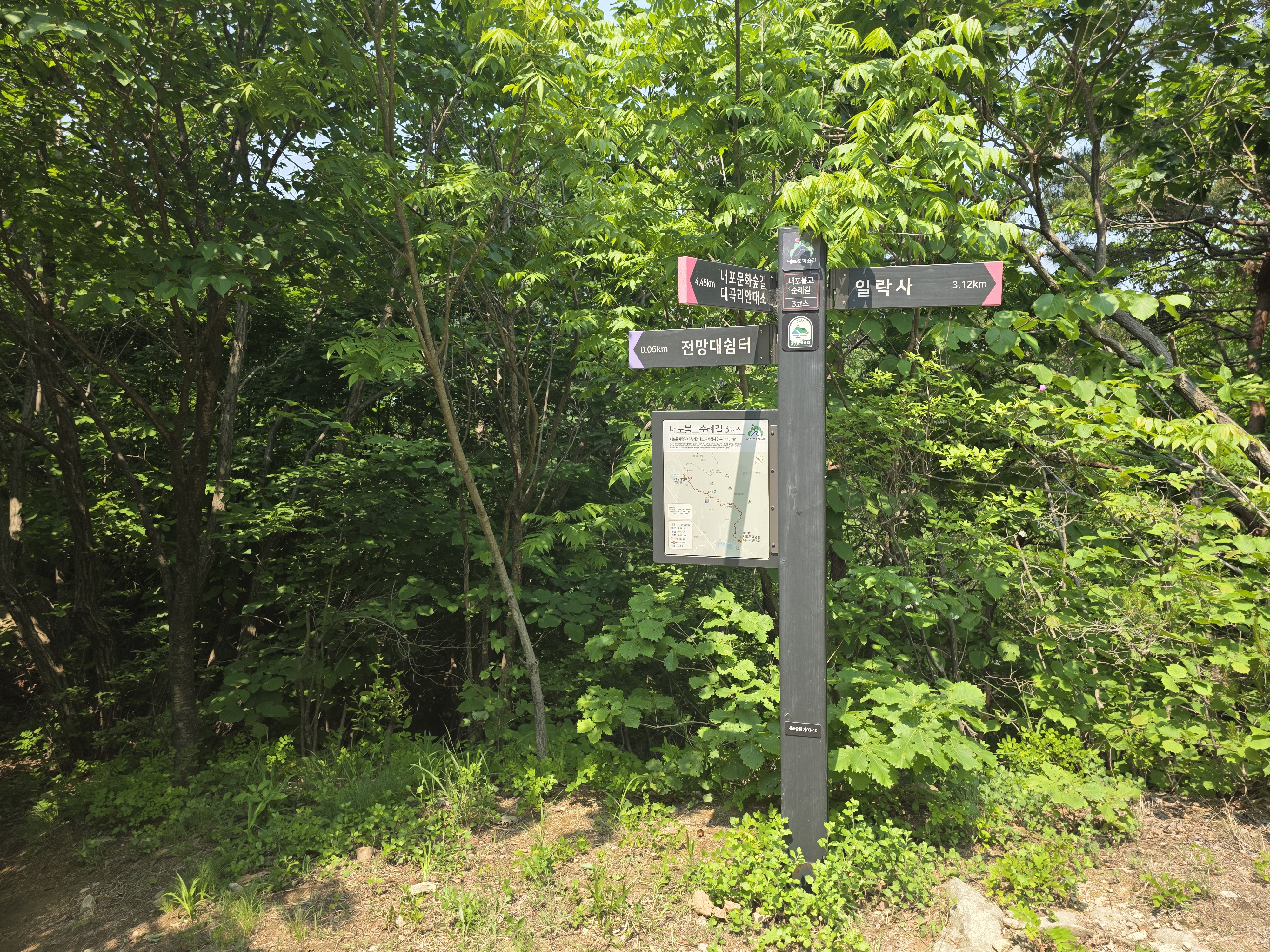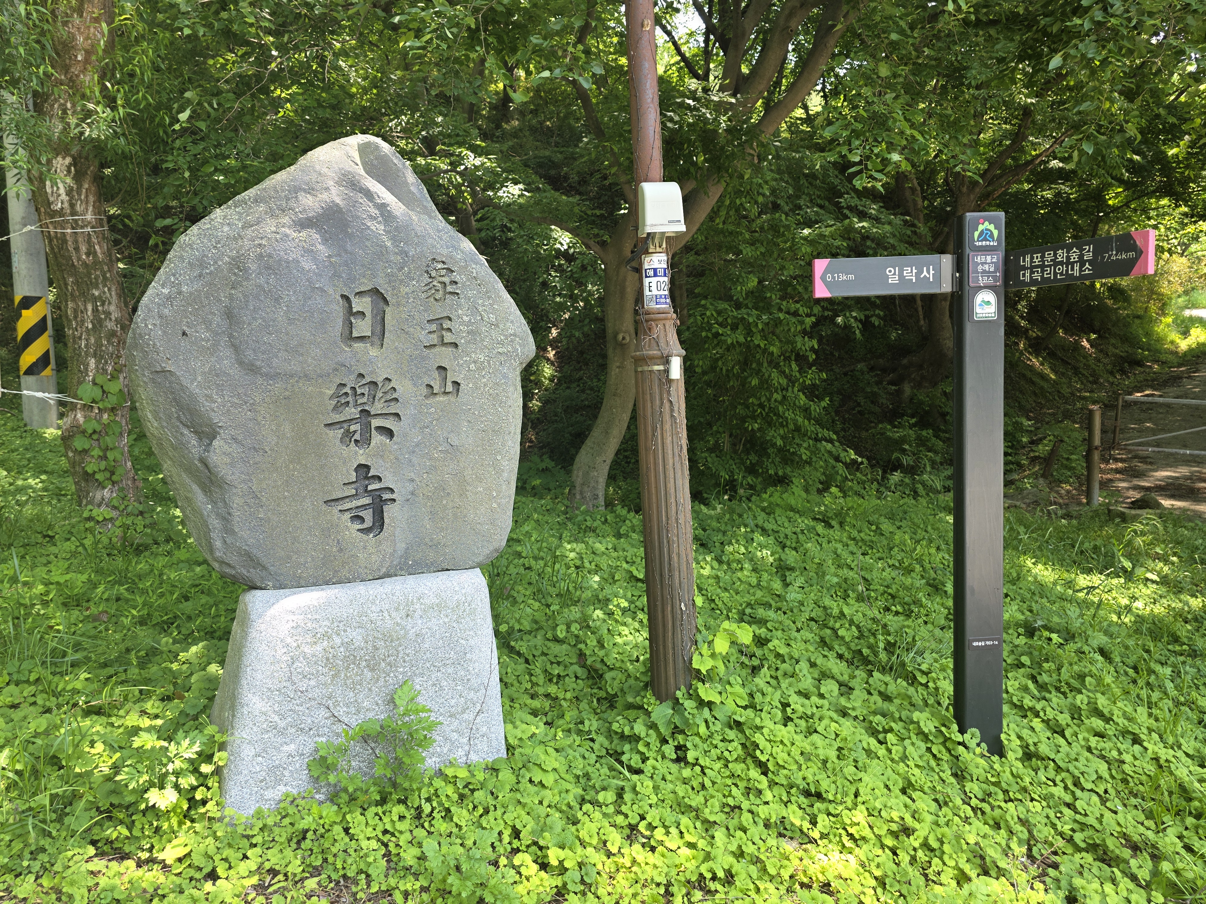 공사구간 이정표를 지나 숲길을 따라 내려서면 일락사에 닿는다.