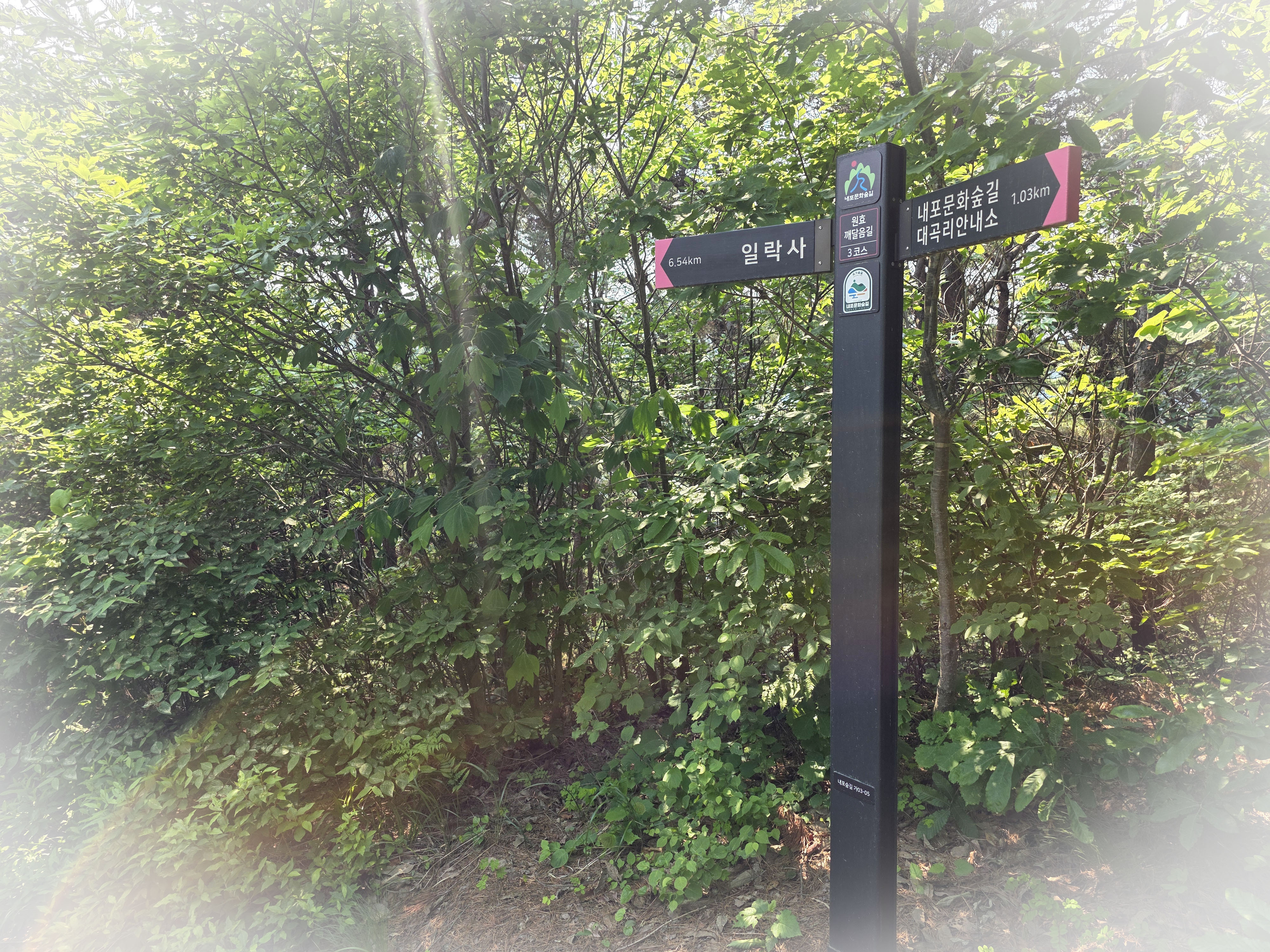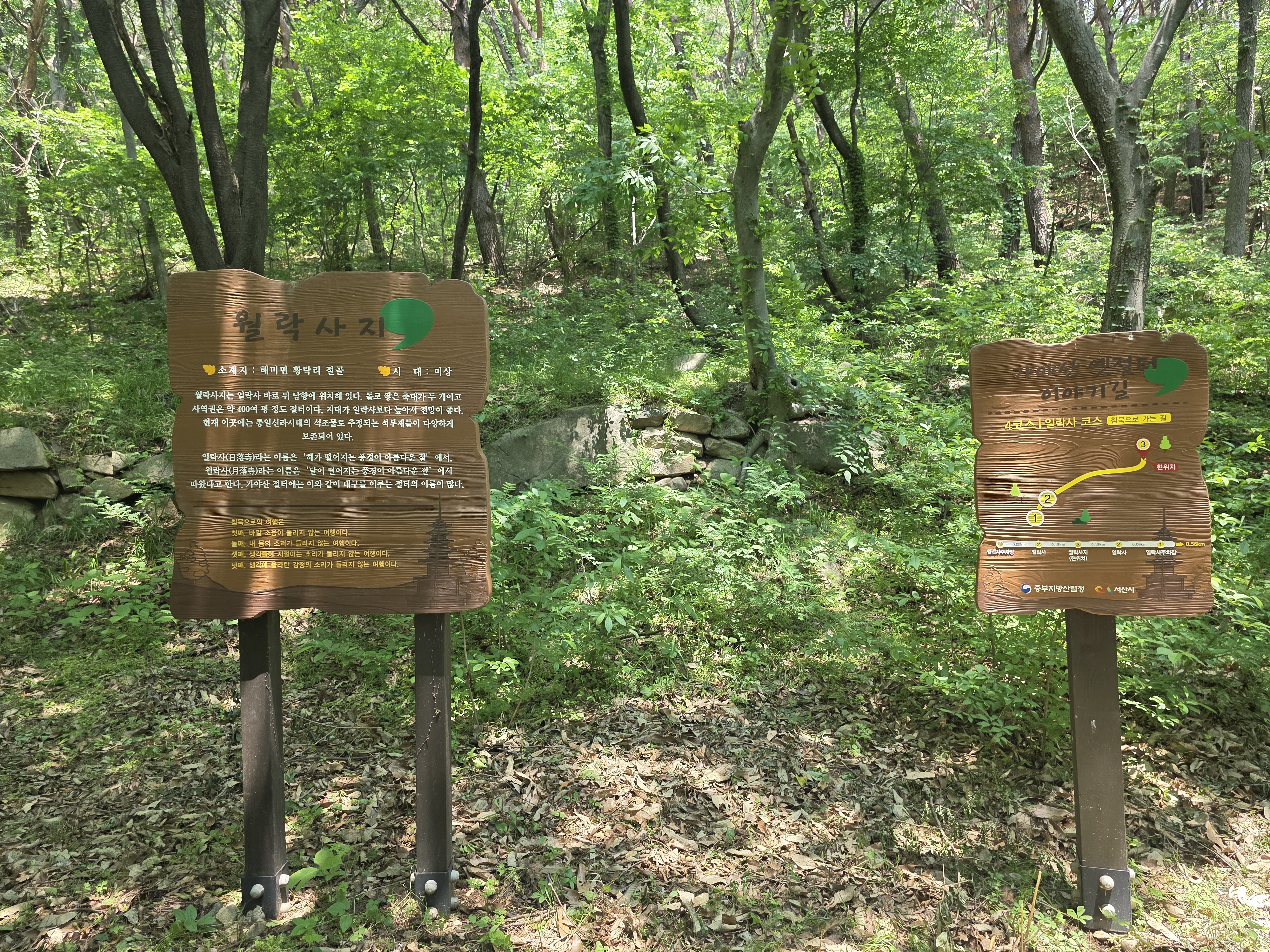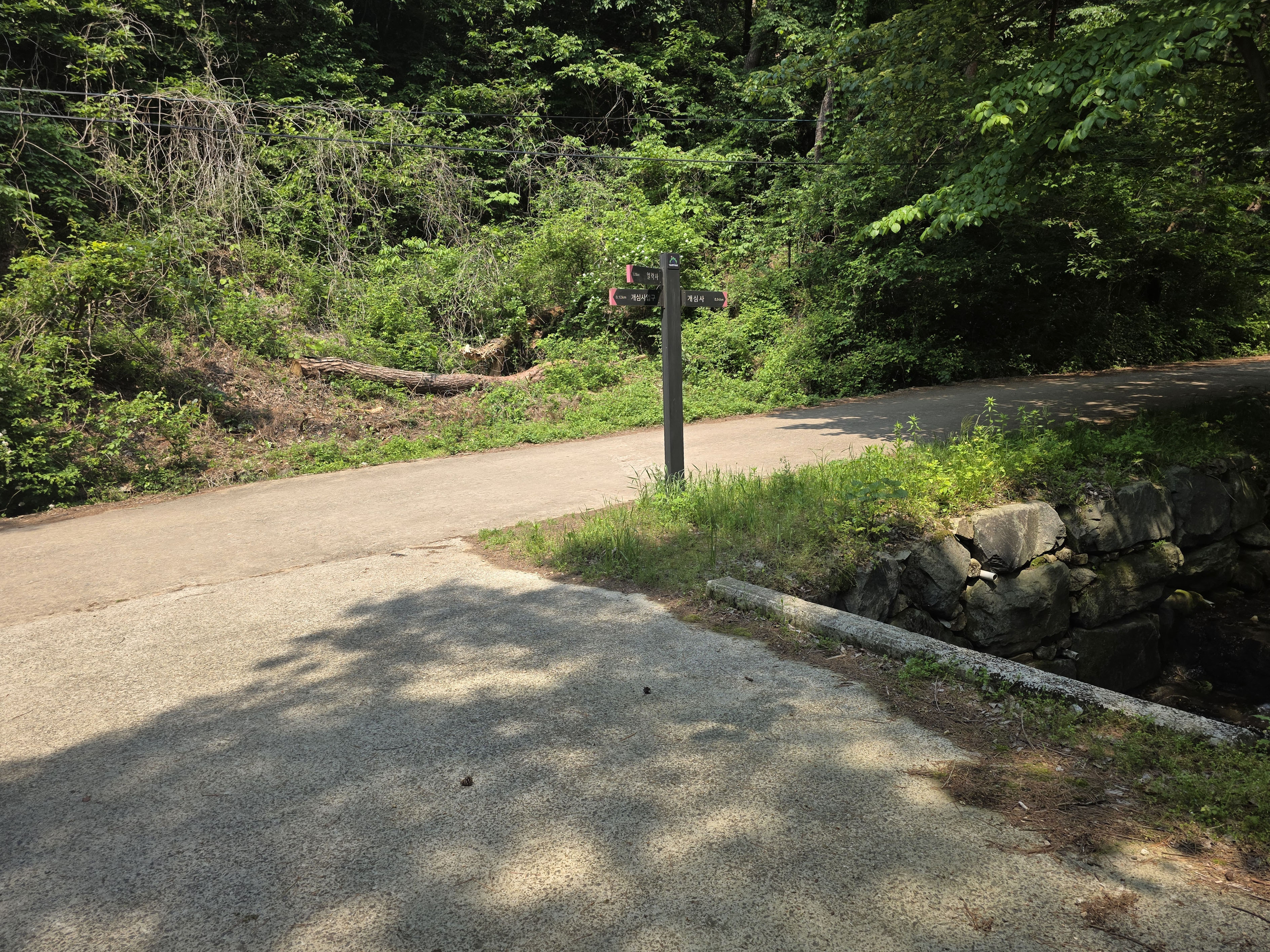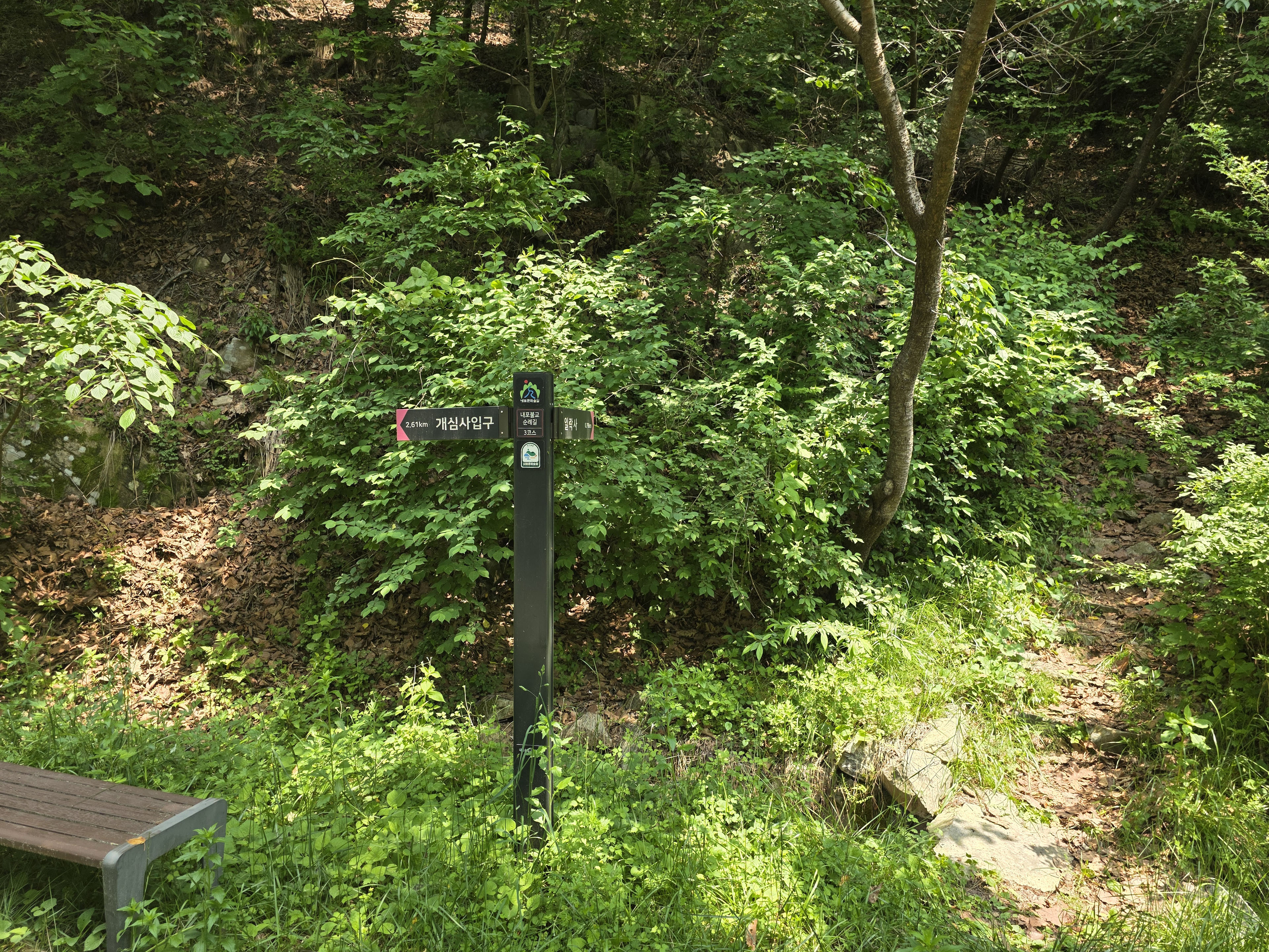 공사구간 이정표를 지나 숲길을 따라 내려서면 일락사에 닿는다.
