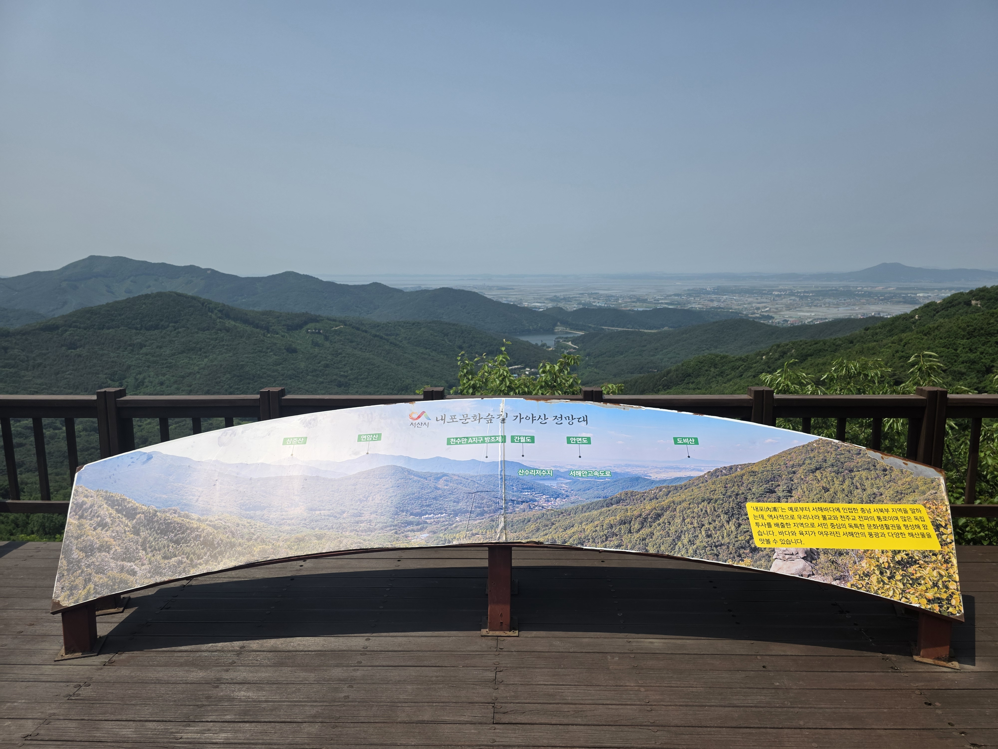 완만한 오르막을 따라 가야산 전망대에 오르면 충남 서부의 산줄기와 들녘, 멀리 서해 바다가 한눈에 들어온다. 이곳은 해 뜨는 시각에 오르면 장엄한 일출 장면을 감상할 수 있는 명소로도 알려져 있다.