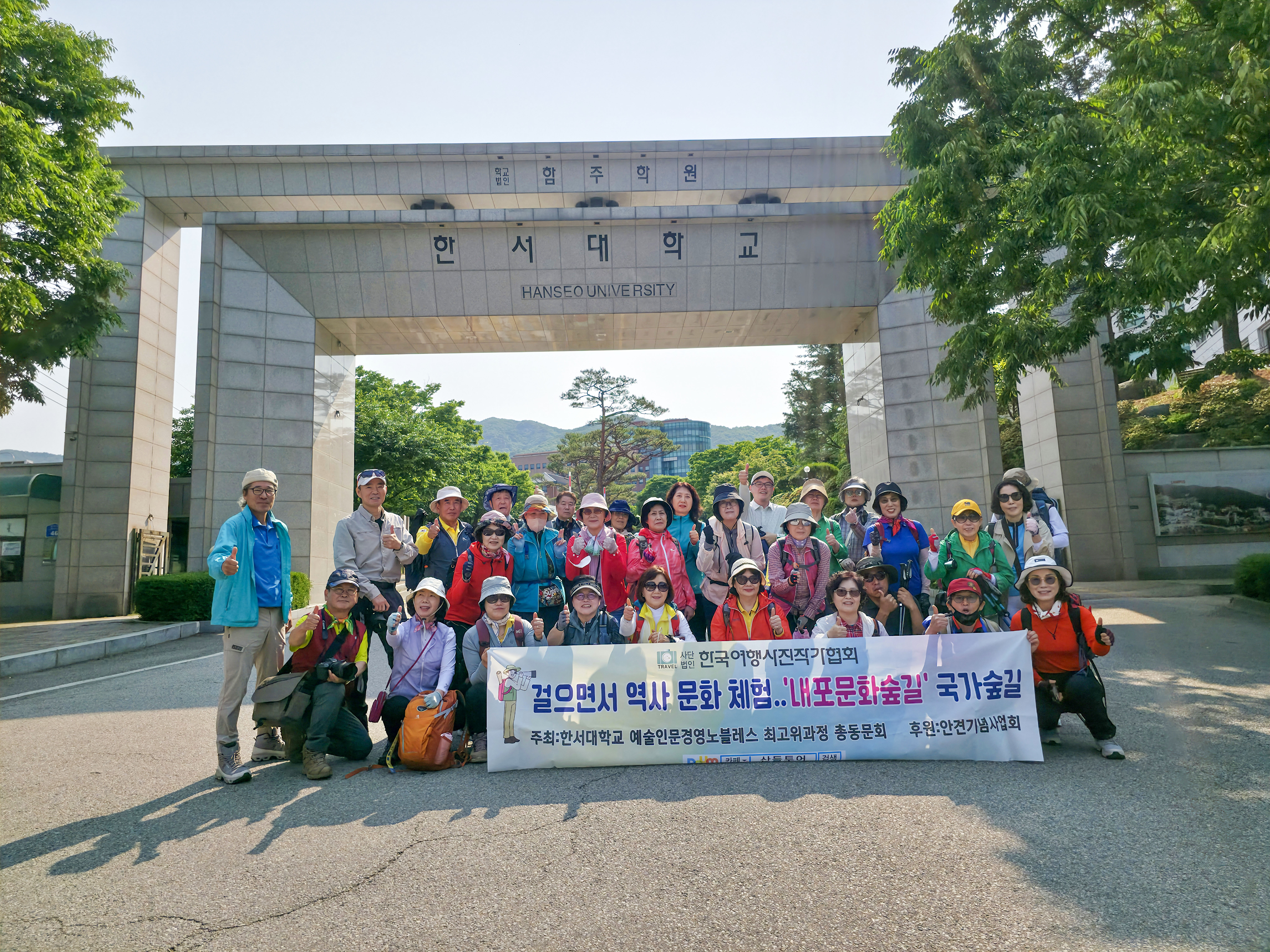 탐방단은 가장 먼저 한서대학교 입구에 도착해 단체 기념사진을 촬영했다.
