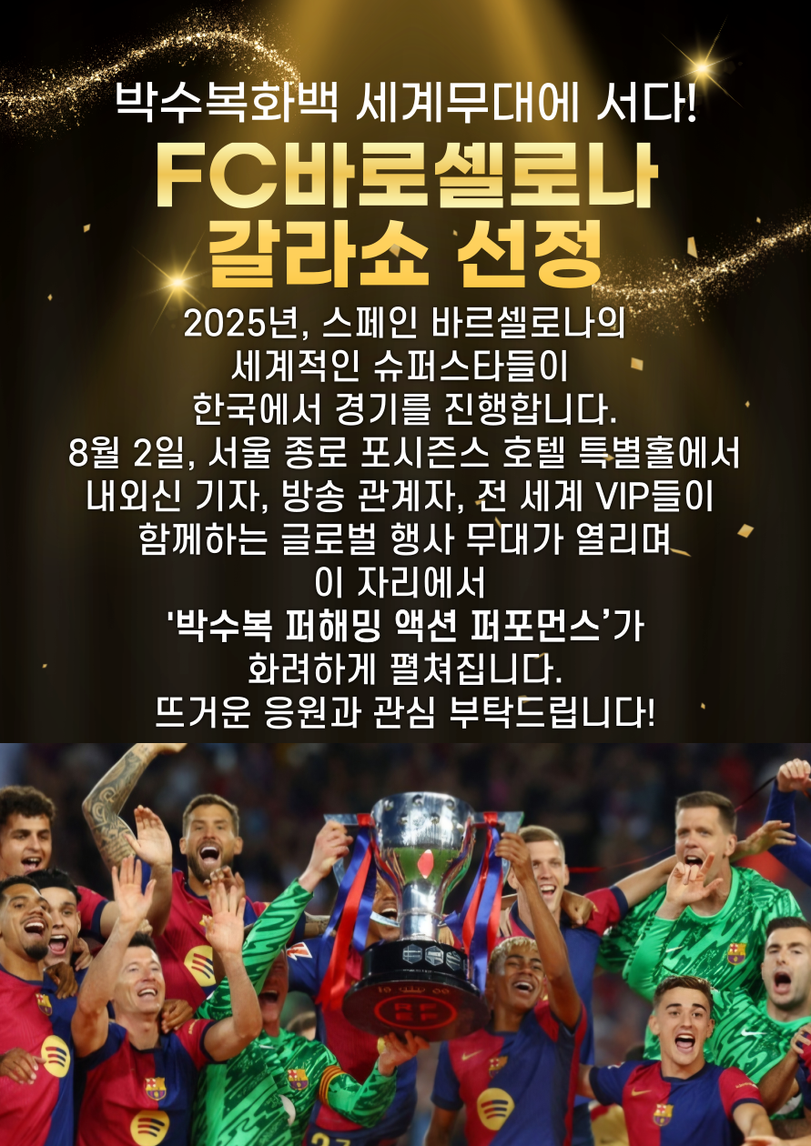 | 박수복 화백, FC바르셀로나 갈라쇼 공식 초청… 세계무대 퍼포먼스 펼친다 (14) | 2025.07.30 |