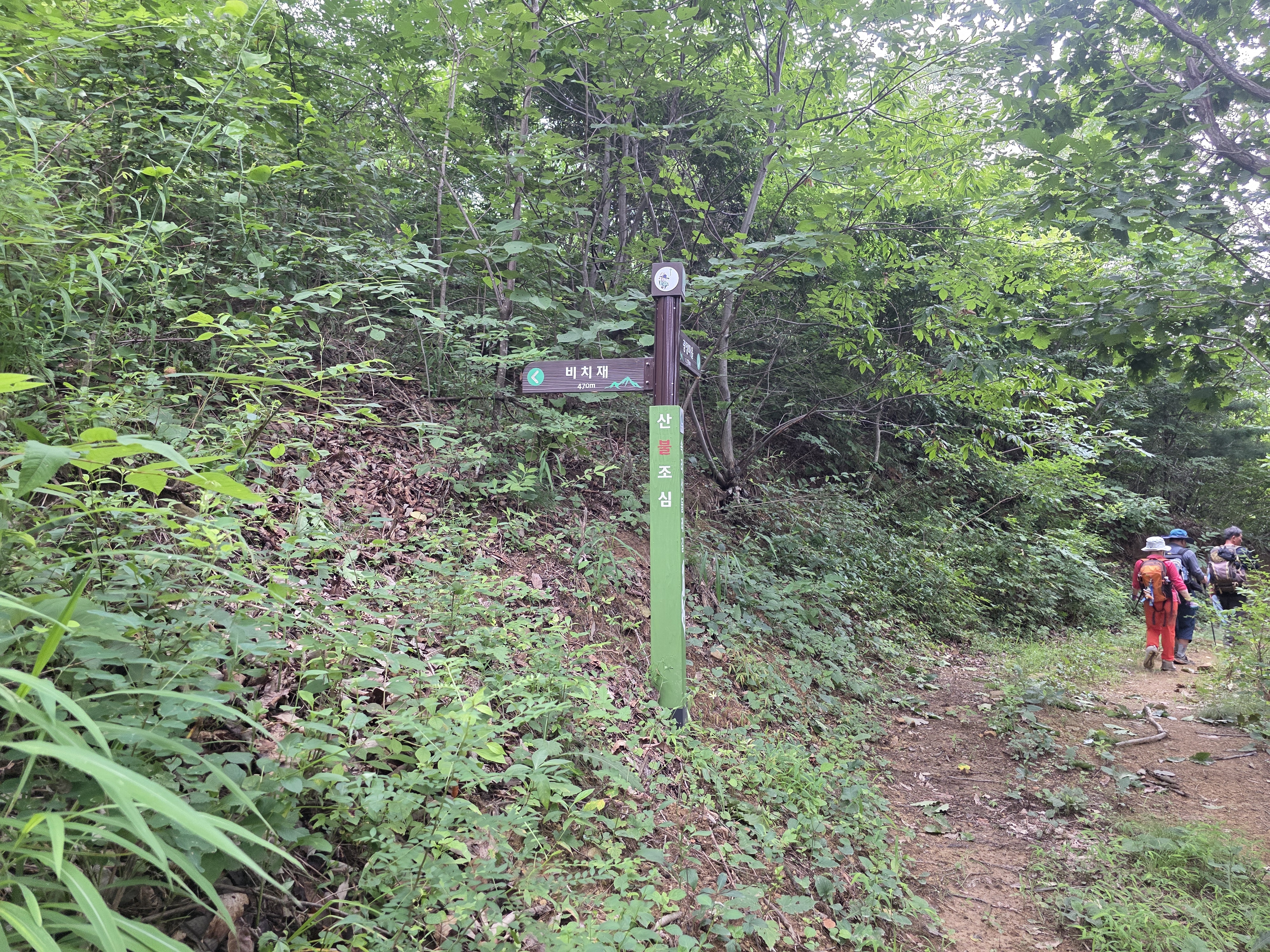 왼편 산길로 접어들면 비치재 오르막이 시작된다. 잘 정비된 길이지만 경사가 심해 숨이 차오른다. 고갯마루 인근에서는 맑은 샘물이 솟아 흐르며, 높은 곳에서 만난 시원한 물줄기가 등산객들의 갈증을 씻어준다.